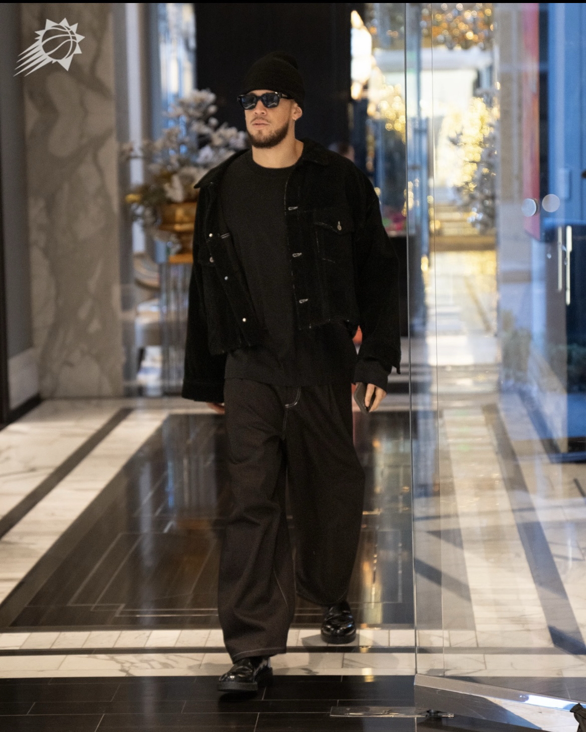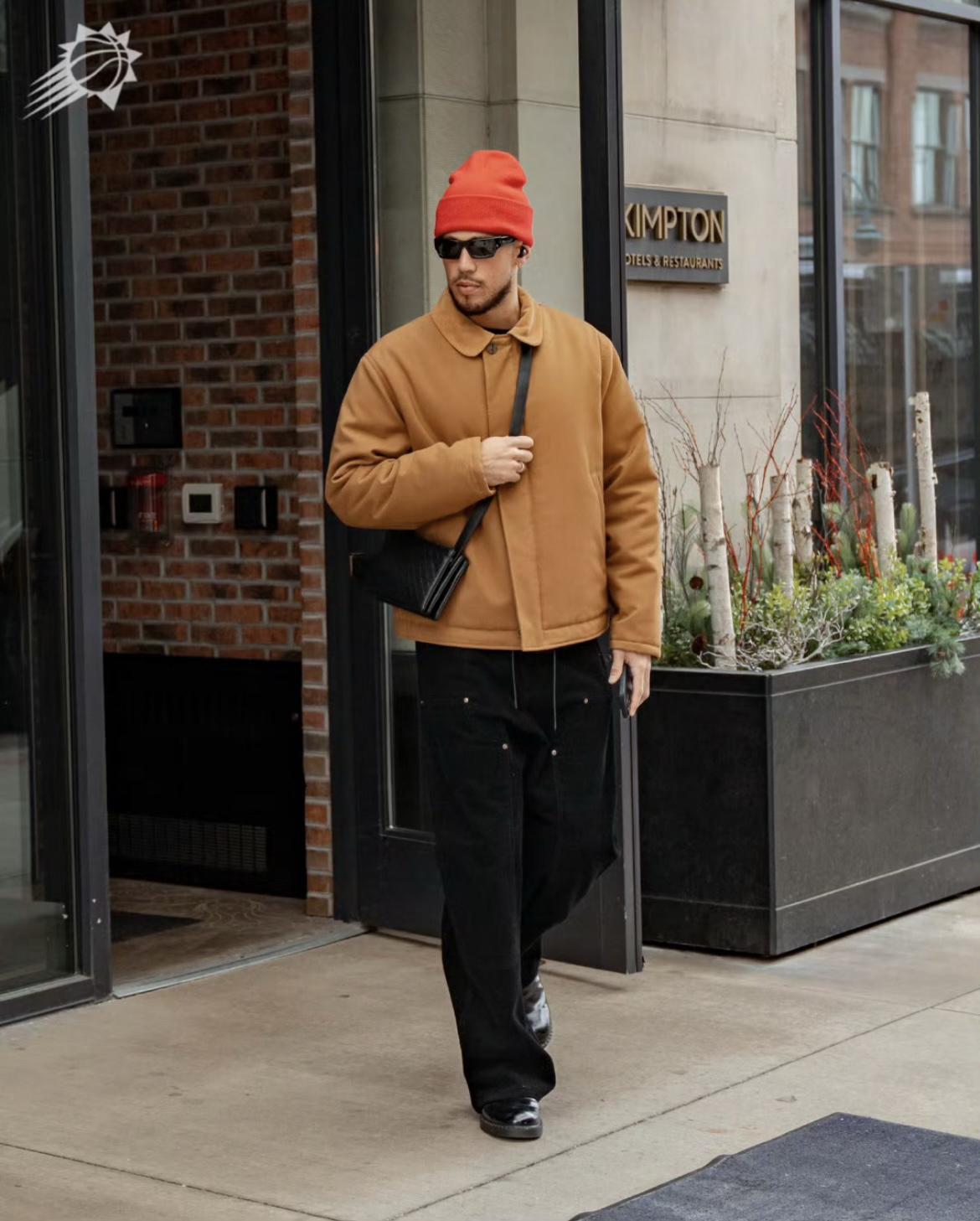 米杏色夹克与白色内搭的同色系渐变,像给穿搭加了层“柔焦滤镜”,浅白长裤延伸视觉线条,棕色皮鞋一踩,直接把休闲感和轻商务格调焊在了一起;没有花里胡哨的设计,全靠色调层次和风格碰撞取胜——宽松夹克的随性,撞上皮鞋的精致,这种“不费力的高级感”,把日常穿搭的质感拉到了新高度,原来篮球明星的简约风,也能这么有腔调~