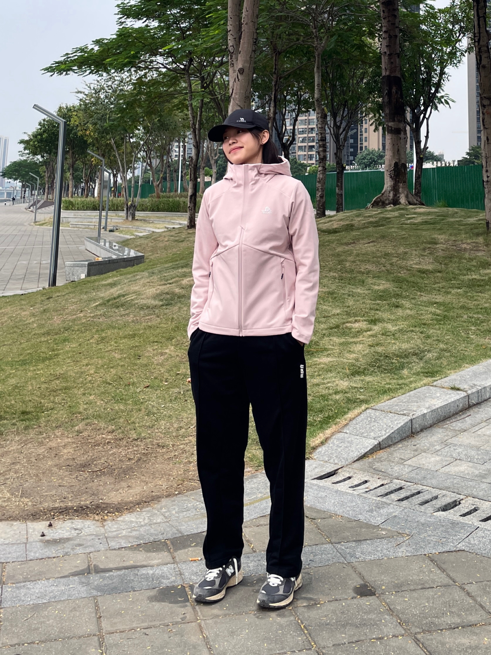 Hello~这里是穿搭女孩Dali - 秋冬户外出片搭子我选粉色🌸 上身一件 PELLIOT 软壳冲锋衣 放风材质衣服里面绒绒的保暖性很不错😌 两侧的口袋很大的随身物品都可以保管好~ 户外风很大🌀搭配一个鸭舌帽简直太帅了🆒