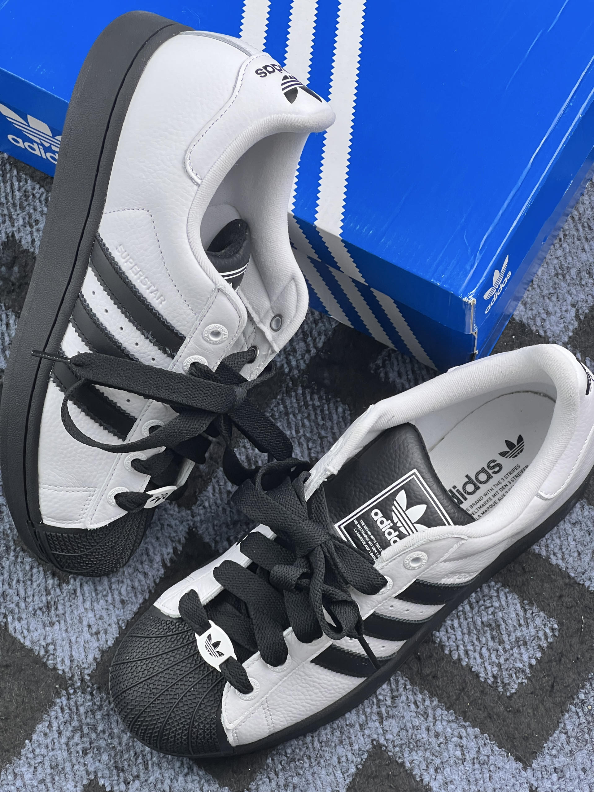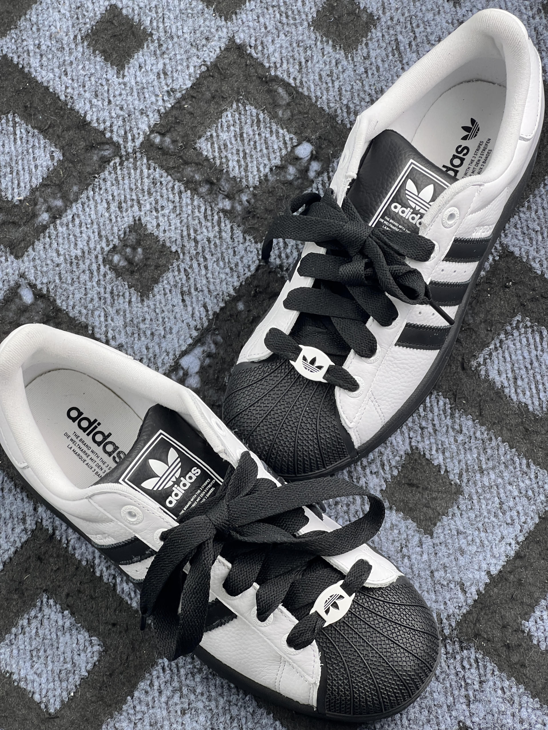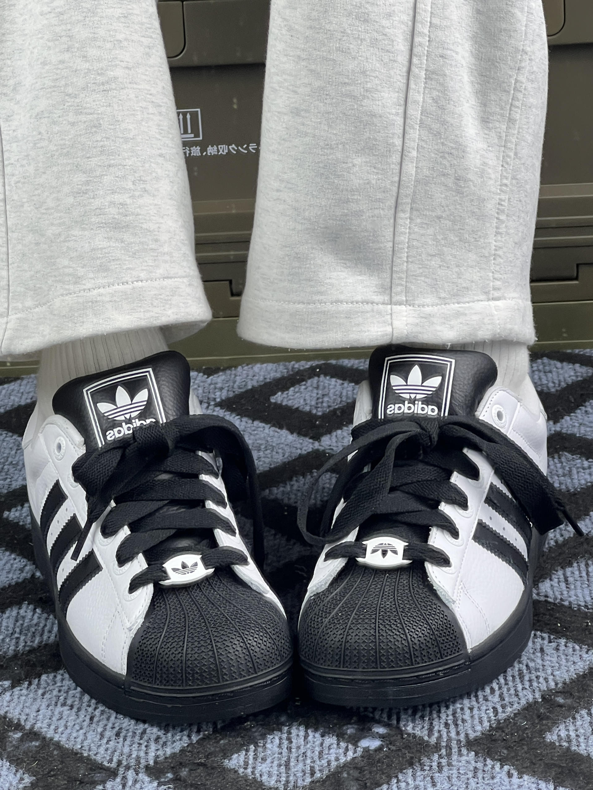 今天来分享我经常穿的这双白黑配色的Superstar 2,这是我很喜欢的一双鞋~ 它给我的第一感觉是“比想象中实穿”。鞋面是偏软的皮质,不像老款那么硬,第一次穿没磨脚,鞋型是经典的贝壳头,搭配日常的牛仔裤、运动裤都不违和,不用特意搭衣服。鞋底是橡胶材质,长时间站着不会太酸,不过软度刚好,没有踩“棉花”的飘感。黑白配色耐脏度比纯白板鞋好不少,轻微的污渍拿湿纸巾擦一擦就能干净,不用频繁打理。 ...
