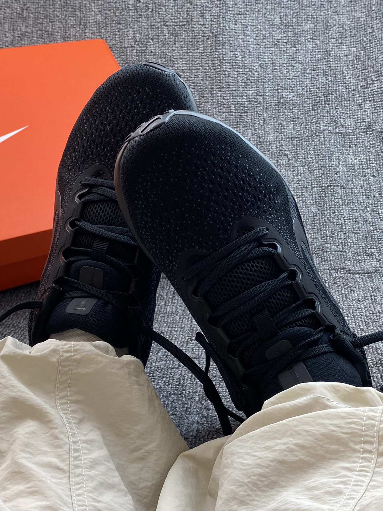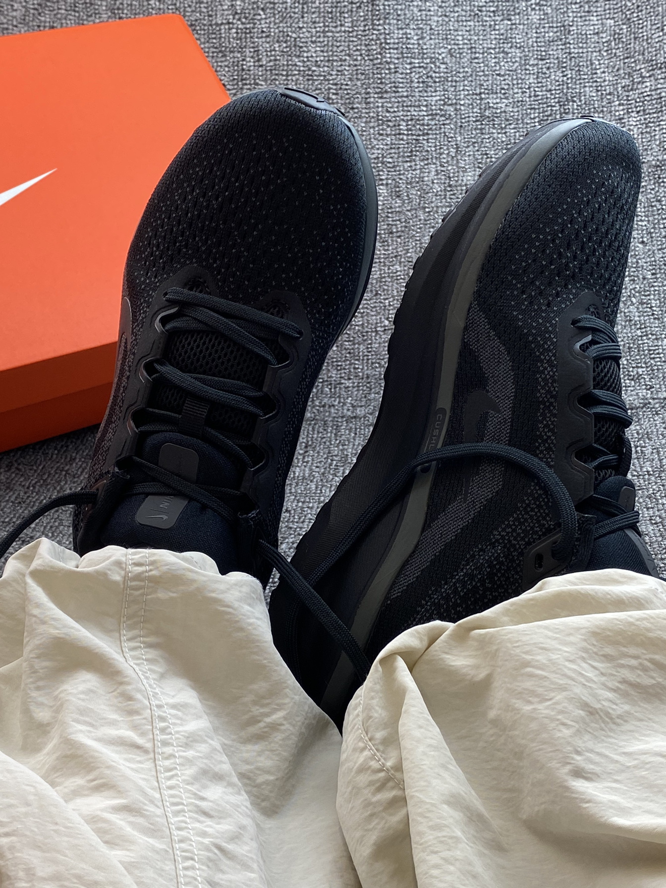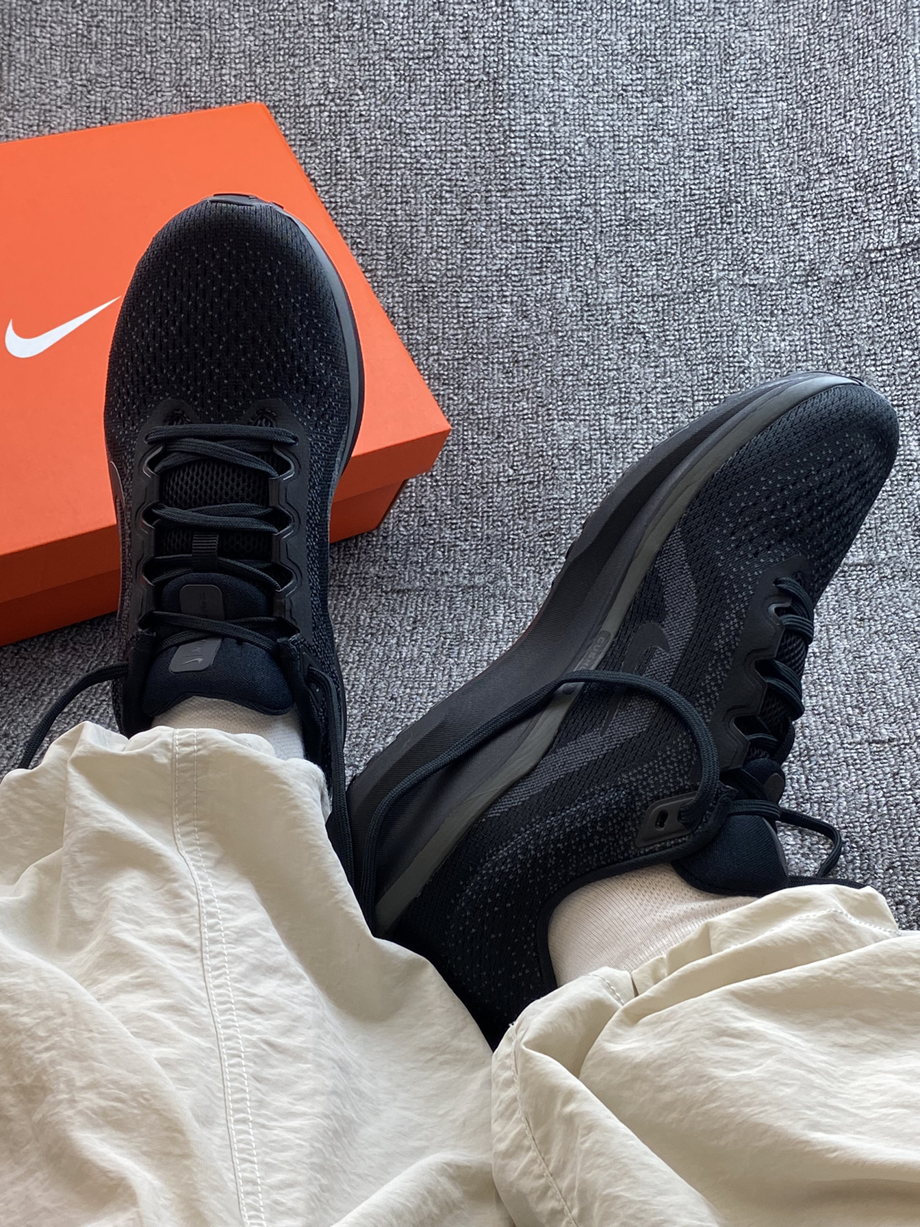 全黑风格尊嘟怎么搭都帅气~ 搭配上我的运动裤,轻松驾驭运动风 Winflo 11也是基础跑鞋中的佼佼者啦 日常通勤、跑步穿着都很舒适 尺码也不偏,正常码选择刚好