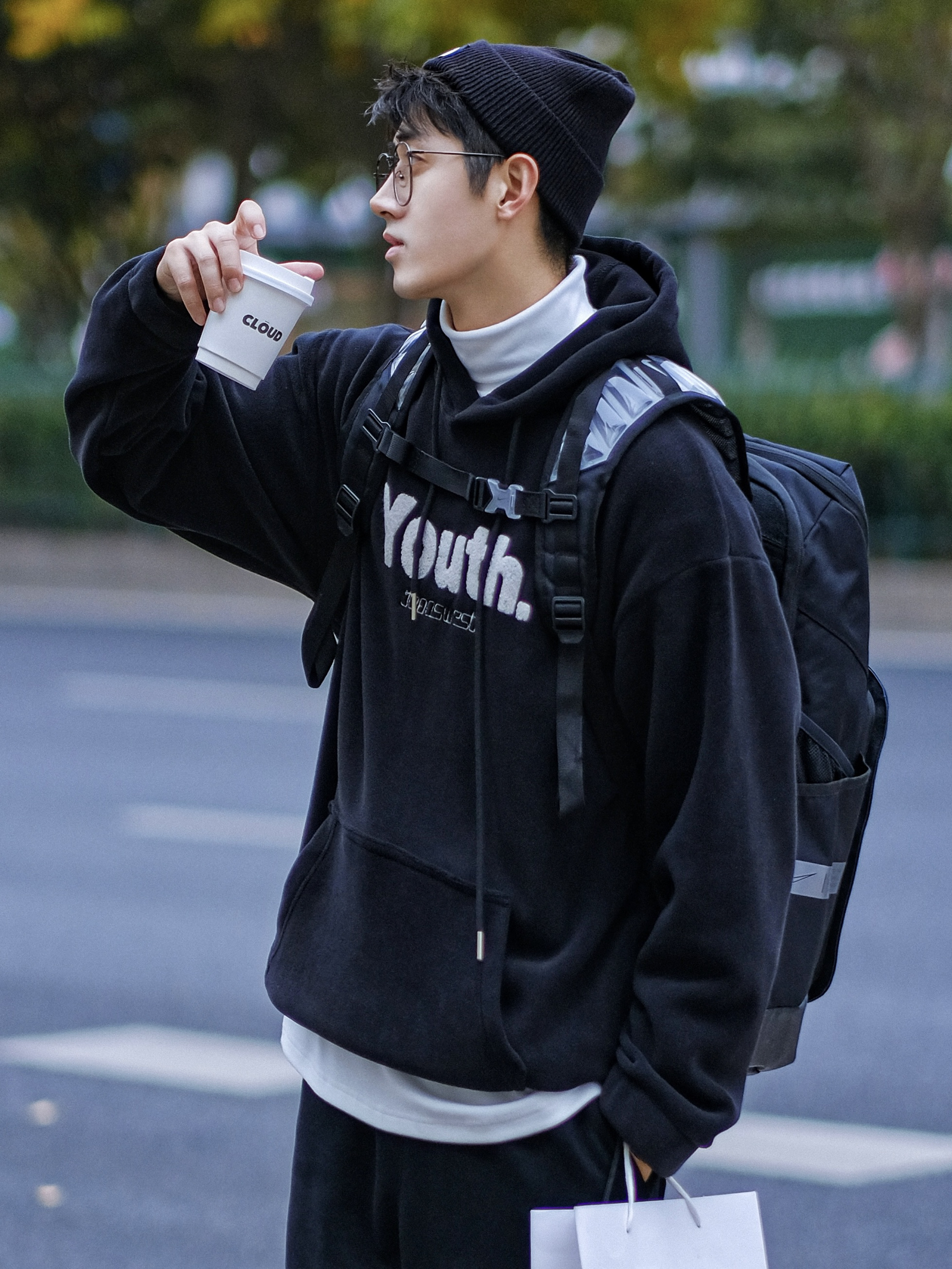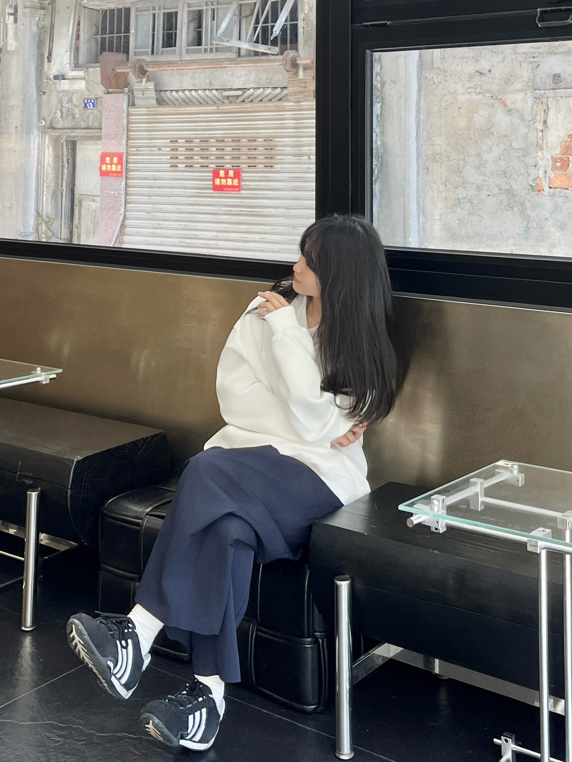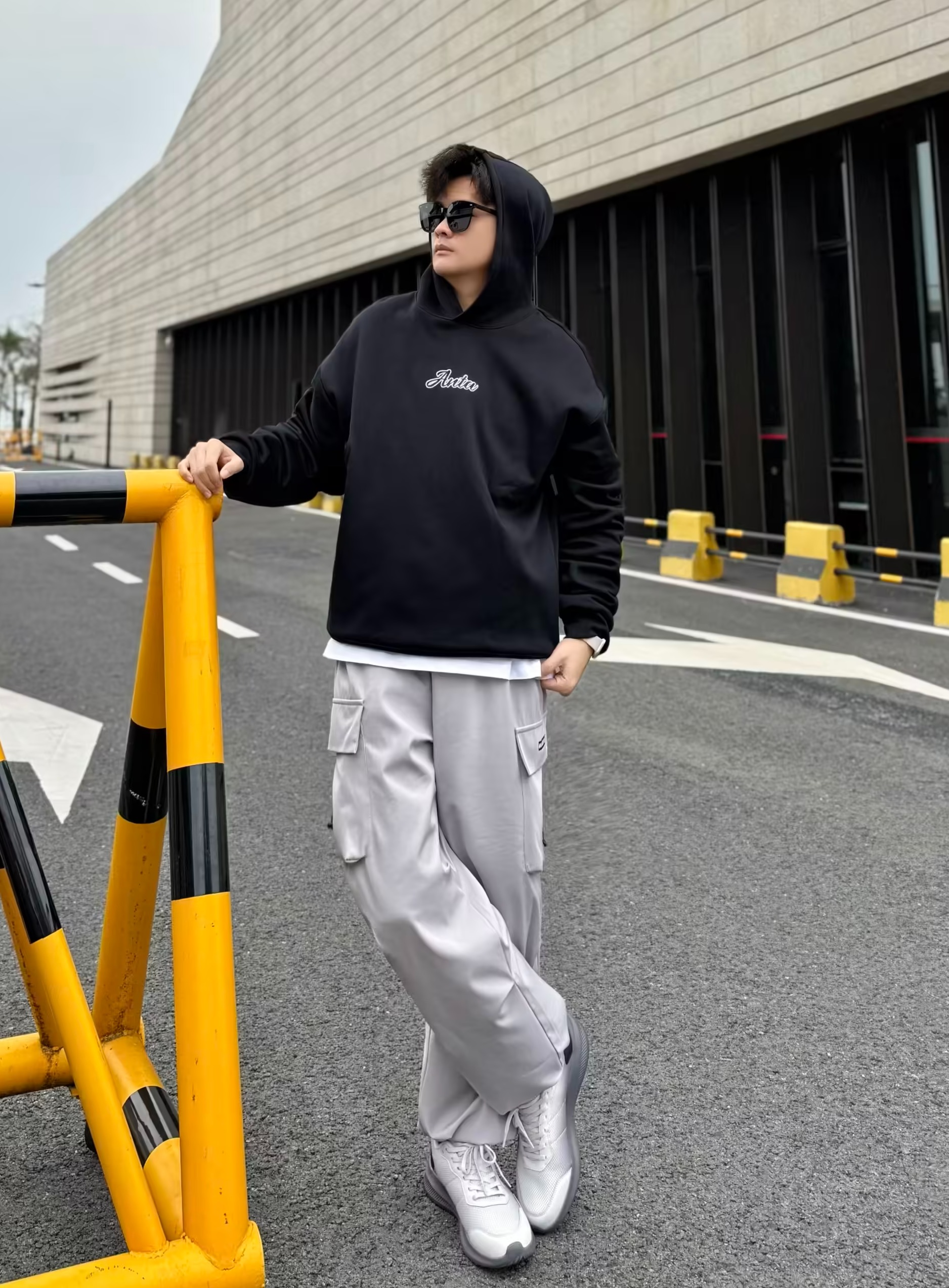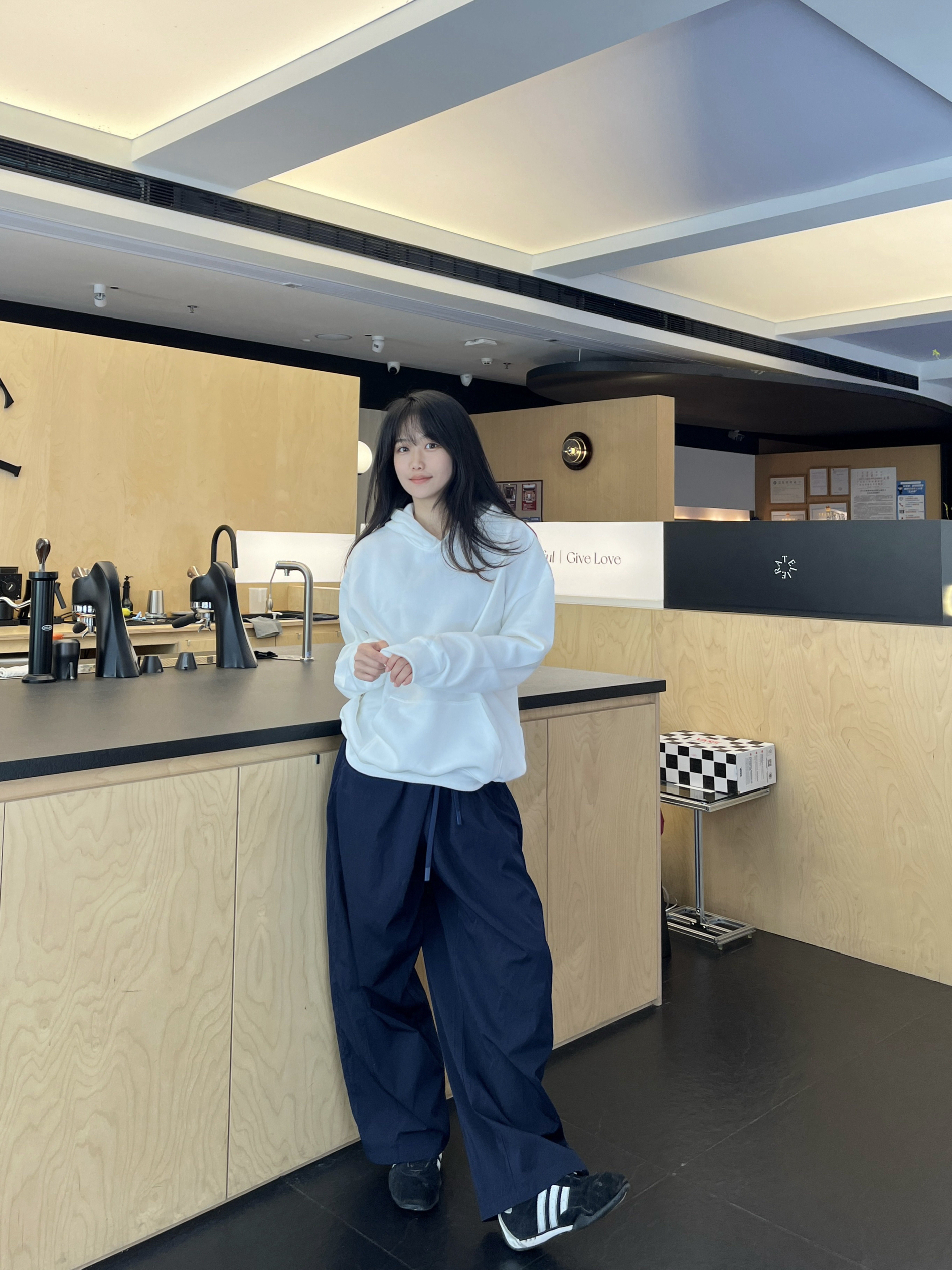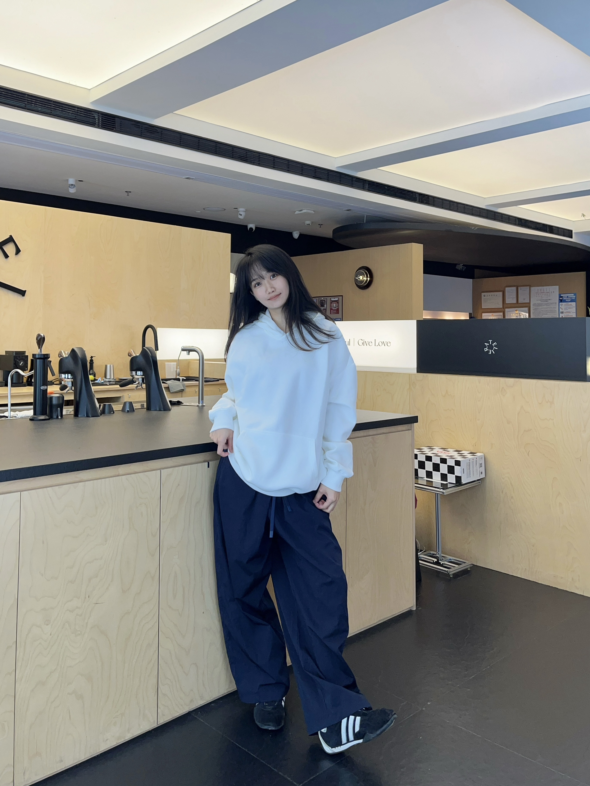 干净清爽的穿搭怎么能少的了卫衣呢✔️ 上衣白色连帽卫衣 搭配一条深蓝色工装裤➕黑白德训鞋 松弛又舒适一身look轻松get💯