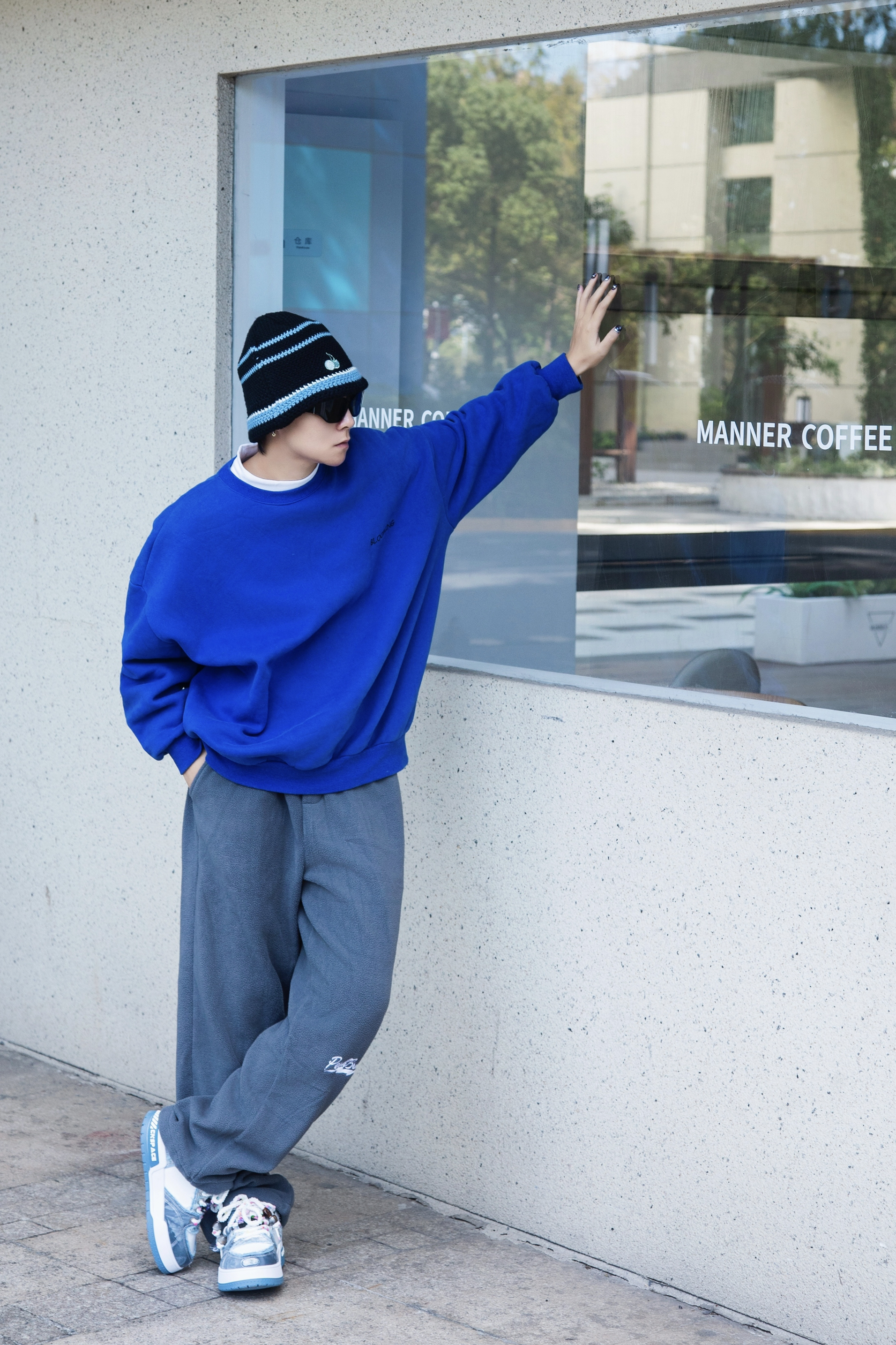 秋日舒适出街 穿卫衣就对了 分享一套不挑人的少年感穿搭 穿搭是吗: 上身一件白色半高领打底 套一件克莱因蓝圆领卫衣 配一条灰色休闲裤 加绒面料温暖到心坎 上脚中国航天休闲板鞋 蓝白拼接配色和上身呼应 鞋带上的小装饰给细节来点色彩 整体蓝白搭配 秋日里也能少年感满满
