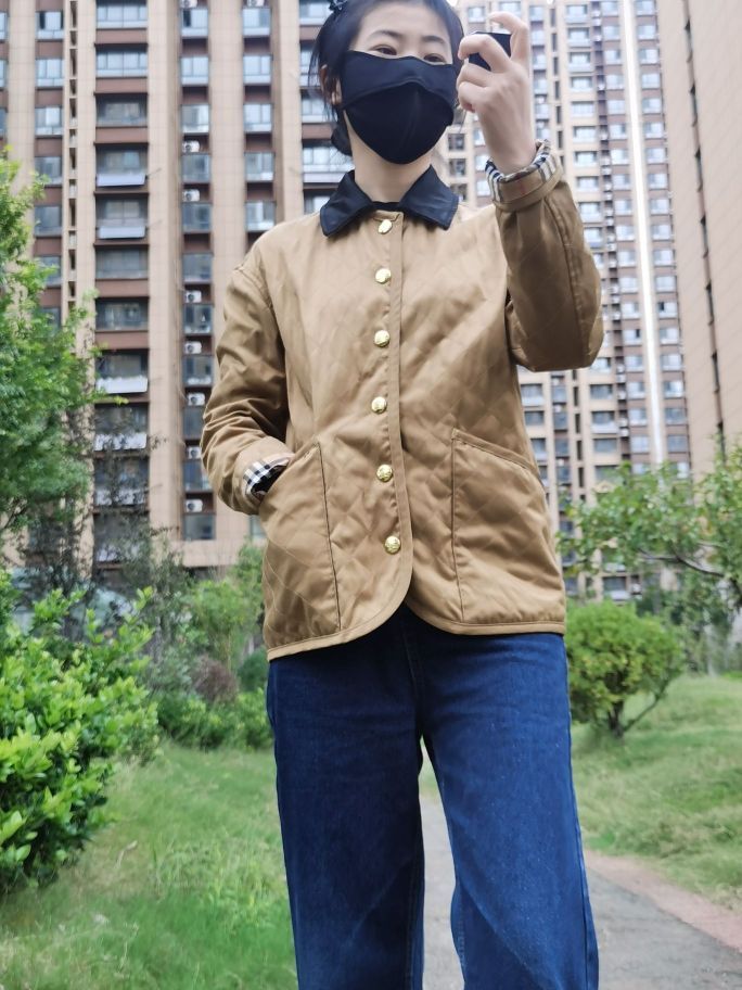 谁能拒绝一件既有质感又显气质的菱格棉服啊!🥰 卡其色自带复古滤镜,撞色黑领+金属扣设计精致感拉满,口袋里的格纹内衬更是暗藏小心机,搭配深蓝牛仔裤,随意往小区楼下一站,都有种“英伦画报女主”的既视感~ 关键是它的厚度很适合秋冬过渡季,保暖又不会臃肿,日常通勤、周末逛街穿都很ok,属于那种越看越喜欢的经典款,今年秋冬的穿搭C位必须给它留一个!