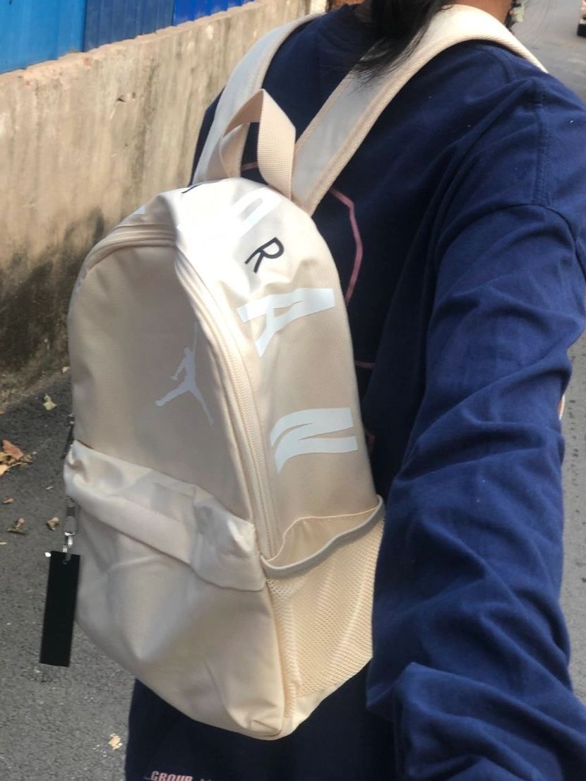 这款Jordan背包外观简约耐看,浅色系很百搭🎒。日常装个手机、钥匙、小物件很方便,但容量不大,装不下笔记本电脑。材质轻便,背起来没负担,就是浅色容易脏,得经常打理。喜欢简约风格、日常轻便出行的可以考虑,追求大容量的就不太合适了。