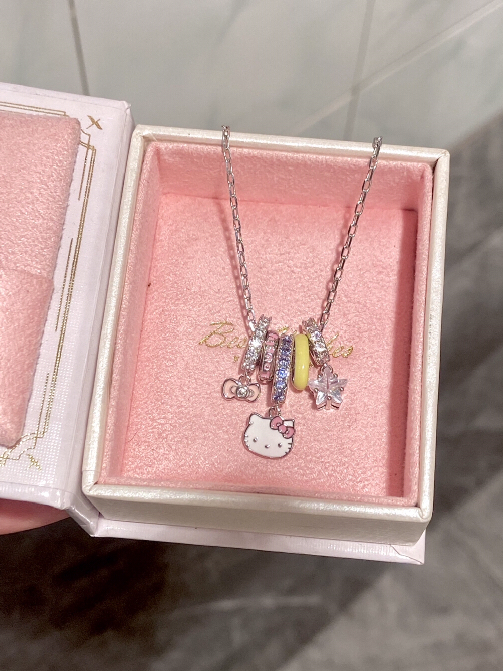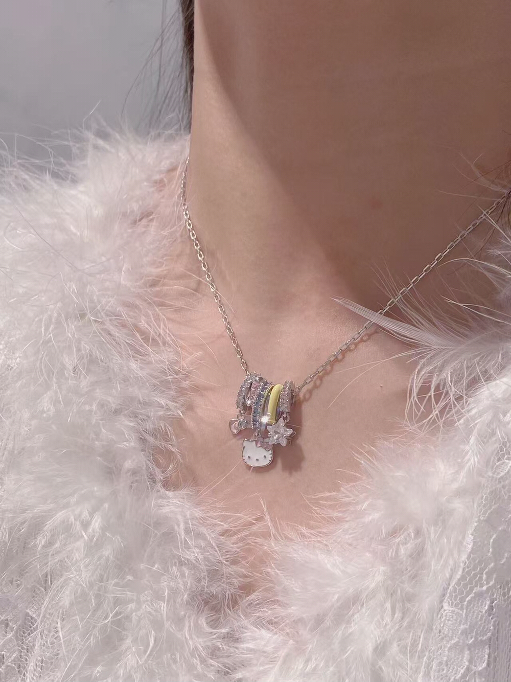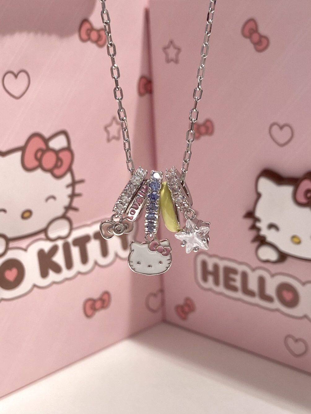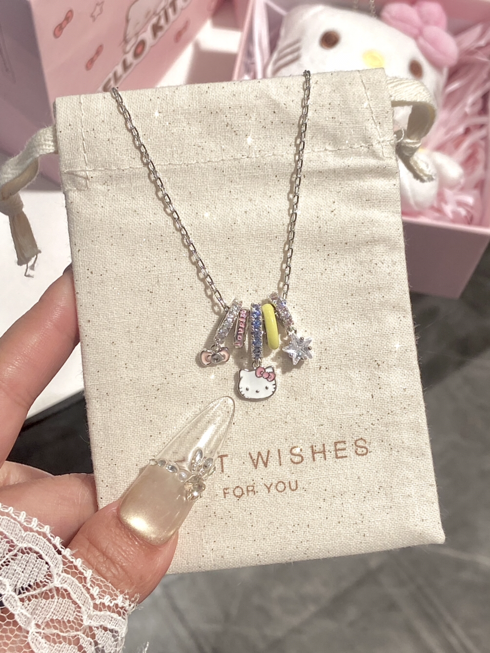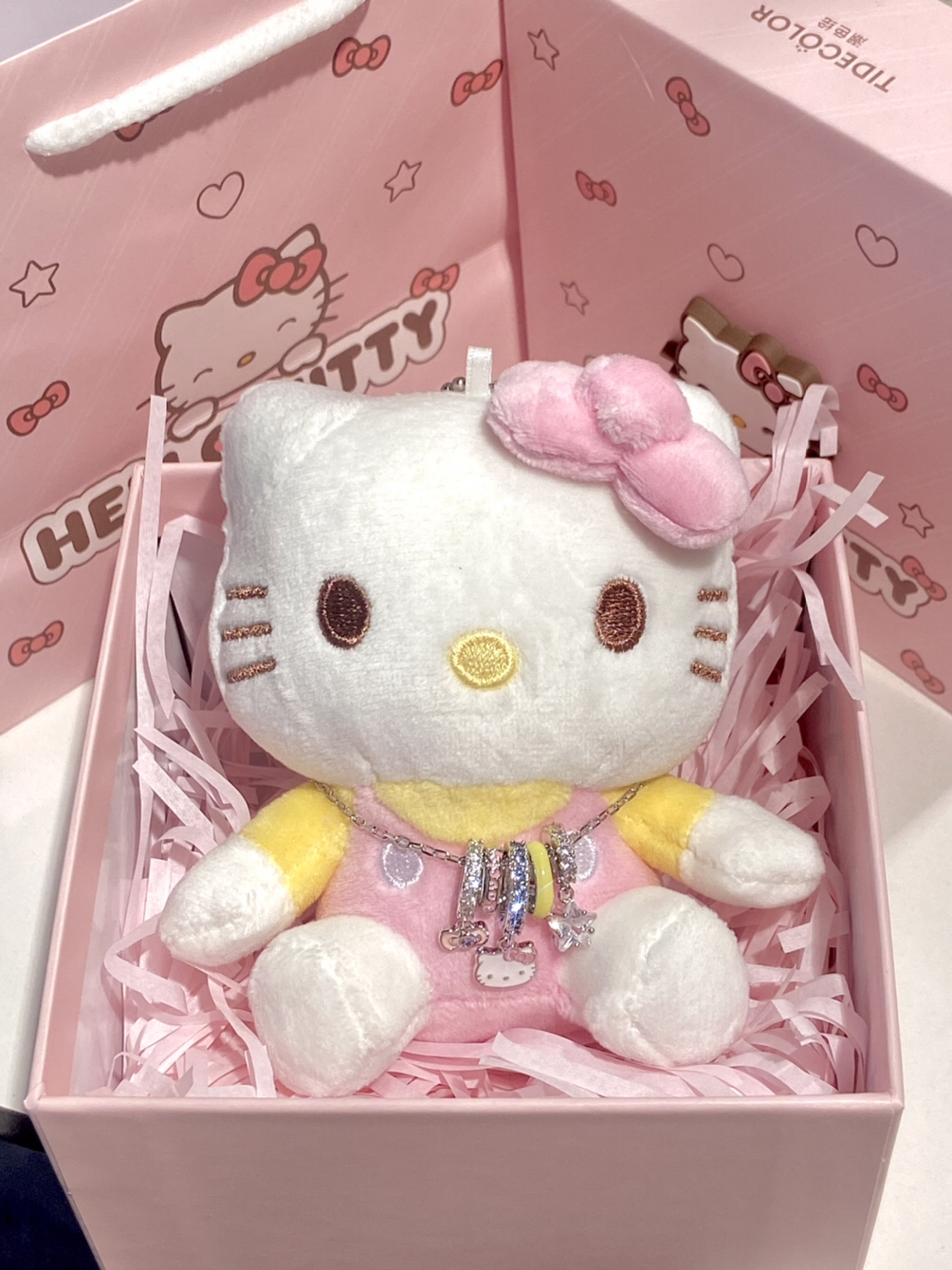 女孩子戴多巴胺项链敲甜的 Hello Kitty 这款项链我尊嘟一眼心动了 包装也是粉粉嫩嫩的,挺适合甜甜的女孩子 我真的被这个项链给拿捏了 礼盒里面还有小布偶挂件,这简直泰让我欢喜了 日常或者约会戴上也泰吸晴了