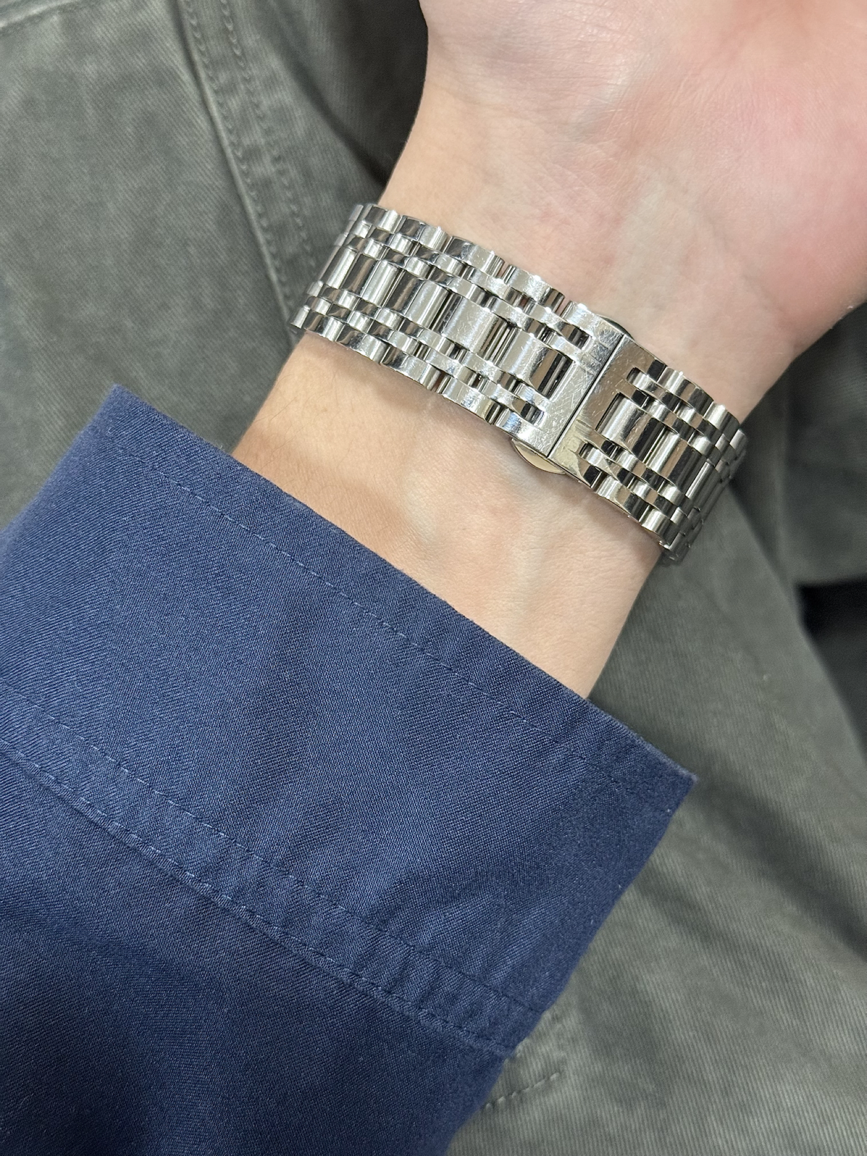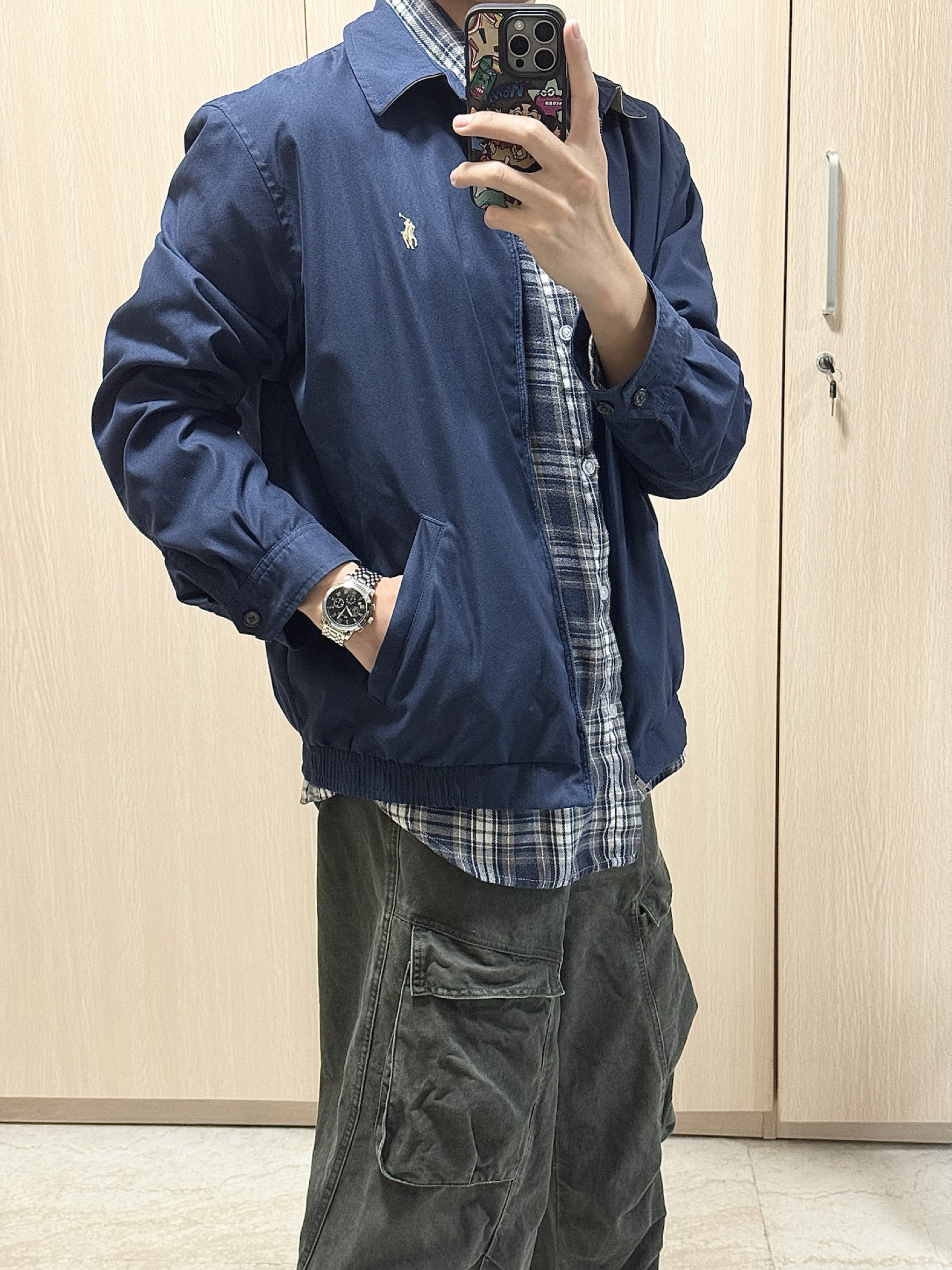 分享今天的这套ootd 深蓝色夹克宽松又随性,内搭格子衬衫就很有松弛感 再配上一条工装裤,hin有秋日氛围感 一下就拿捏住cleanfit风 手腕上这块钢带腕表,男生上手比较显气质 随便一搭也很出片,秋天的清爽帅气感这不就有了吗!