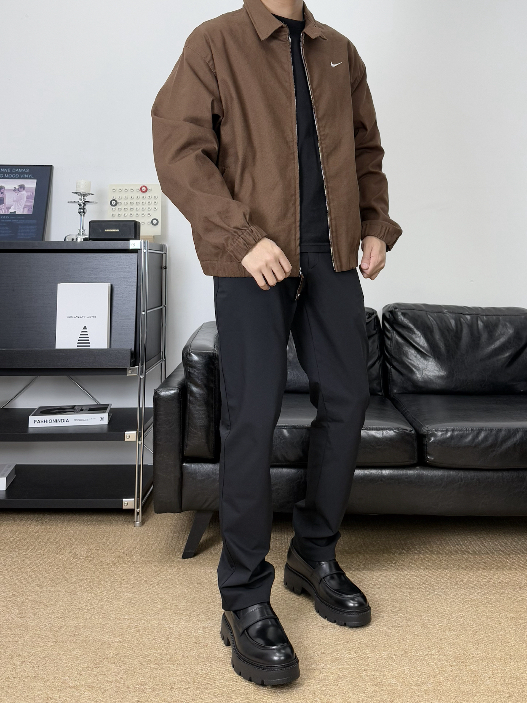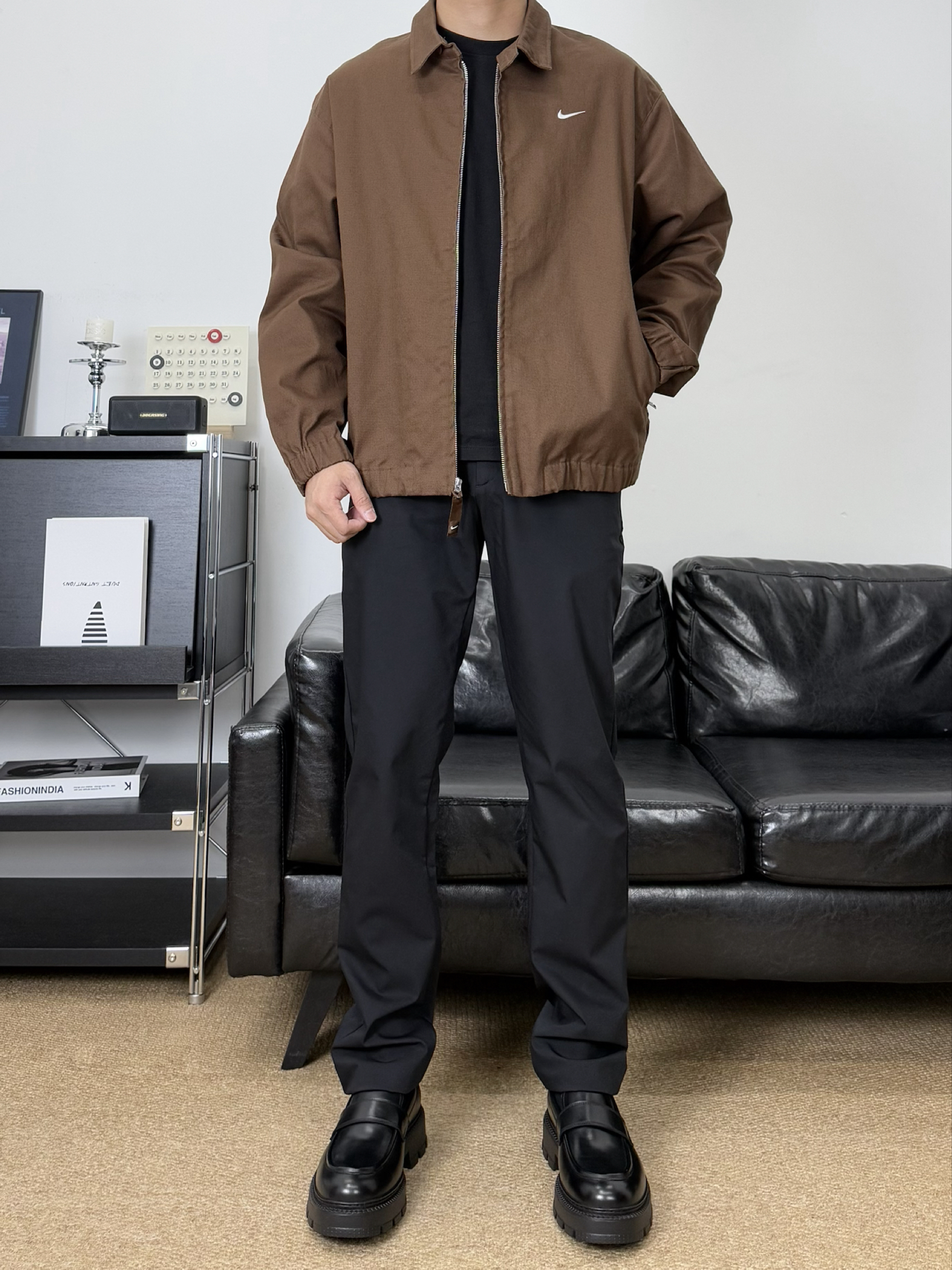浅浅尝试一下复古美拉德穿搭 看看今天这身搭配如何吧 衣服是这件棕咖色夹克外套 内搭一件黑色的圆领短袖 裤子是这条百搭直筒西裤 鞋子是 THOM WILLS 休闲皮鞋 轻商务的鞋身造型日常搭配起来还蛮有气质
