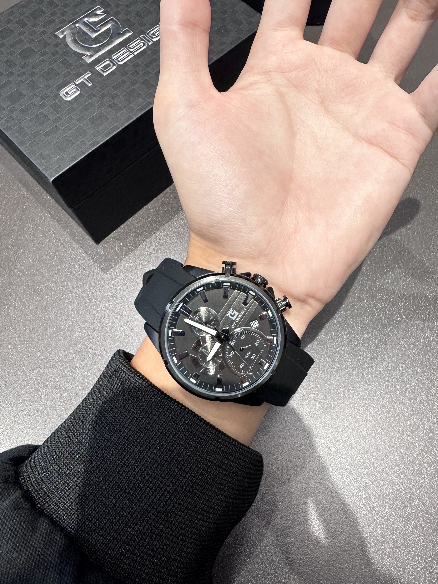 GT家的这块黑武士手表 是俺喜欢的类型~ 赛车仪表盘hin有设计感 有种小众但高级的感觉 这种机械感我是比较喜欢的 硅胶表带戴起来也是比较舒服的 平时出门搭配件夹克 就很帅了 礼盒包装 送礼也倍有面!