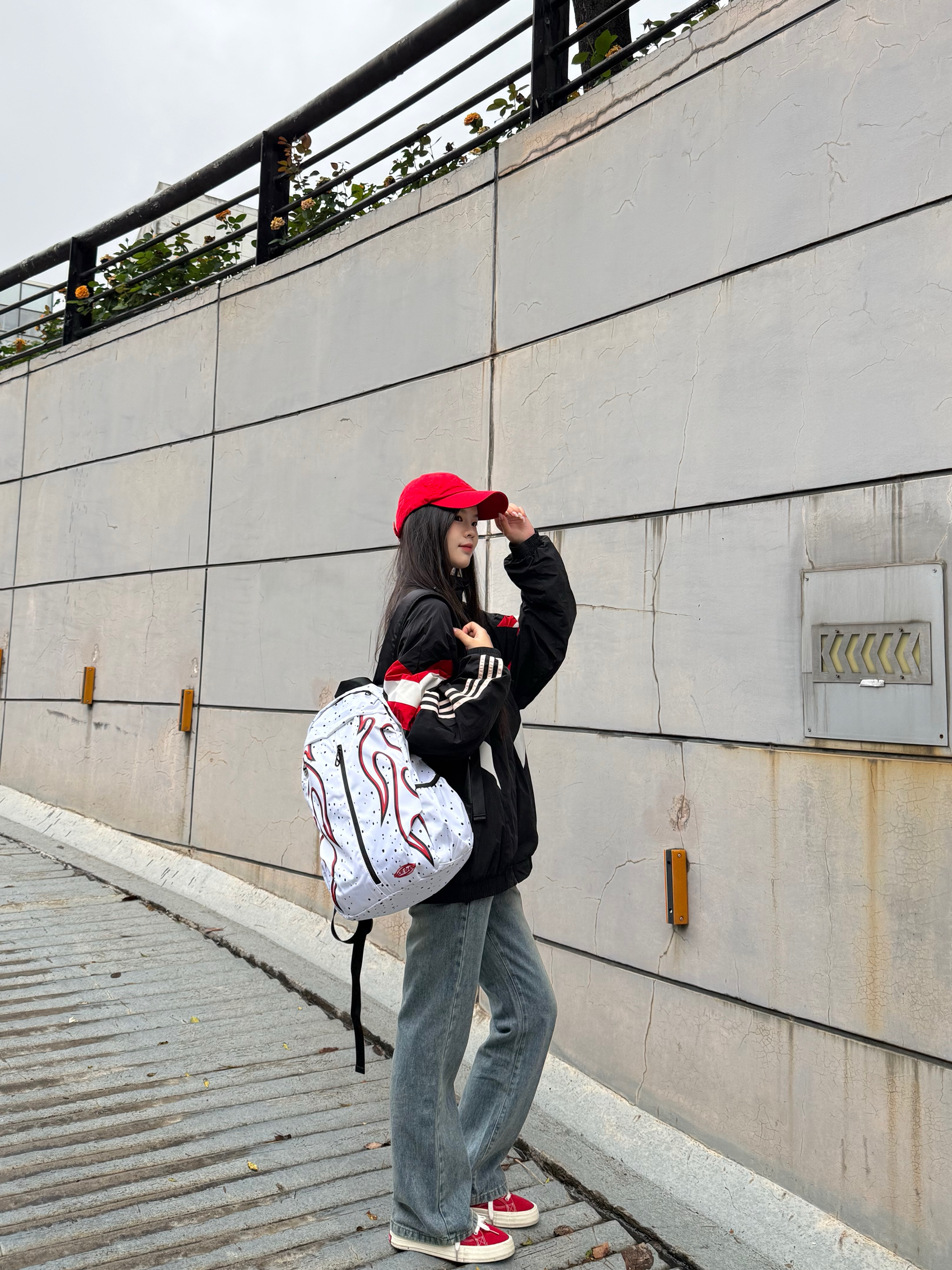 身高|体重:168|51 🧍♂️ 穿搭风格:美式街头风 👔 上衣:Adidas 曼联联名 👖 下装:复古蓝微喇裤 👟 鞋子:名创优品板鞋 🧢帽子:Polo Ralph Lauren