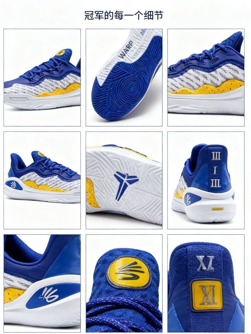 * **「库里签名细节」**:特写鞋舌上的SC30个人Logo、后跟的“Ⅺ”罗马数字,以及鞋垫上的励志标语,处处彰显签名鞋身份。