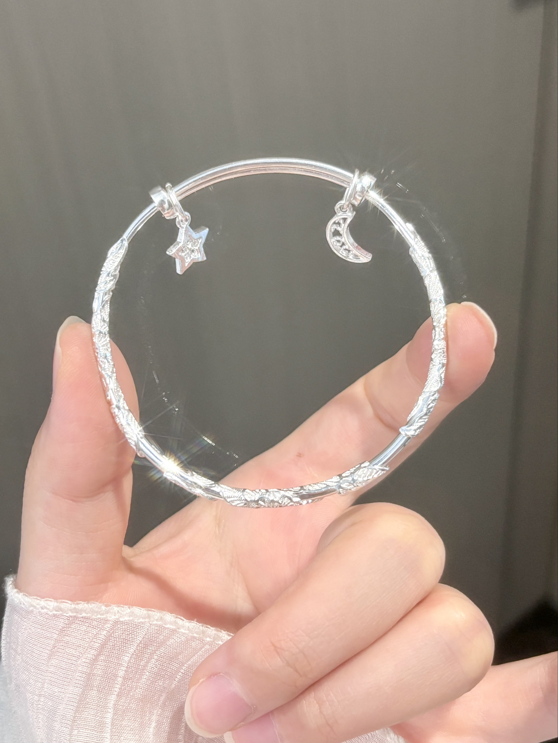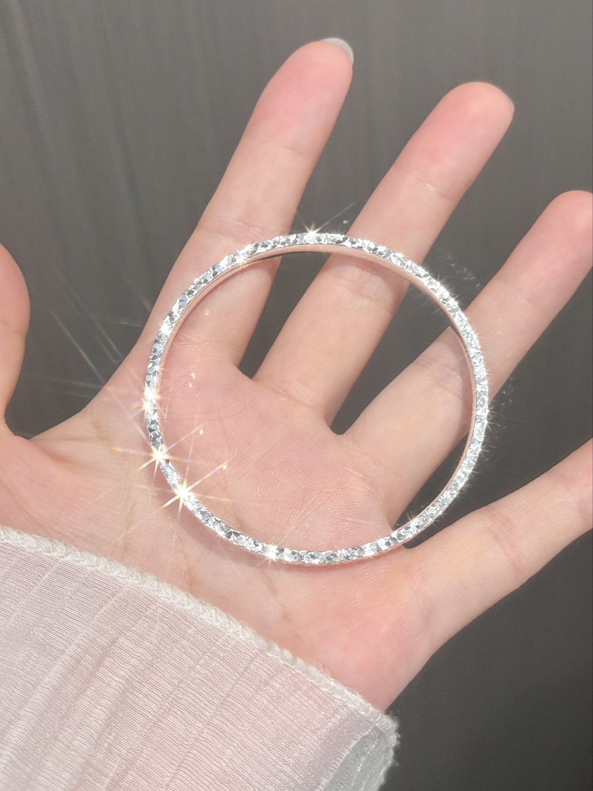 每个都是blingbling的闪闪滴 款式也简约不过时可以戴好久哦 我平时单戴或者叠戴起来都OK的 戴手上妥妥的清冷氛围感哎 还有手镯的圈口也能自由调节 日常我穿大衣裙子戴着吼适合~
