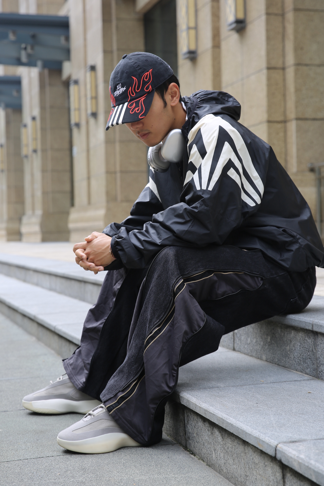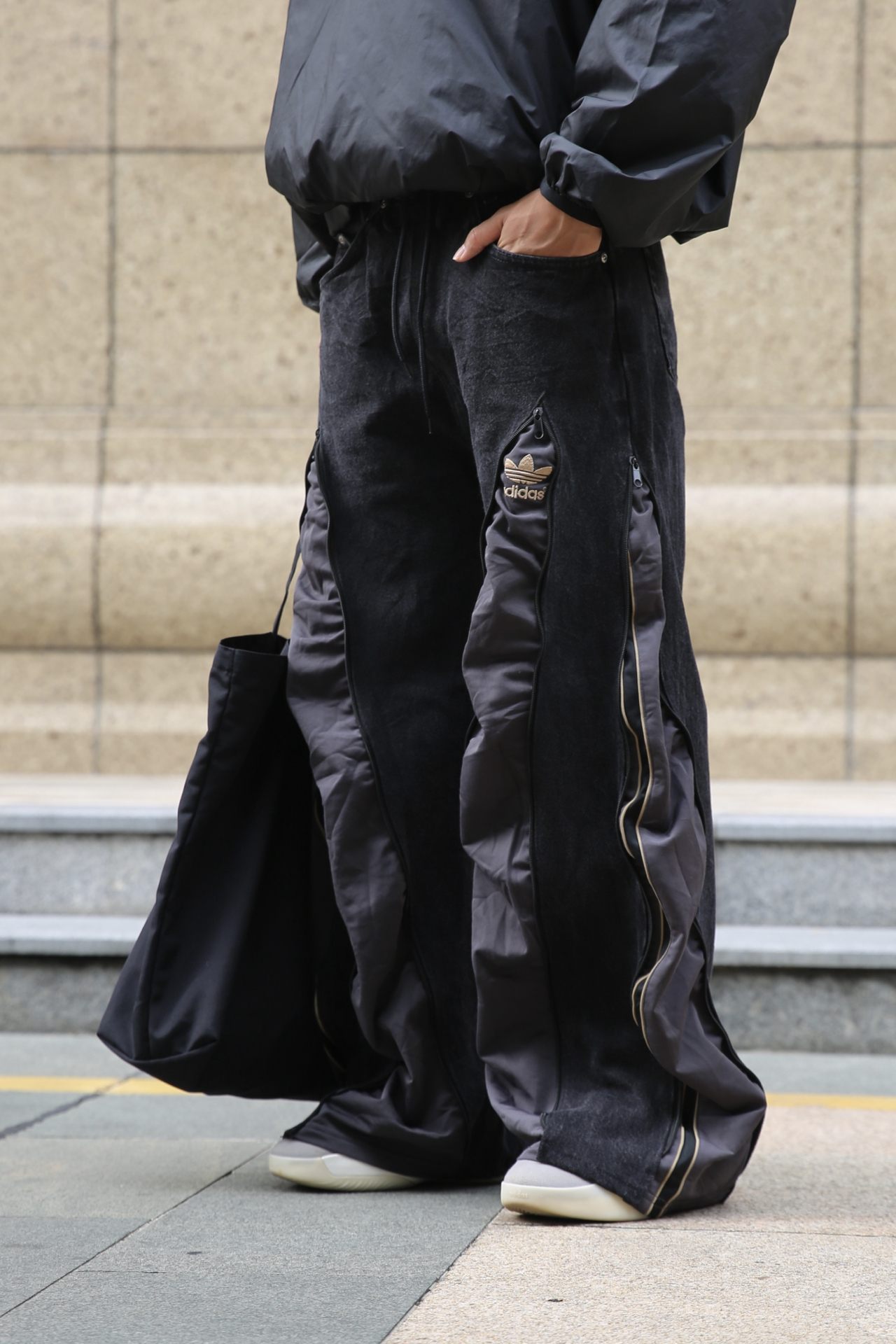 整套All Black造型干净利落,帅得刚刚好~ 上身是 adidas FOG机能外套 肩膀上的凌厉线条是我最爱的部分 短款版型显壮又有型⚡️ 下身adidas × Wrangler remake 微唎拖地裤 视觉拉长比例,走起路来自带气场~ 上街那一刻,直接从通勤切换到秀场模式🔥 简直就是懒人衣橱必备单品✔️ 想耍帅又不想费心?这一条神裤就能搞定! 设计感满分、显高显腿长,谁穿谁知道~ #...
