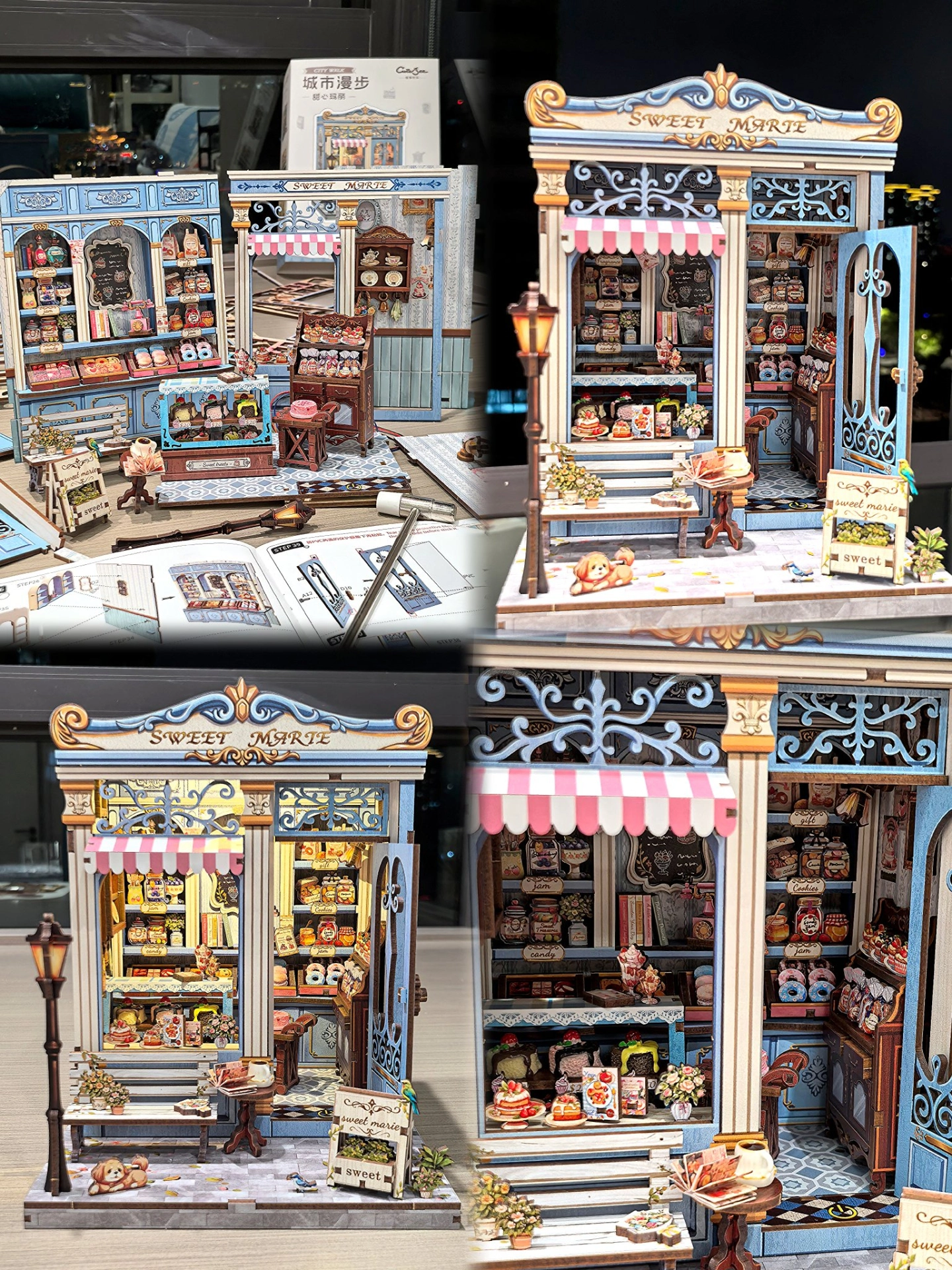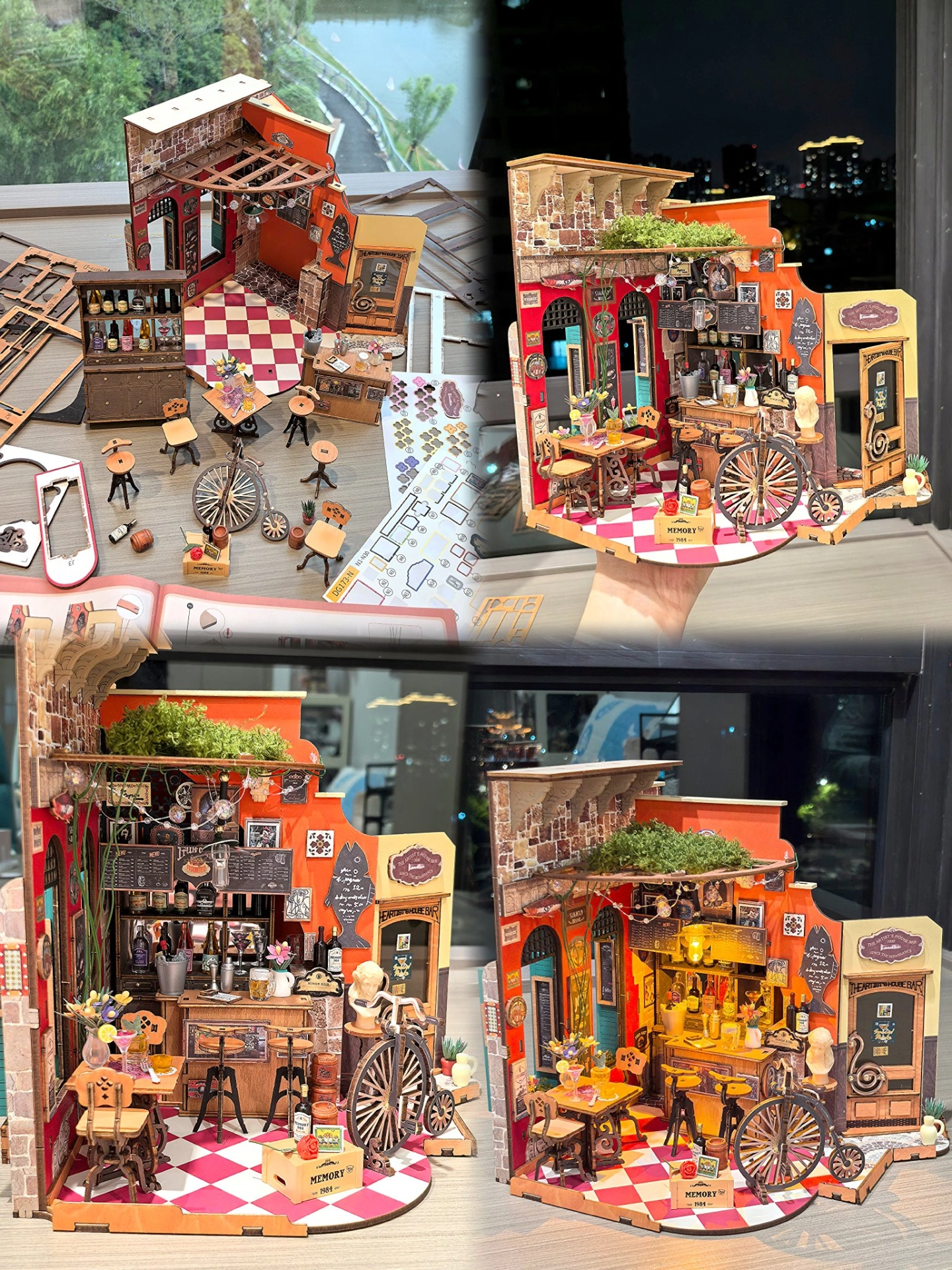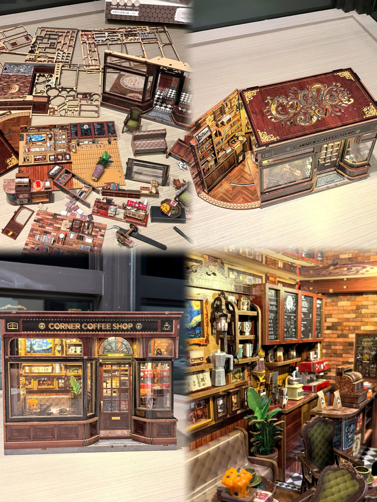 1️⃣礼物工厂🎁好貌美好高级好精致的小屋!是有动态机关设计的,圣诞树会旋转,传送带会运输,印章会盖! 2️⃣甜心玛丽🍩好美好美,拆开就被颜色美丽住了,好夏天好梦幻的小屋~狠狠爱 3️⃣街角咖啡屋☕最爱最爱顶盖的镂空coffee设计,一下子档次都高了好多! 4️⃣酒吧🍻下了班小酌一杯,微醺ing~ #大人也要玩玩具 #我的拼装潮玩 #diy手工小屋 #积木玩具控 #这才是我想要的玩具