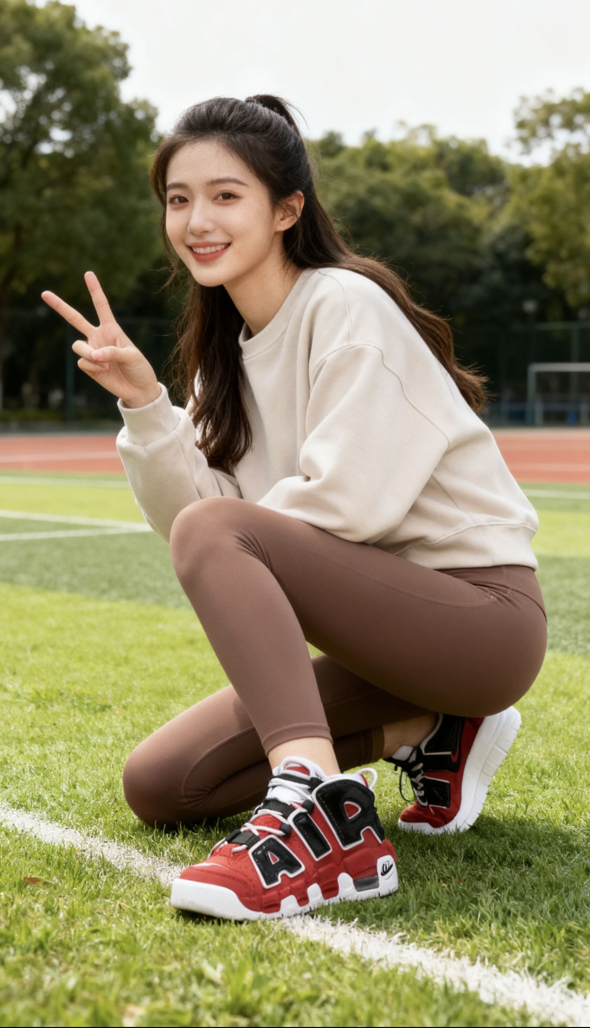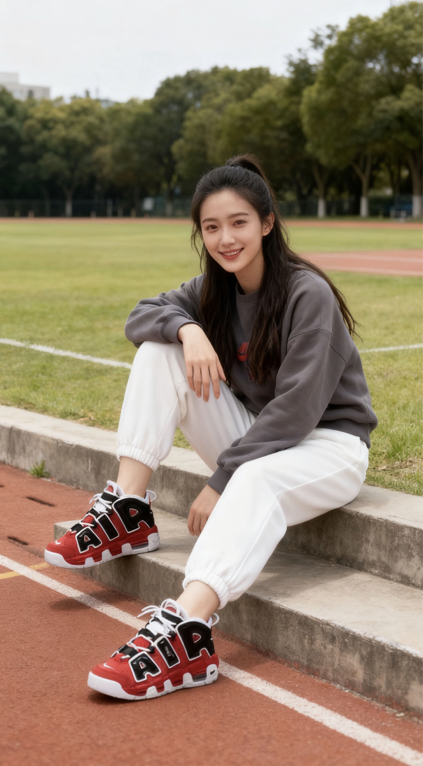 鞋款以高帮、厚重轮廓+醒目“AIR”标识为特点 1. 下装适配:选修身款(如瑜伽裤、束脚卫裤),弱化鞋身厚重感;或用短裤露出脚踝,平衡高帮的包裹感。 2. 上装风格:搭配Oversize卫衣/运动夹克,呼应鞋款的街头运动属性;简约T恤+牛仔外套则能打造休闲潮感。 3. 配色呼应:利用鞋身红/黑/白主色,上衣或配饰加入同色系元素(如红色卫衣、黑色挎包),提升整体协调度。 4. 场景适配:日常...