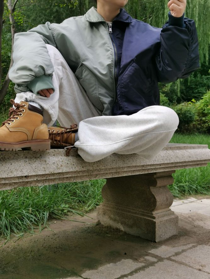 谁能拒绝这种又酷又随性的早秋穿搭啊!拼色棉衣外套把复古感和街头风揉在一起,搭配灰色束脚卫裤,松弛感直接拉满~氛围感这不来了吗…