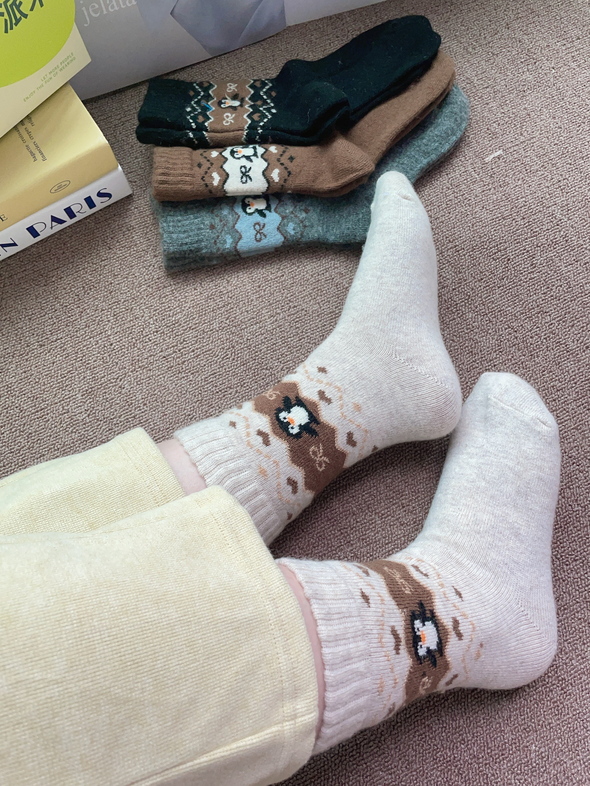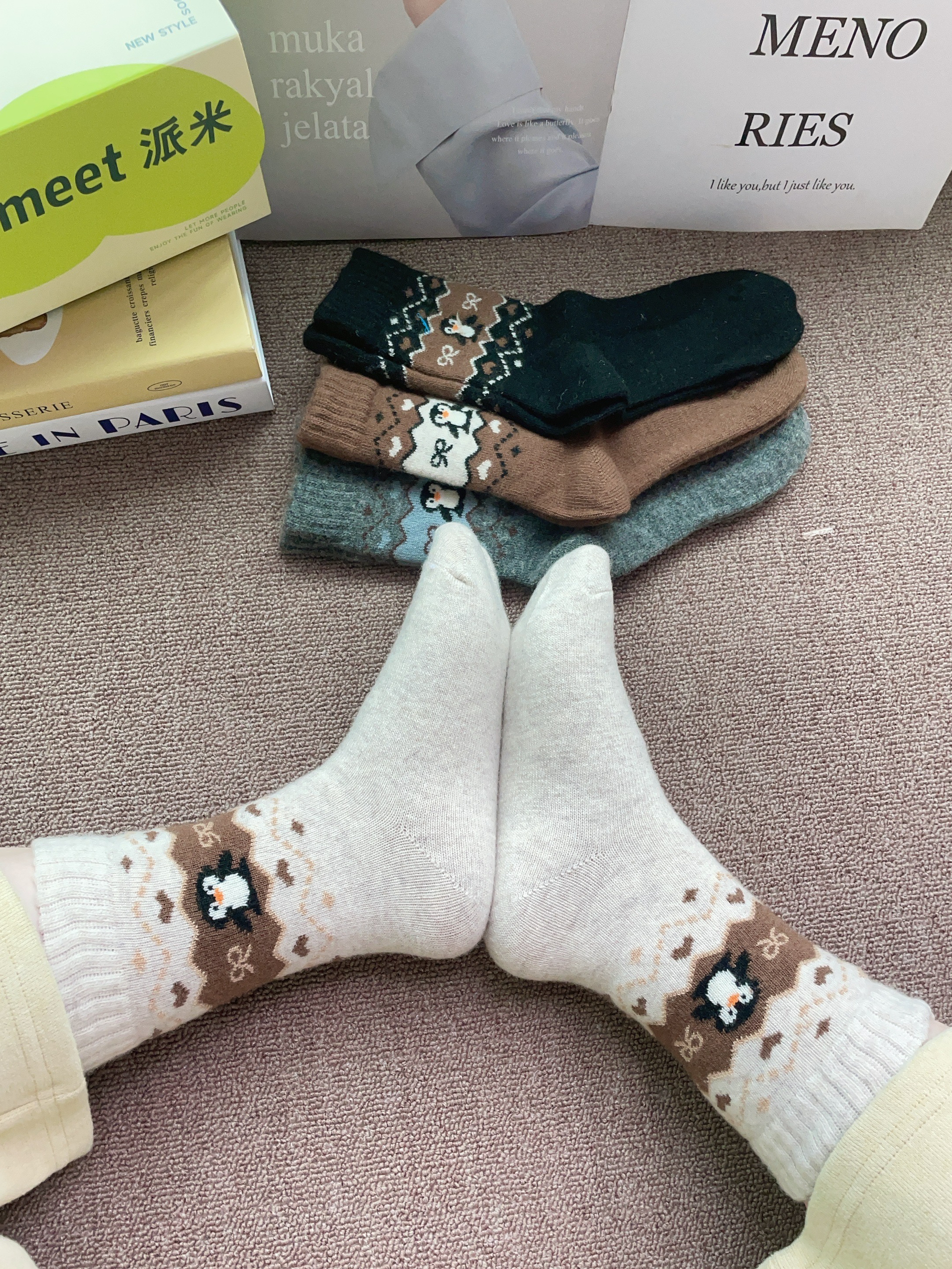下周就是立冬啦加上下雨天降温比较冷 又刚好是一年一度的双十一 我又给自己新添置了袜子 派米这款袜子配色蛮好看的 我摸着面料柔软舒适好厚实 上脚穿舒服我感觉暖和又不勒脚 细节做的可以 没有多余线头啥的 日常通勤百搭都可以😌