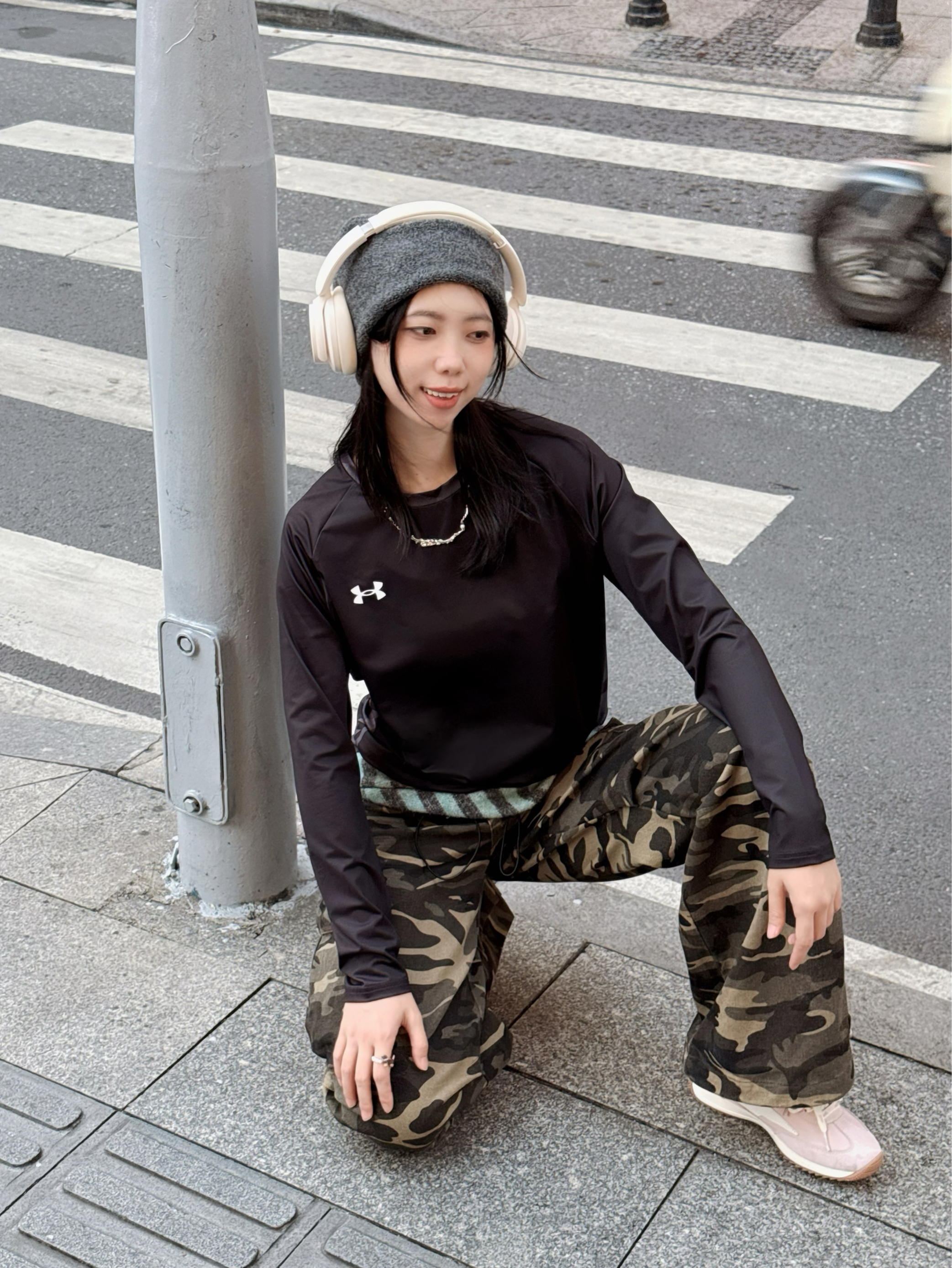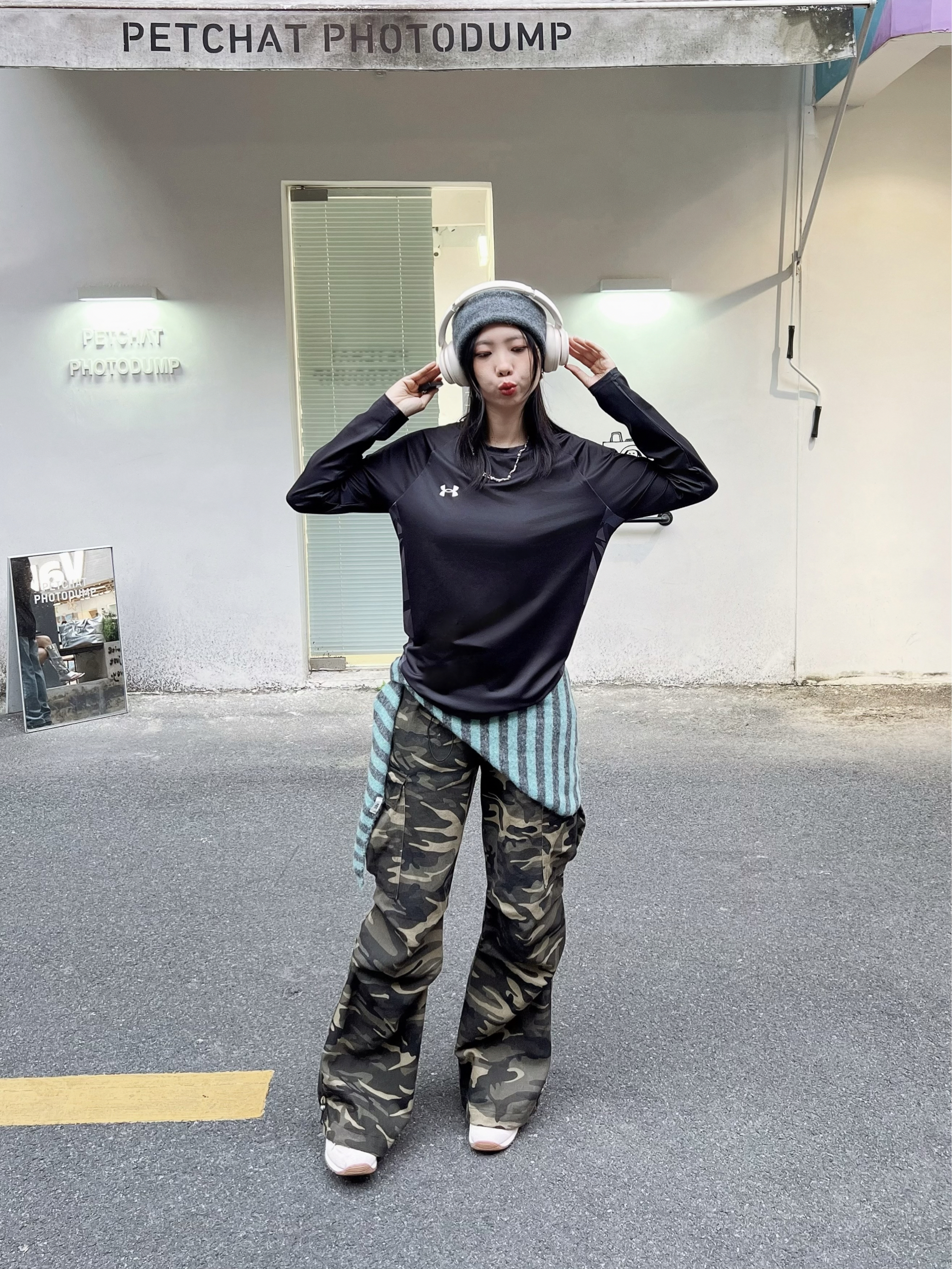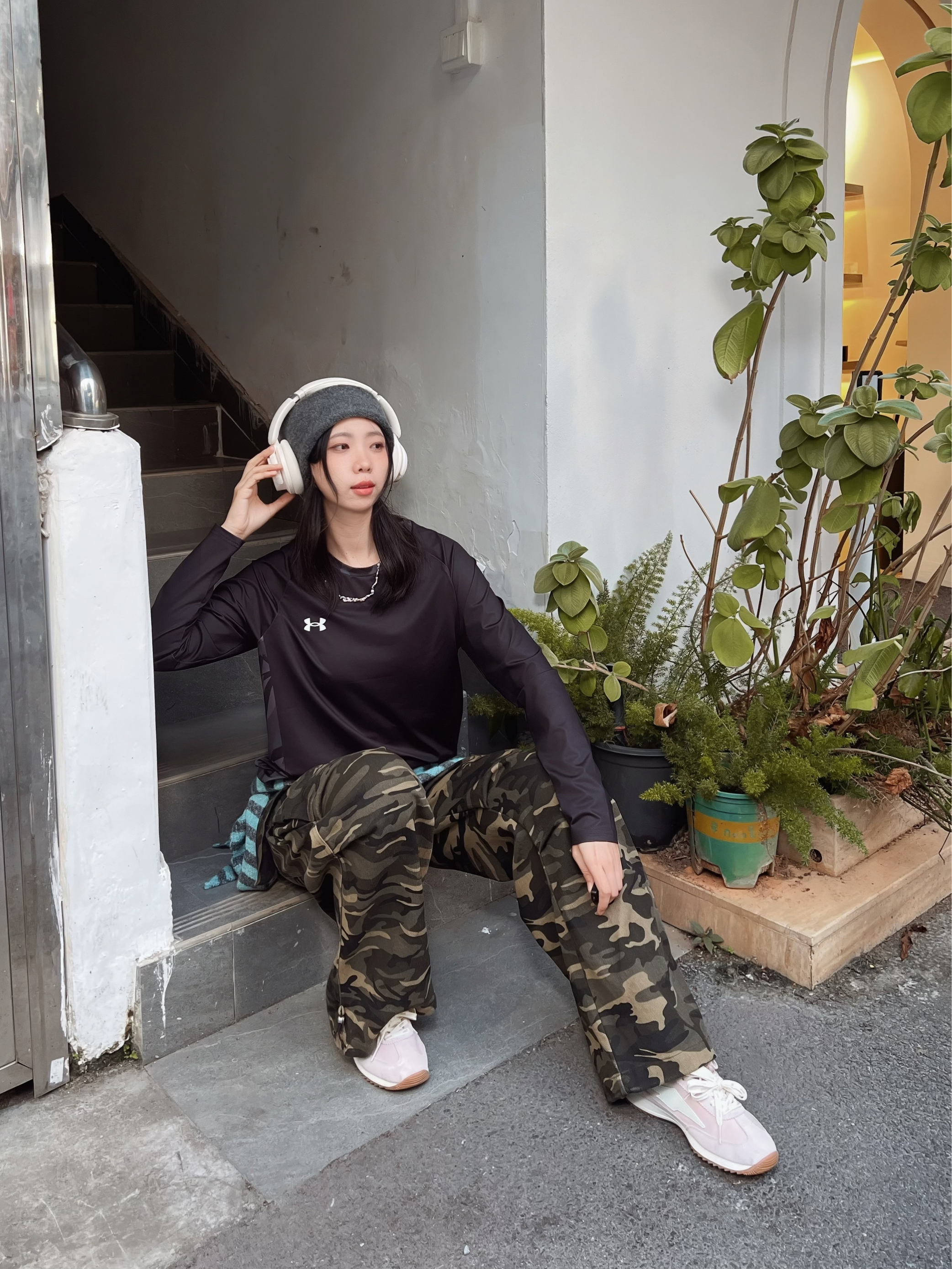 广东终于入秋啦🍂舒服好穿的长袖安排上了✨ 百搭t恤*迷彩裤*冷帽*德训鞋,一身舒服又自在~