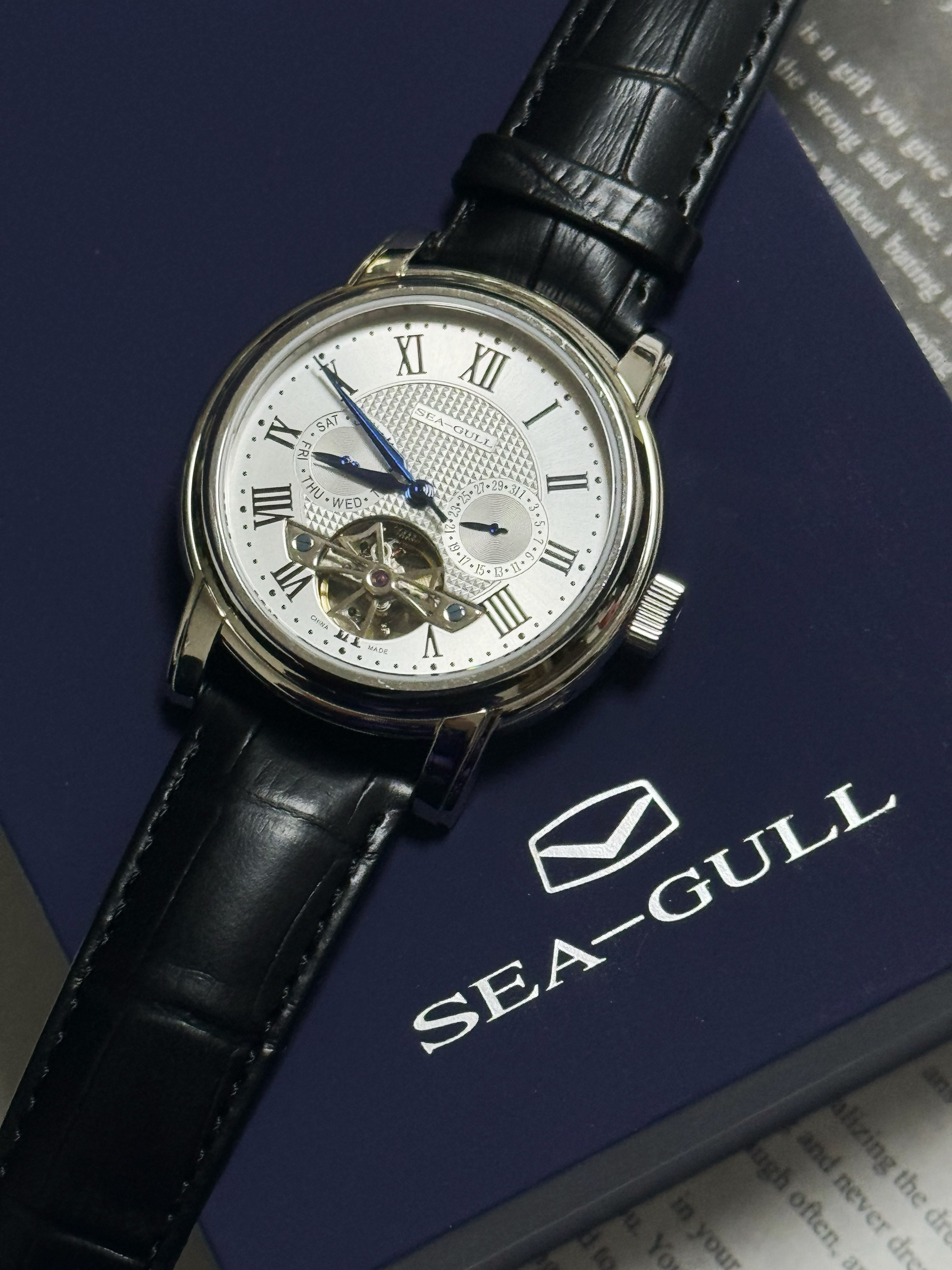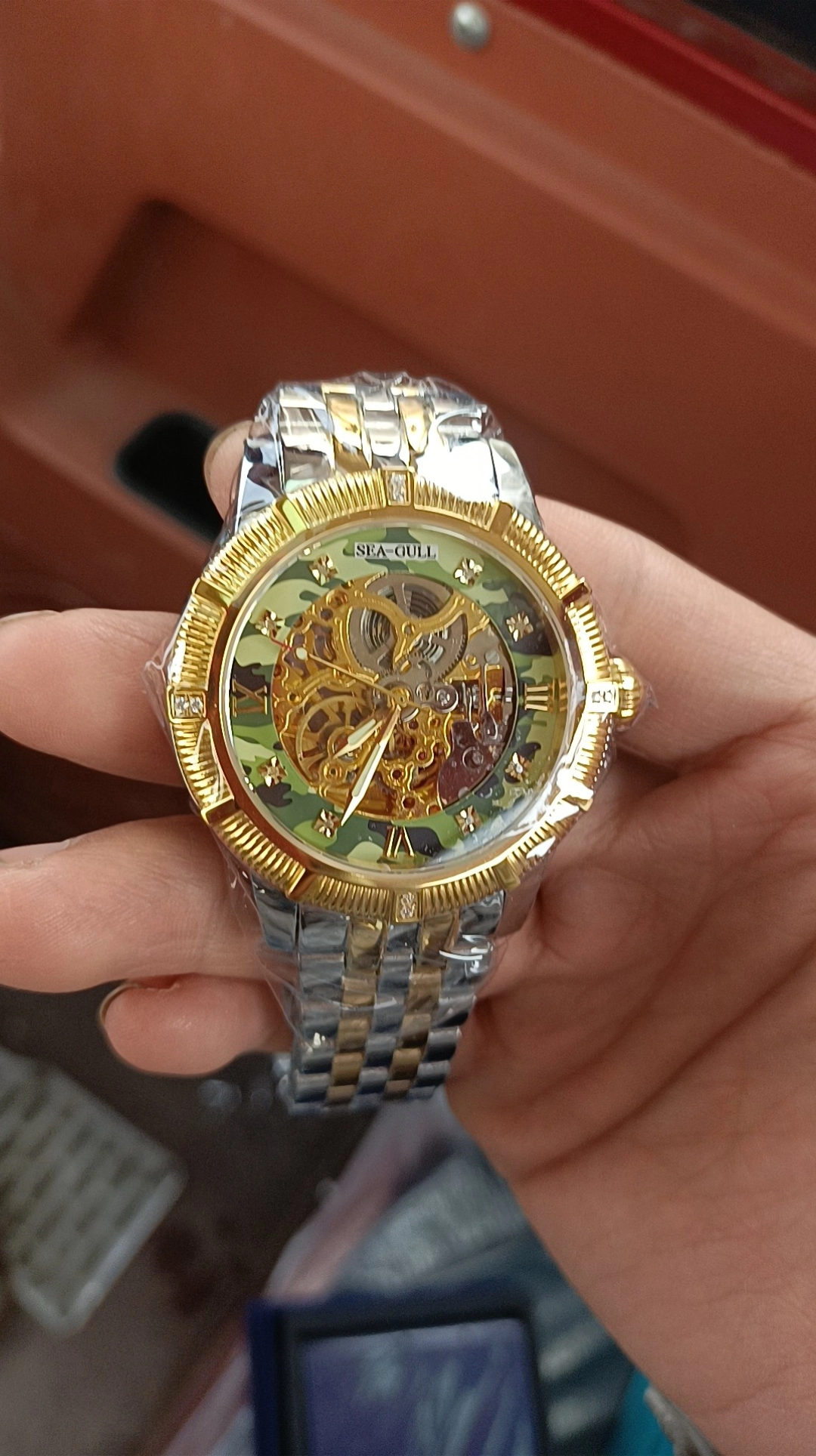 我入手这块表有段时间啦~银色表身配白色刻度针,看着干净利落,表盘有小秒盘和日期窗这些元素,但整体还挺清爽的。钛金属表带比我之前的钢带轻一半,戴在手腕上贴合又没压迫感👏。作为机械表,它走时意外准,每天误差大概+3秒左右,自动上链也很高效,日常戴基本不用手动补链。100米防水,洗手下雨都不用摘,很方便~正装时表藏在衬衫袖口,那点橙色提气;休闲穿卫衣牛仔,它也能hold住活力感~不过要是表盘能再小一丢丢...