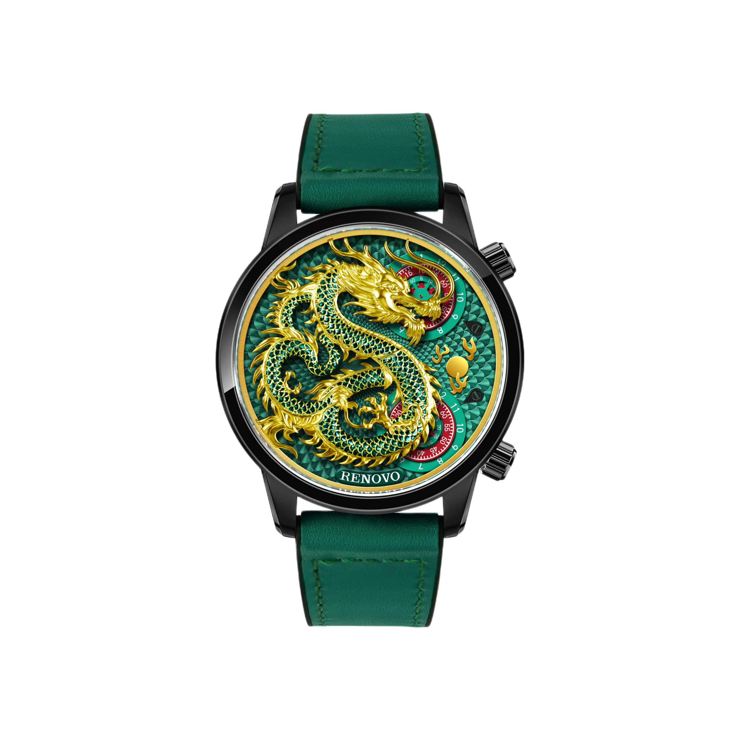本篇笔记关联了RENOVO 龙鳞系列 龙戏珠双记时龙光万丈夜光防水创意设计龙纹时尚潮流魅力石英男士手表 绿带黑壳等商品,为用户提供真实的使用体验和购买参考。
