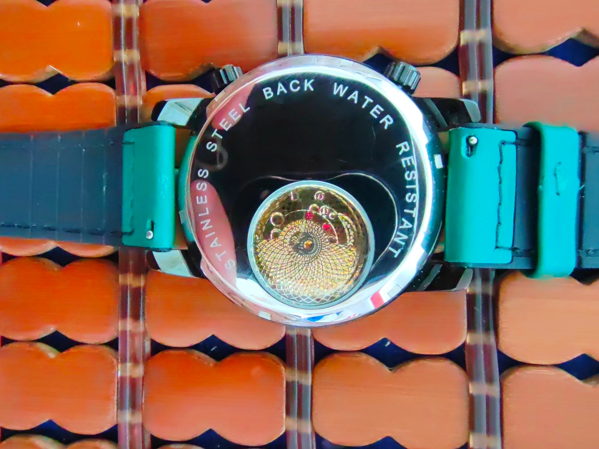 我给男友挑的这块表太绝啦!表盘龙纹超有设计感,精钢表壳+真皮表带质感拉满~透底能看机芯,还有夜光和双计时!就是防水只有30米,日常洗手得注意~包装也很潮,送男友超合适👏