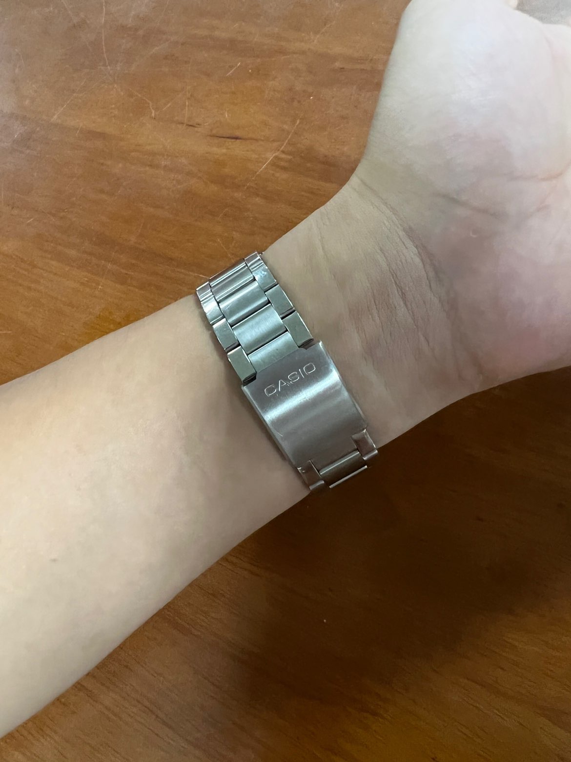 我入这款表主要冲着性价比!一百多的价格,外观简约大方,不锈钢表带质感在线~我手腕细,拆了好多节表带,没想到还挺好操作👏。日常上课、休闲戴都很搭,虽说防水只有30米,别碰深水就行~一百多要啥自行车,学生党想入块表可以冲!