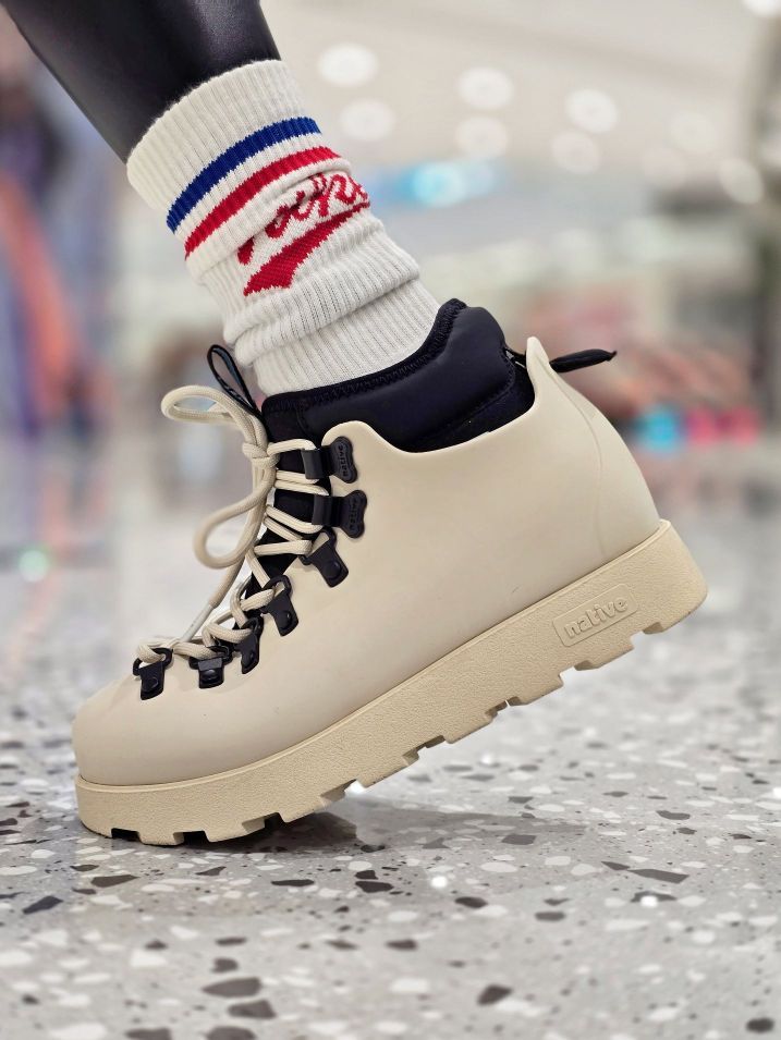 回头率💯的Native Shoes 马丁靴,满满的复古户外机能风,好有范儿的感觉哦!!第一次见袜套还能拆开来穿的鞋子,感觉踩在了云朵里!暖和舒适,这不正合适我跋山涉水吗!而且这个增高效果也是好容易穿出大长腿的哟!
