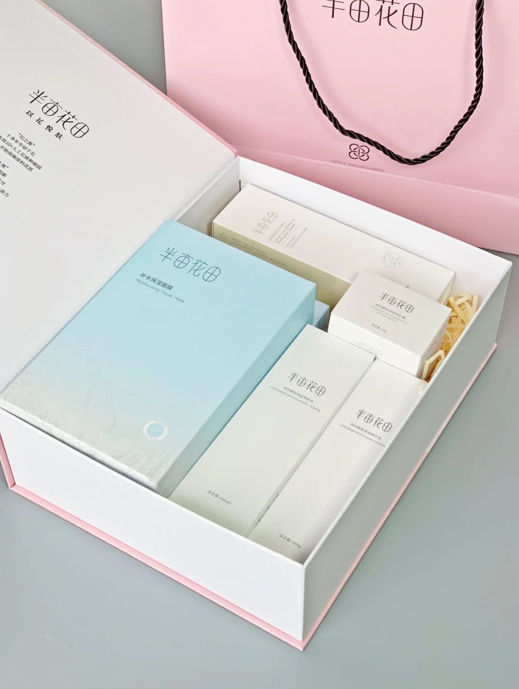 田田这次包装真的太米了 粉色系很有韩女ins的感觉 一张出头就能拥有这五件套 水乳用起来都是很清爽那种 方便吸收 氨基酸洗面奶泡沫很丰富 用完不会拔干 面霜像果冻一样的质地,润润的 这一套补水保湿是针不戳 嘿嘿,这礼盒这配置谁能不迷糊,闺蜜都夸我会选礼物了