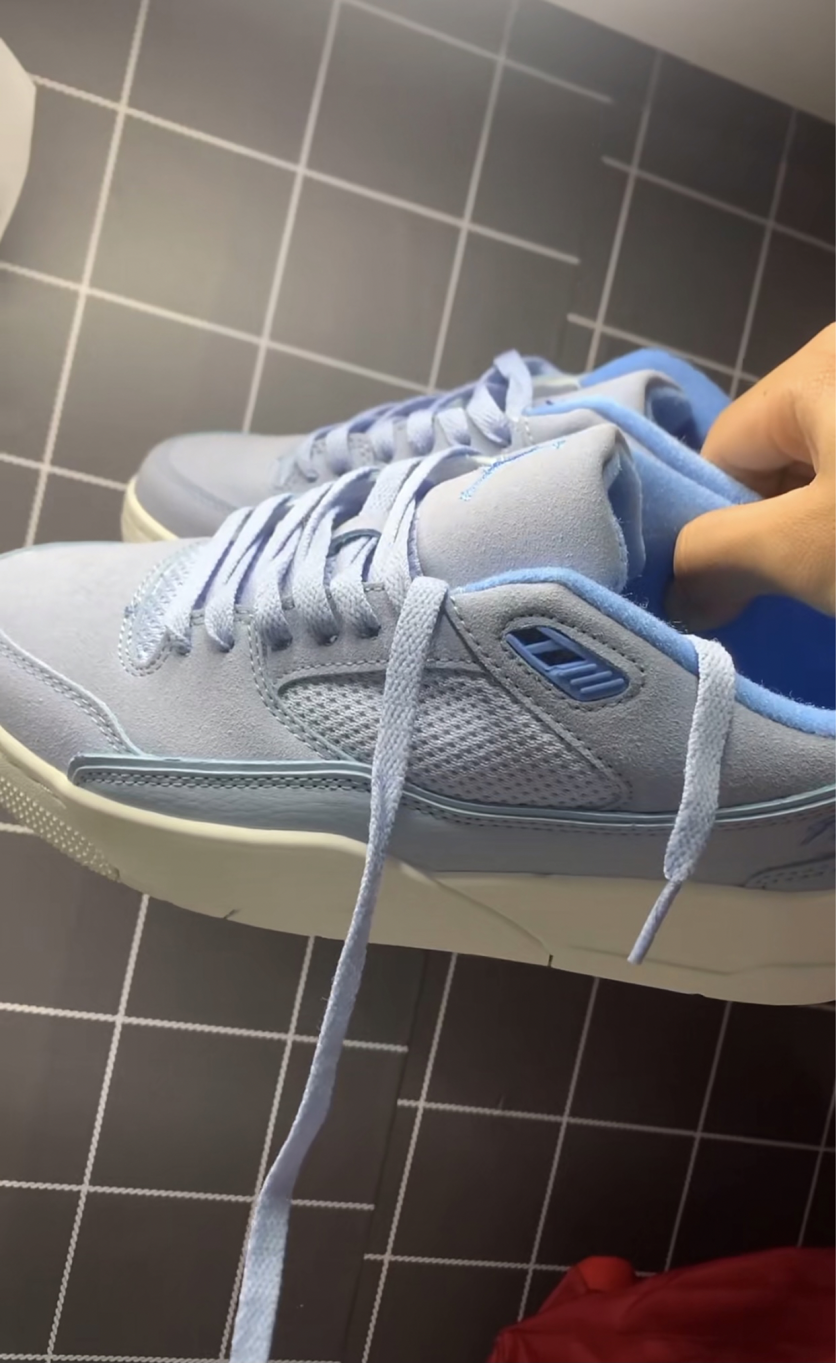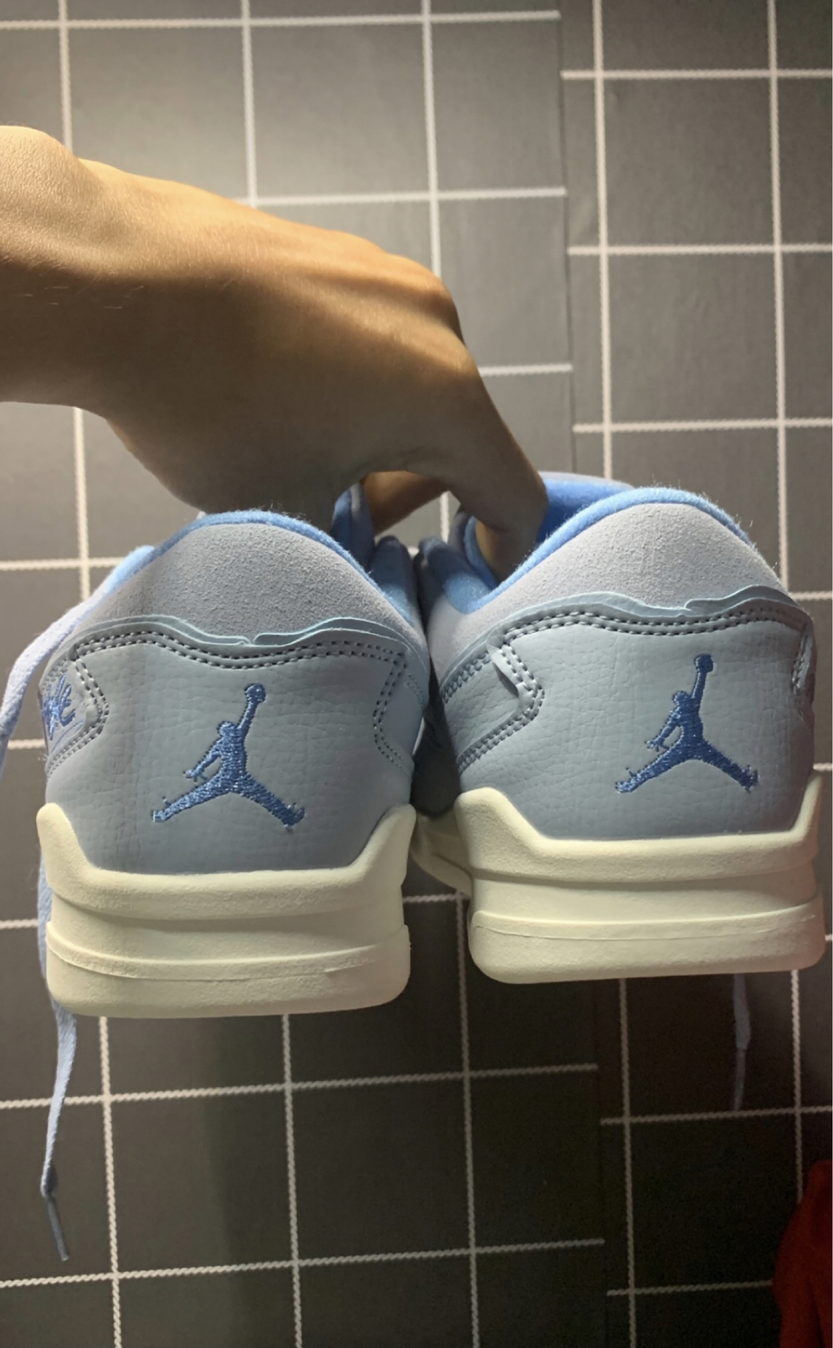 秋冬季就穿这双北卡蓝 好看+好穿 回头率超高的淡蓝色AJ啦~很梦幻的蓝调,满满青春 氛围感! 大部分麂皮材质,很有质感,手感也不错!包裹性挺好,柔软度也不错,整体挺舒服!穿搭起来很轻松,运动休闲都能轻松驾驭!! !就是浅色不耐脏,麂皮不太好洗其他方面倒是蛮不错的!尺码也是正码!