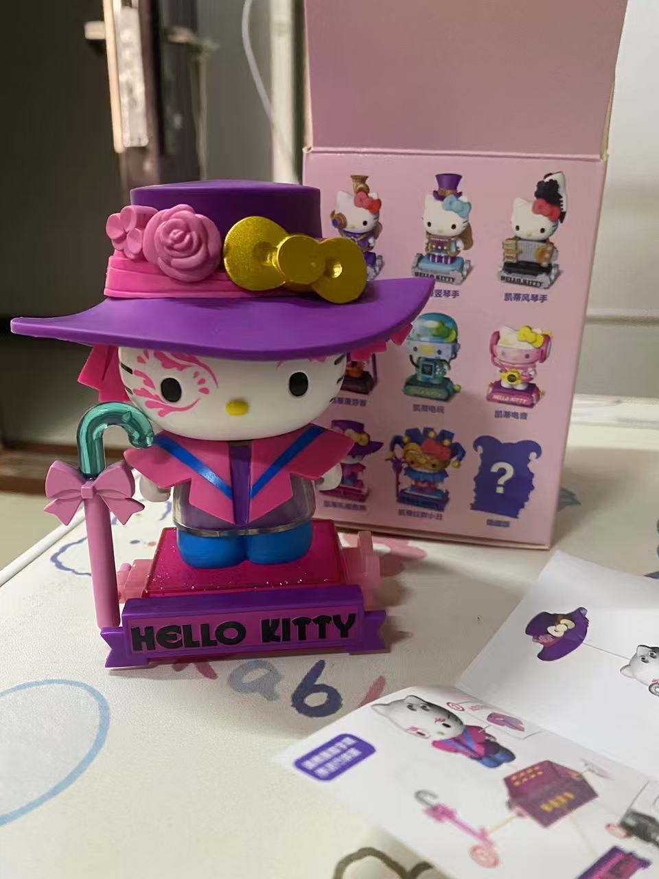 谁懂啊家人们! 拆到泡泡玛特Hello Kitty时空之旅盲盒,这紫粉配色+礼帽造型 尊嘟好看到想焊在桌上🥹 就是抽到重复款会有点小emo~