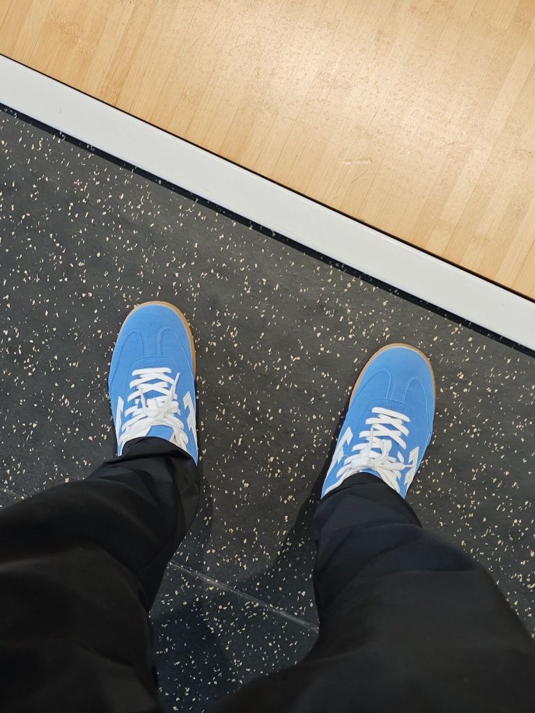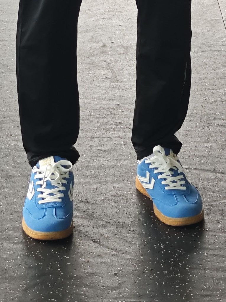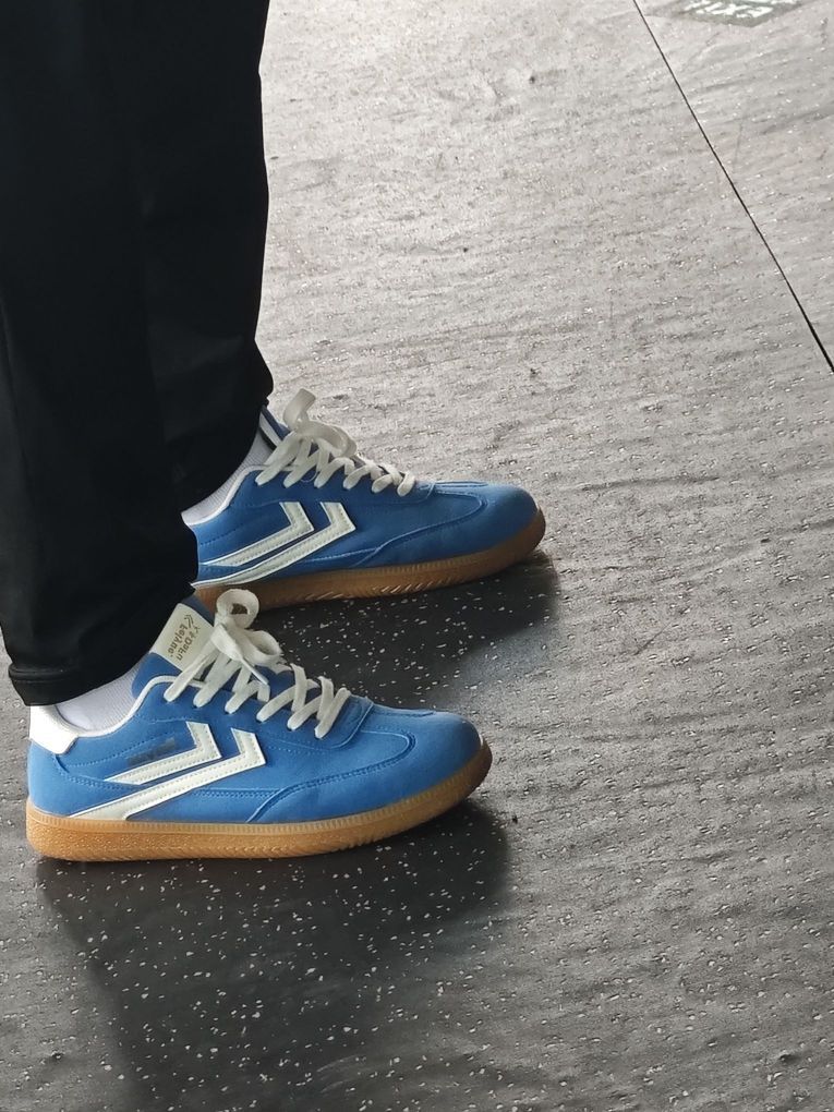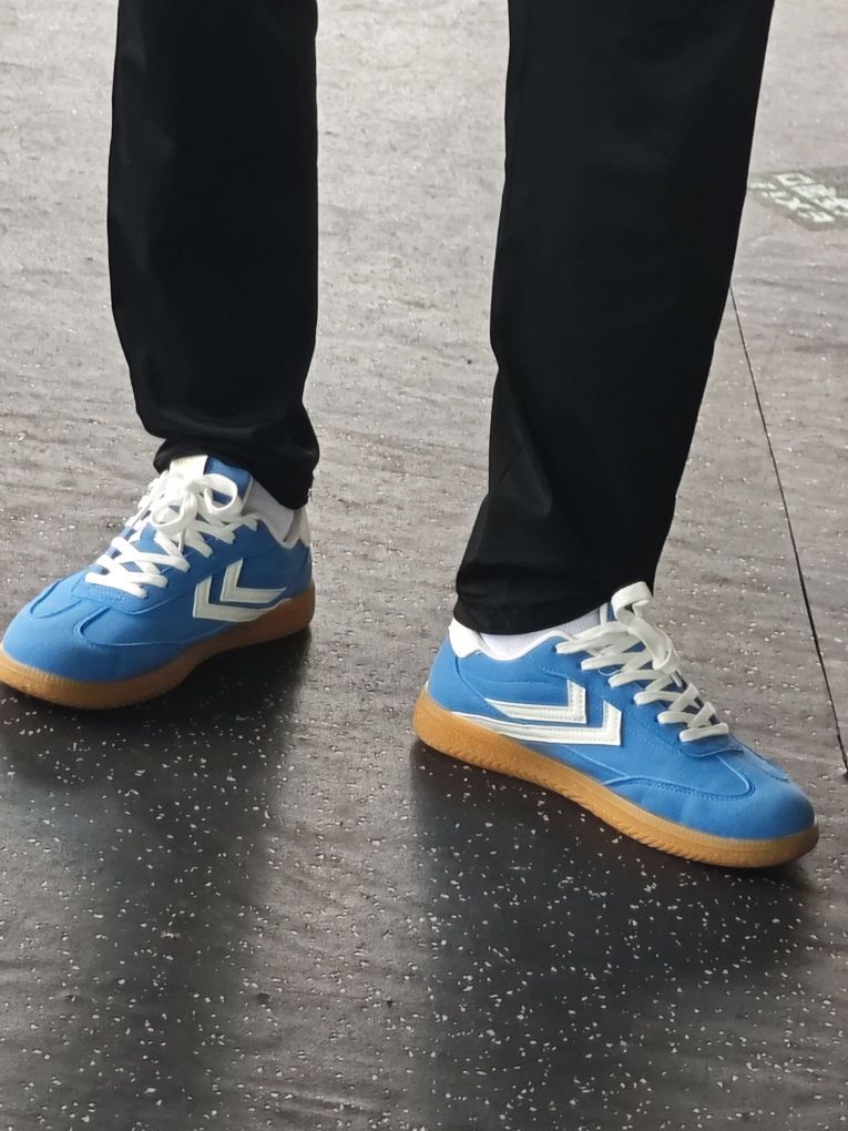 刚在健身房冲完肩背,换这双飞跃蓝鞋的时候没费劲——鞋面软乎乎的,脚塞进去直接裹住,冬天从健身房出来吹点风,厚袜裹着也暖。底子是轻软的弹,走回宿舍那截路,脚掌没一点酸胀感,材质不僵,弯折着也顺溜。 复古蓝配白标看着清爽,健身服没换直接套都不违和,出了健身房顺路买杯热饮,随便站路边都显精神。国民老牌子的料子是扎实,上脚舒服又耐看,这阵子健完身基本都穿它。