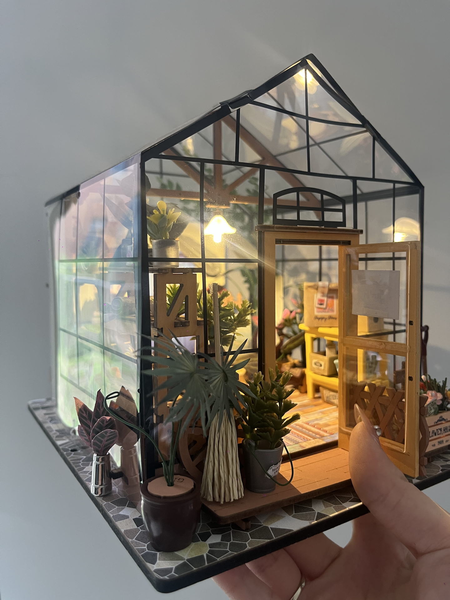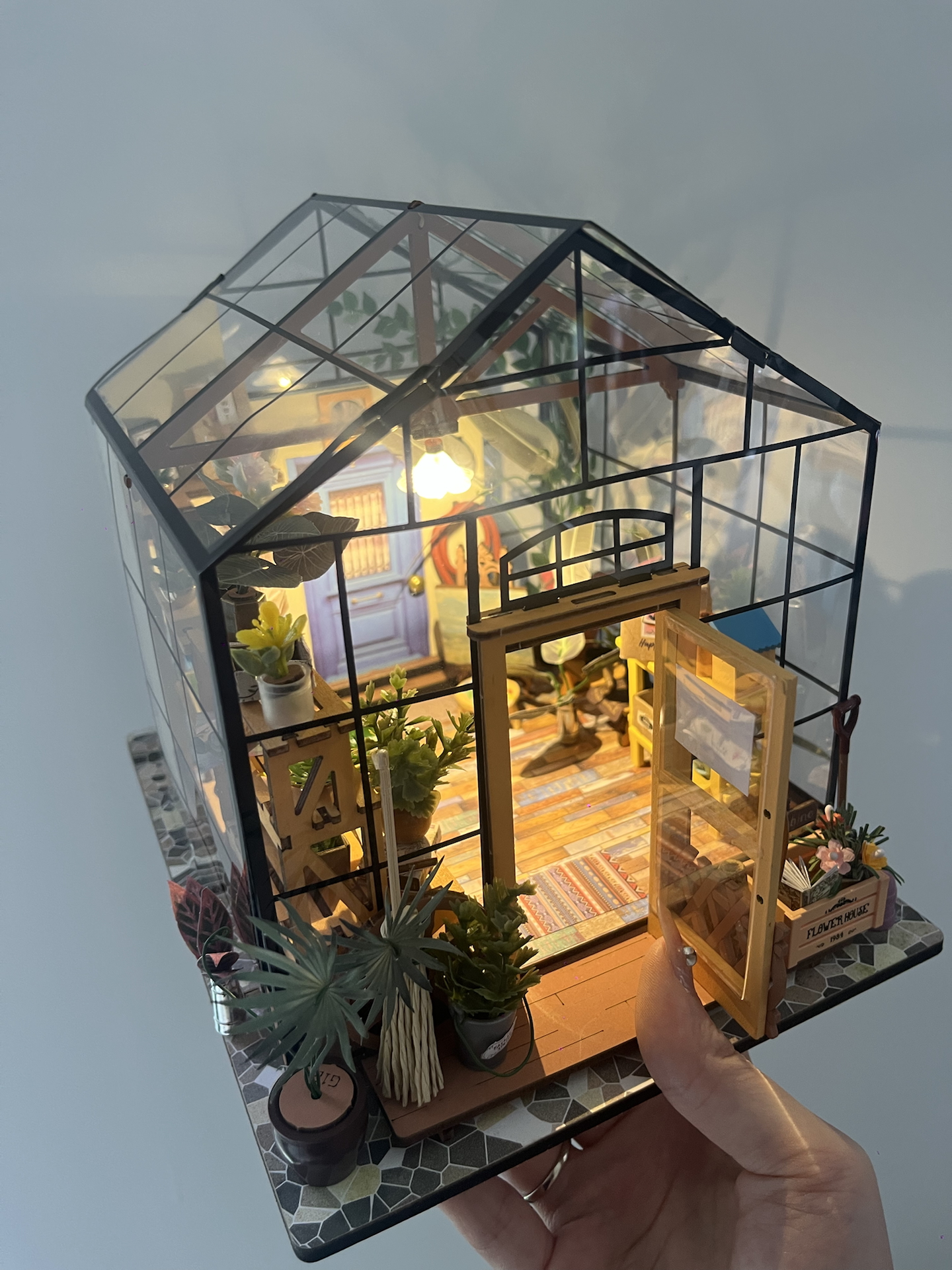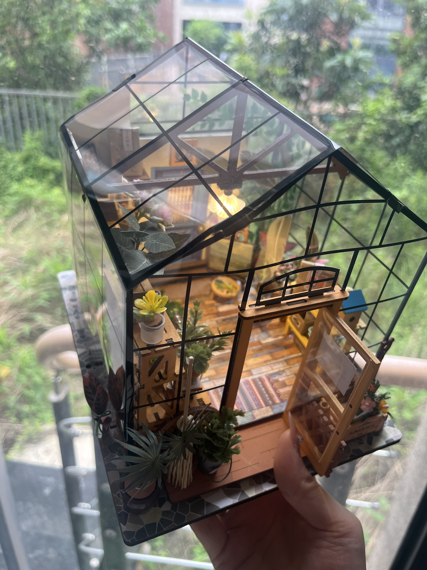我拼了这个玻璃花房小屋,通透玻璃配暖灯,光影好治愈~就是零件小,拼装得耐着性子来。摆桌上当摆件,朋友来都夸浪漫,送礼或自己玩都合适✨