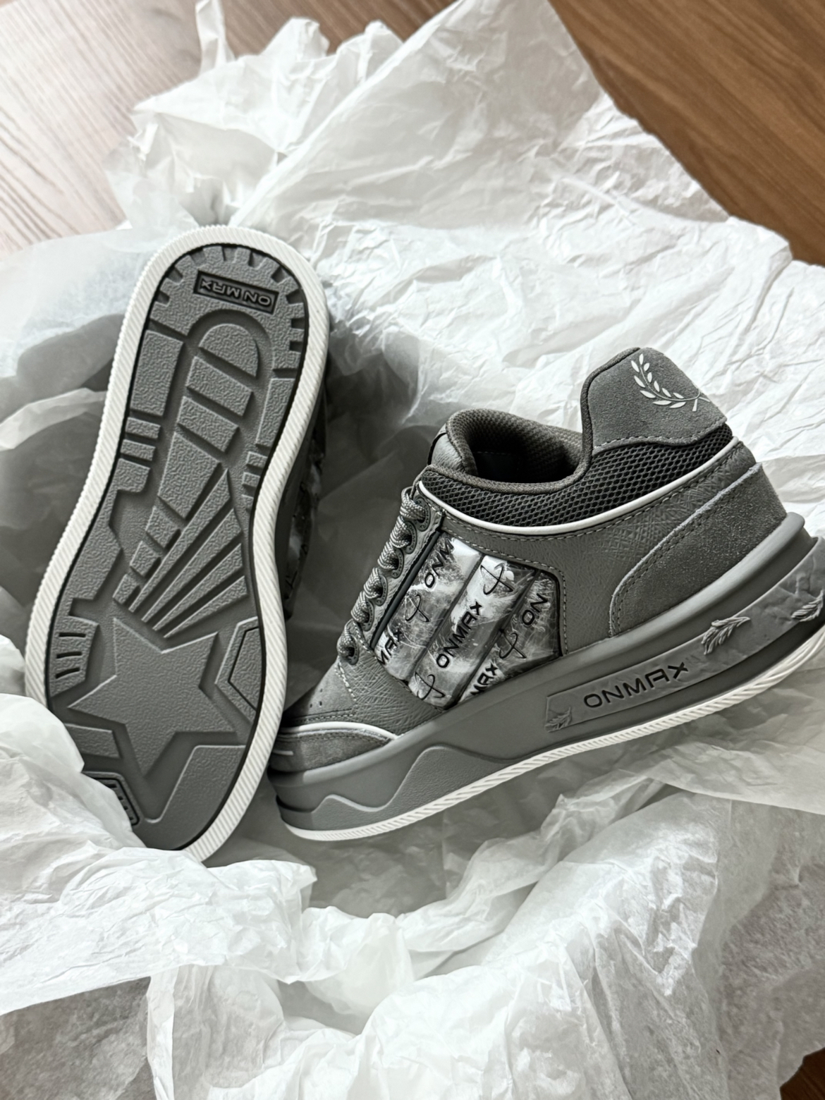 就这样说吧…感觉onmax这鞋子每个小设计都能单独拍4张!太重工了!!! 鞋后跟的灰鸽子浮雕、后跟两边图案不一样、鞋子两侧做了质感冲棉、鞋侧边的克罗心金属件… 每一个小设计都深得我心!!太有质感太高级了!!灰色搭配度也是贼高!!