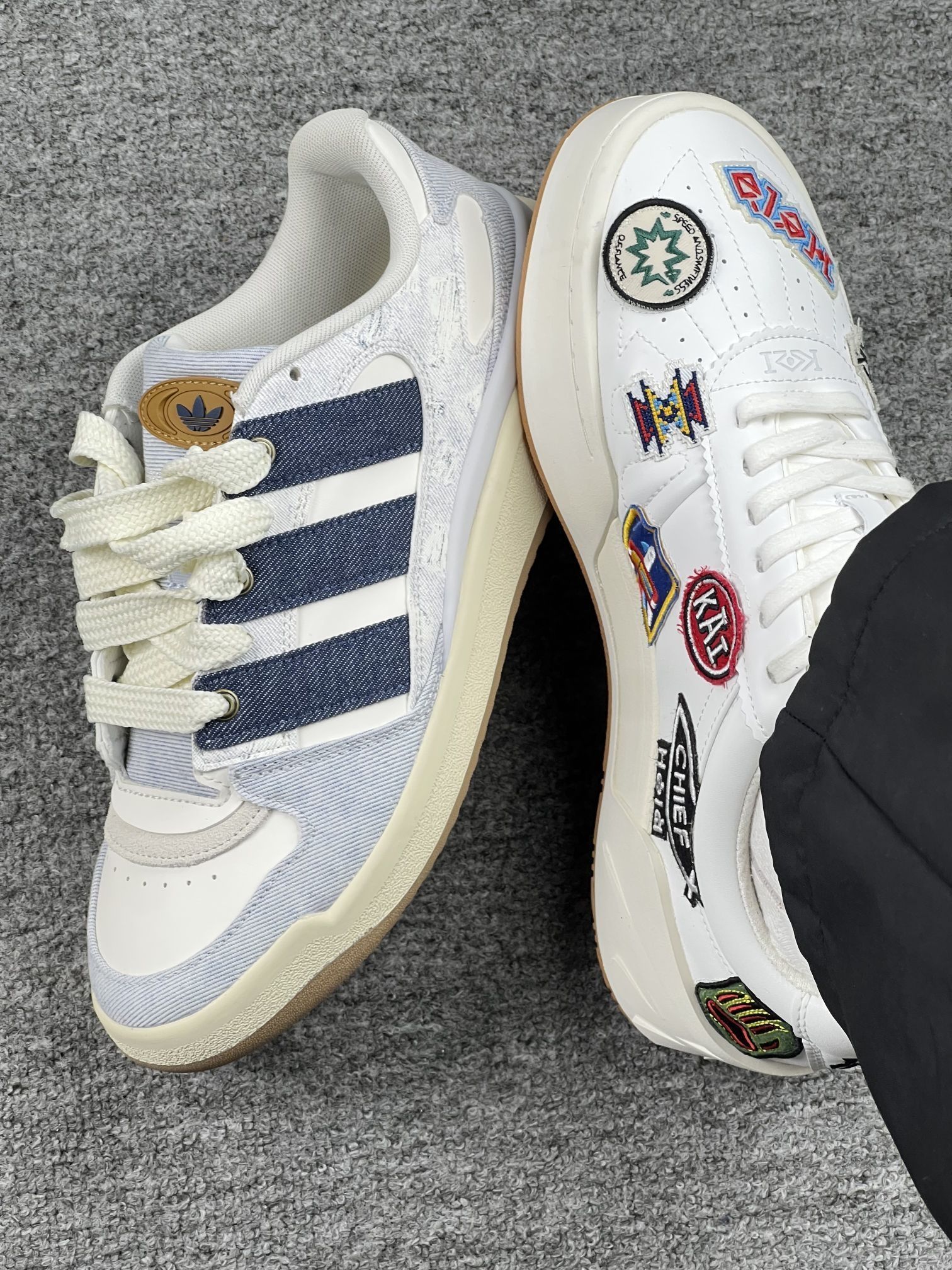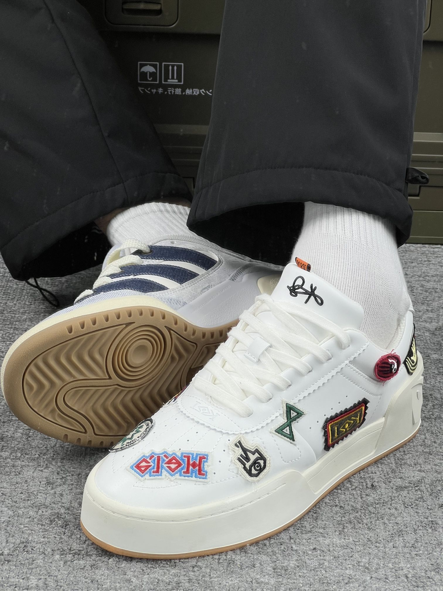 同时入了这两双鞋,说说真实上脚感受。 先看那双拼接款,各种补丁设计挺有个性,走在街上确实不容易撞款😜。但这些装饰也成了打理的麻烦点,每次清洁都得小心翼翼,生怕把补丁蹭坏了。穿着它逛个半天街,鞋底的缓震就有点跟不上,脚底板会发酸。而且鞋面透气性一般,夏天穿久了脚容易闷。 另一双复古三条杠款,牛仔材质搭配经典条纹,风格偏复古休闲。但它的码数有点迷,我平时穿的码数上脚略紧,得选大半码才舒服。鞋底的耐...