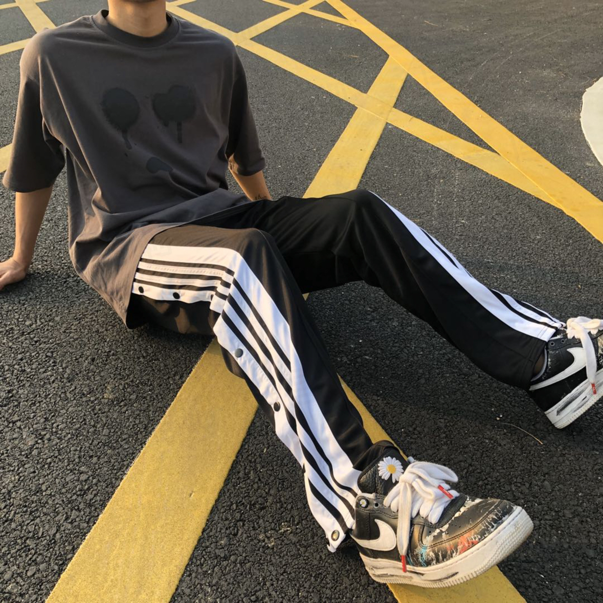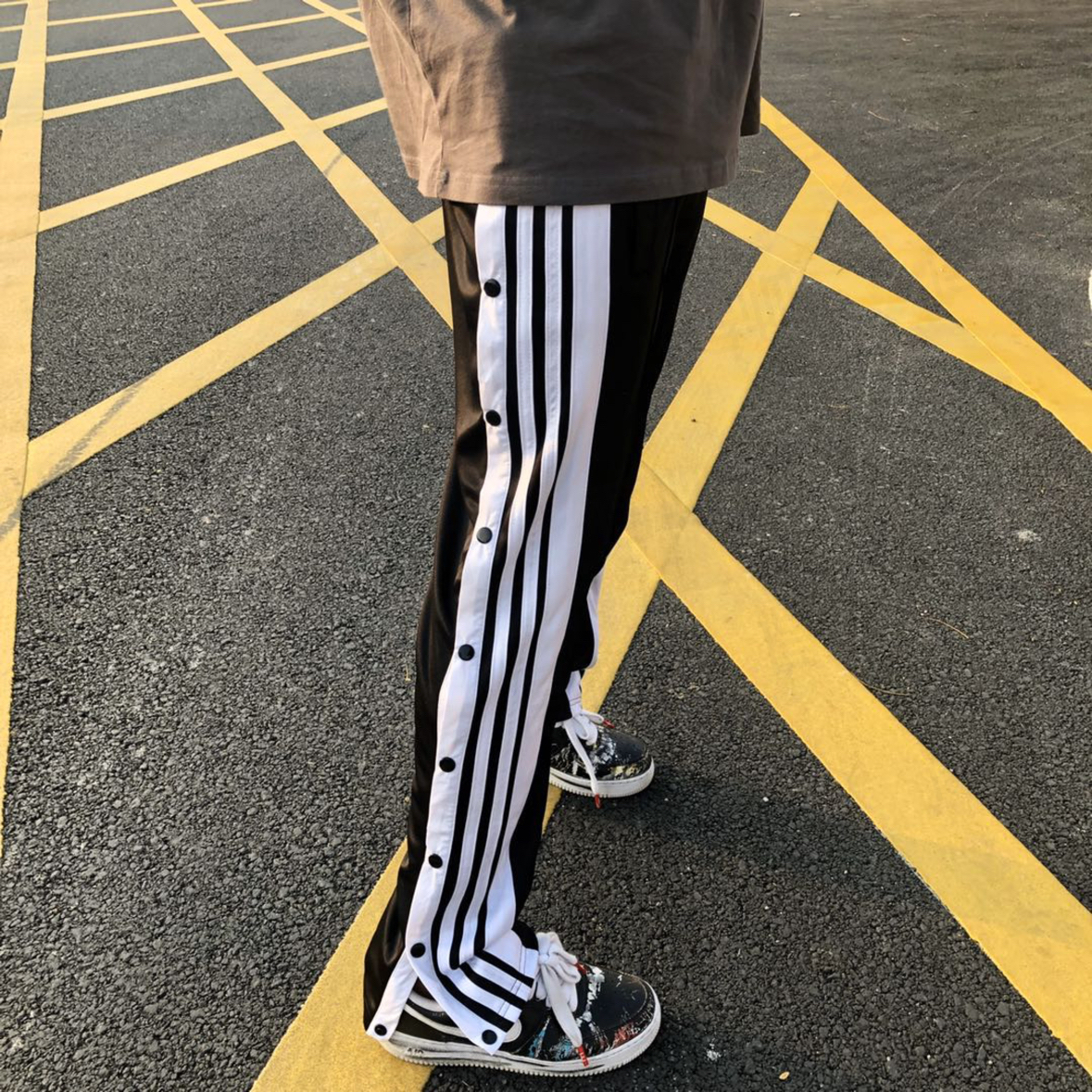 高街风爱好者看过来!HELIPORT这款排扣休闲裤太绝了!侧边条纹撞色+全开排扣设计,垂感十足,男女穿都有范儿~