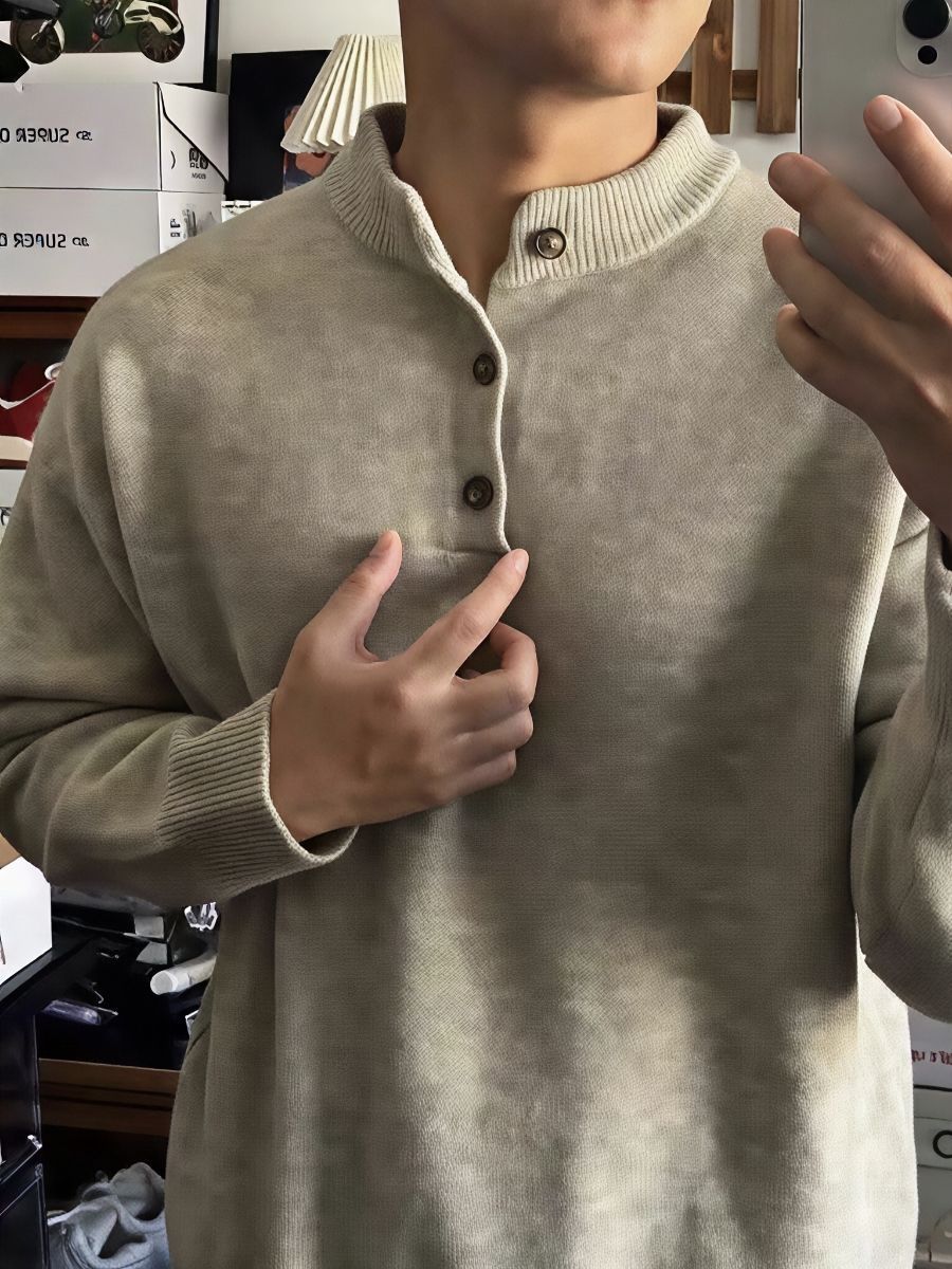 穿这毛衣第一感觉是软——针织料贴肤不扎,裹在身上是温温的暖,立领刚好护着脖子,不用额外裹围巾也不凉。版型是松快的慵懒款,颜色是干净的浅调,随便搭条裤子都显清爽,往那儿一站自带松弛的好看。 它不闷,穿一天身子还是暖的但没黏糊感,单穿或当内搭都合适。双十一正好能入,冬天缺件舒服又耐看的针织衫,这个算是踩对了。