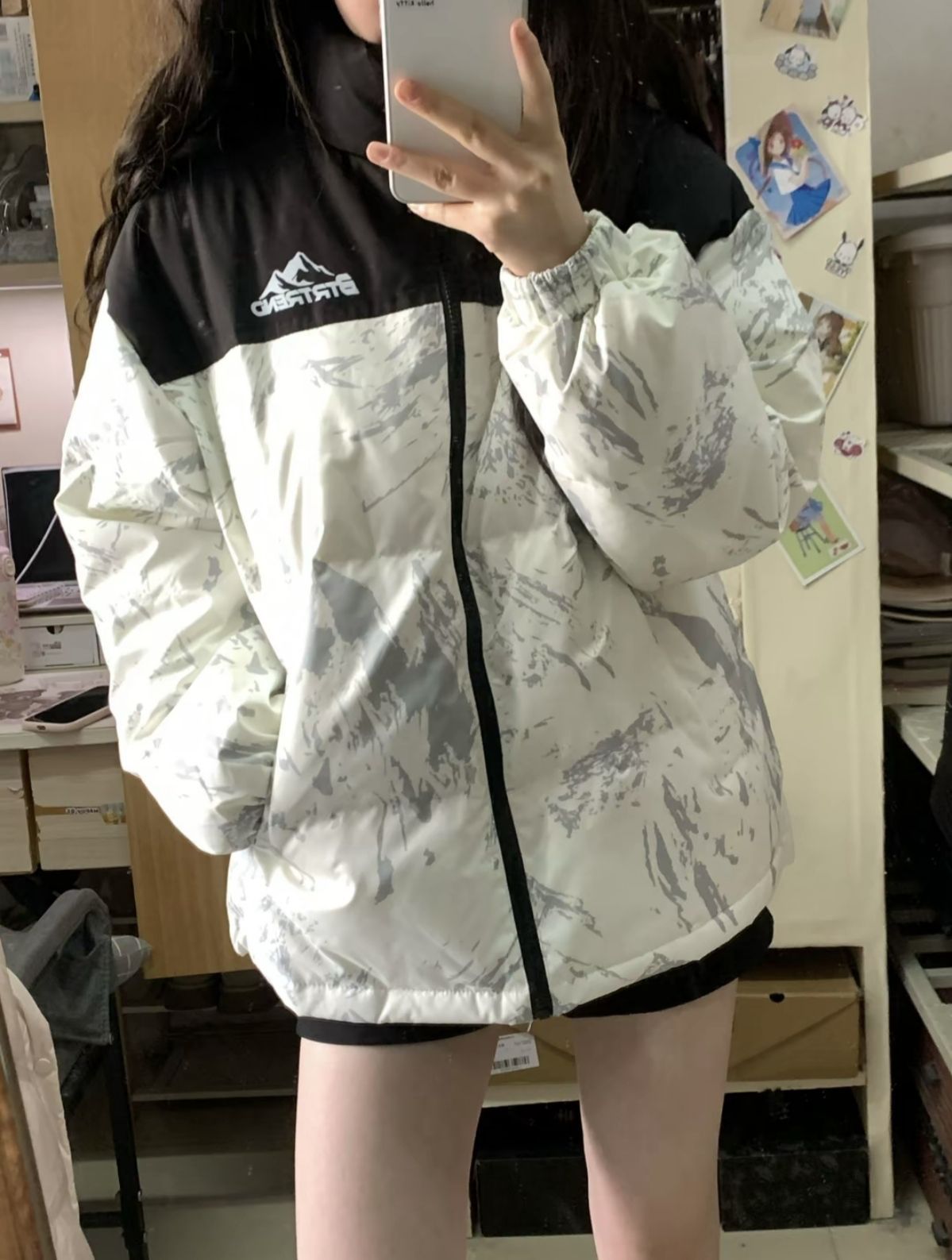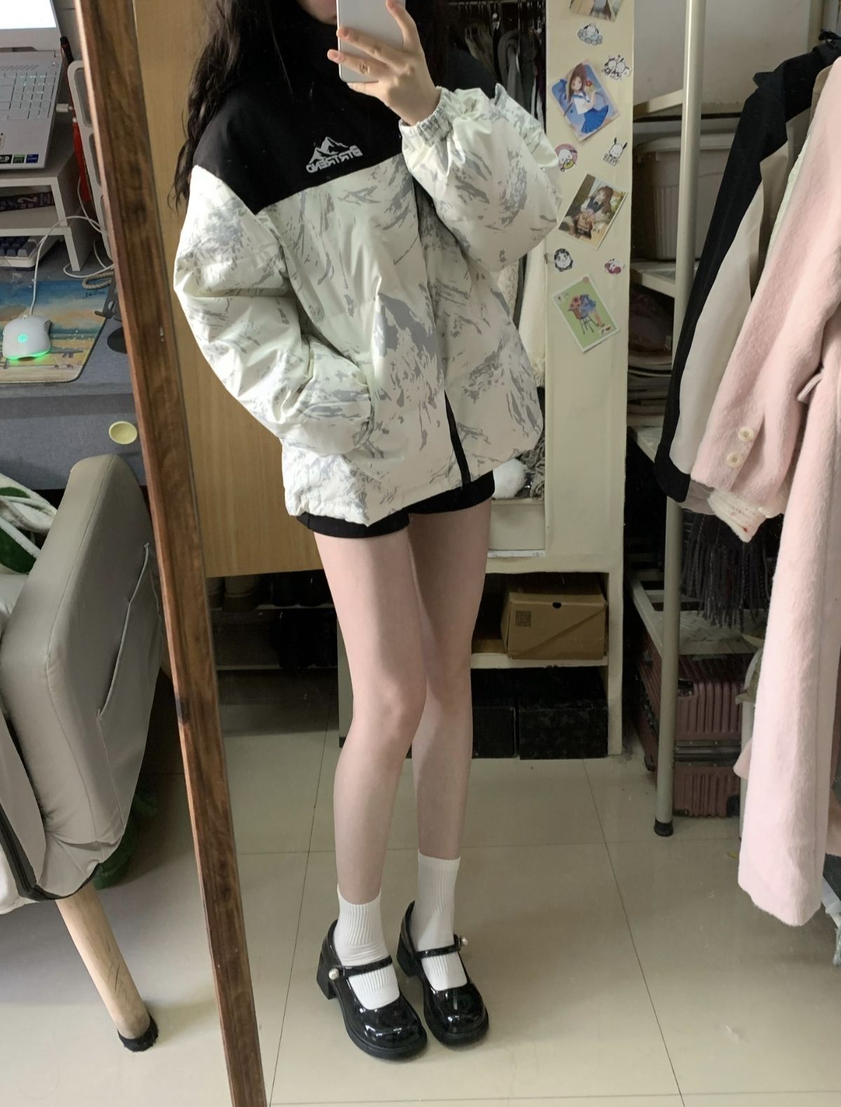 敲暖和的羽绒服~我穿上一会儿就觉得很暖和了 这种拼色蛮好看的,我比较喜欢浅色系,款式也是白搭不出错的,很适合大学生早八一套就走,嘎嘎方便