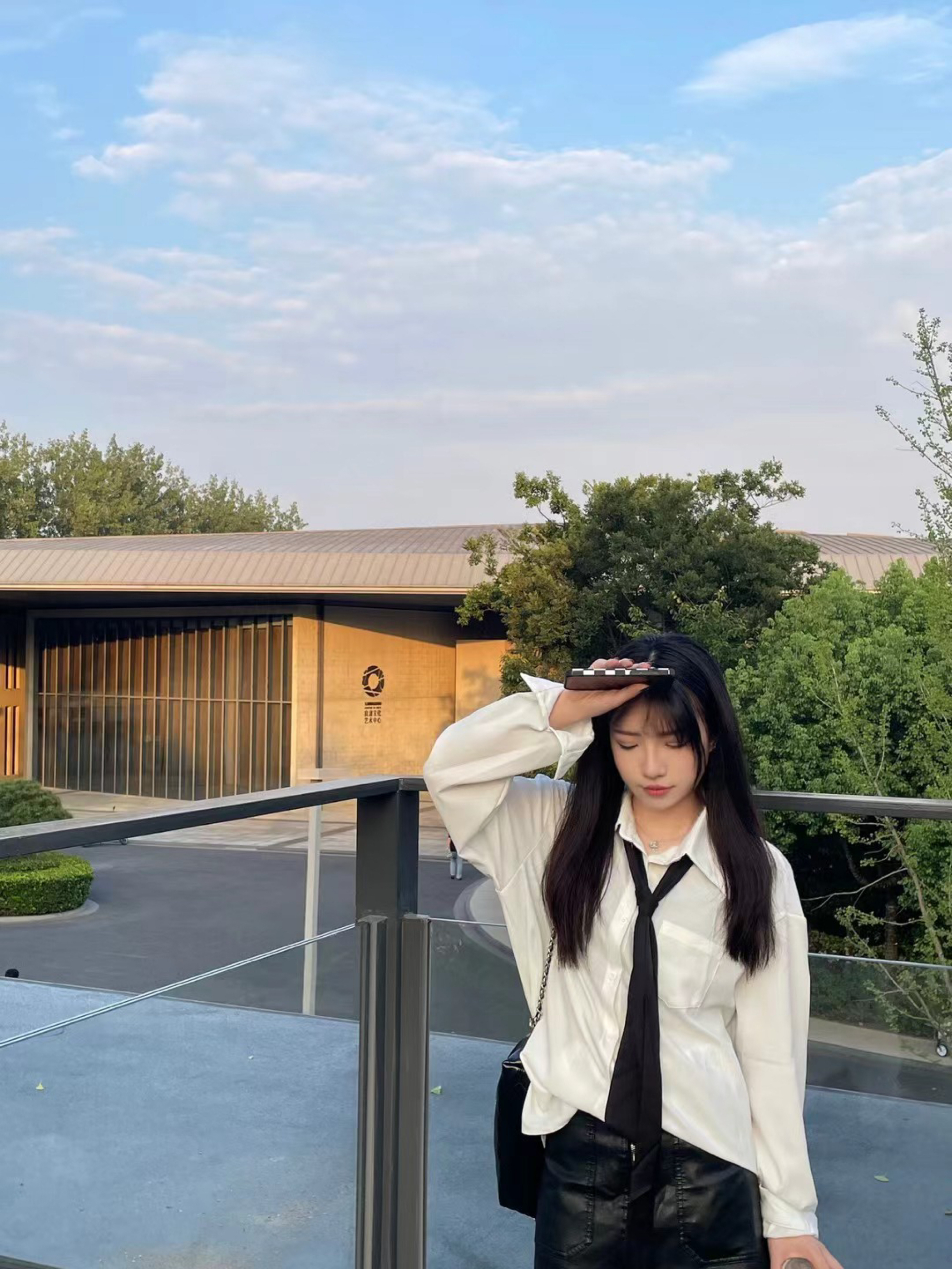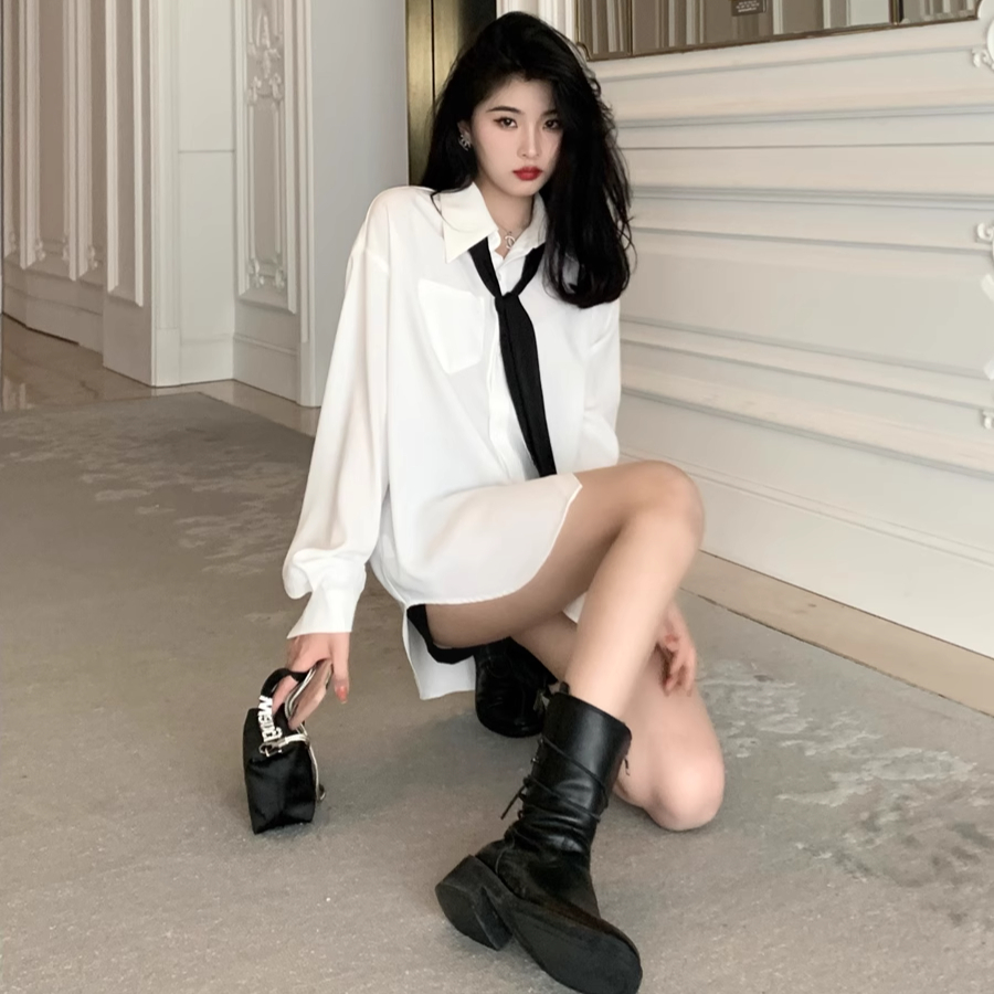 白衬衫配黑领带, 搭配皮裙, 轻松打造出又飒又雅的穿搭风格, 时髦感拉满。