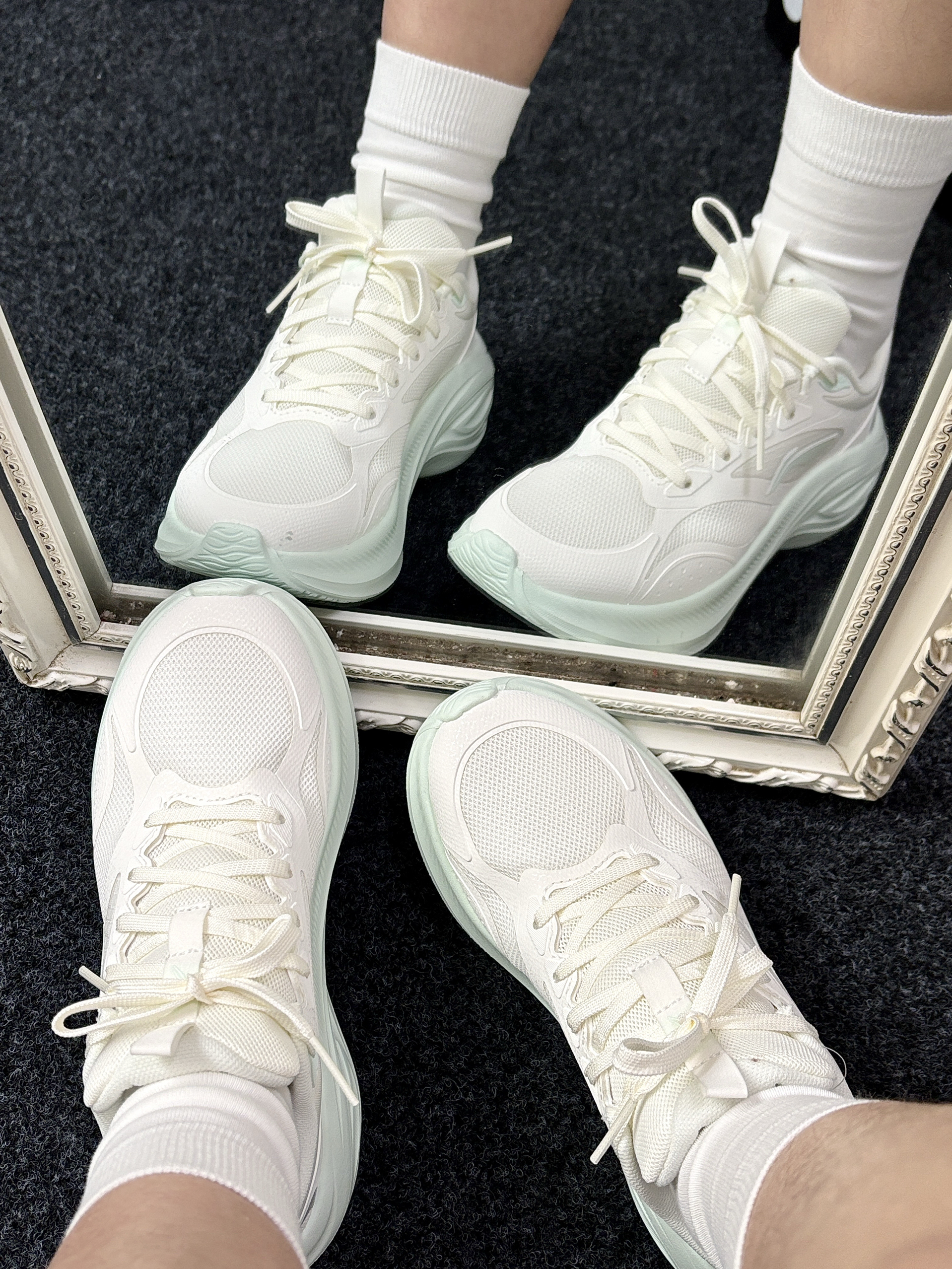 不得不说这双李宁的鞋子泰禾我心意啦 这抹青柠奶绿的配色心情都变美丽了 让人看起来很舒服的感觉😌 简简单单的狠适合日常运动和出行去穿它 鞋子中底采用了的云科技👌 是偏柔软轻便的回弹性也不错 还自带增高大概在5厘米左右 穿上软软的回弹力也不错 鞋面有网眼穿起来就舒适透气~ 日常用来搭衣服也好康鞋子正码正拍就可以 我平时都穿 36 刚刚好