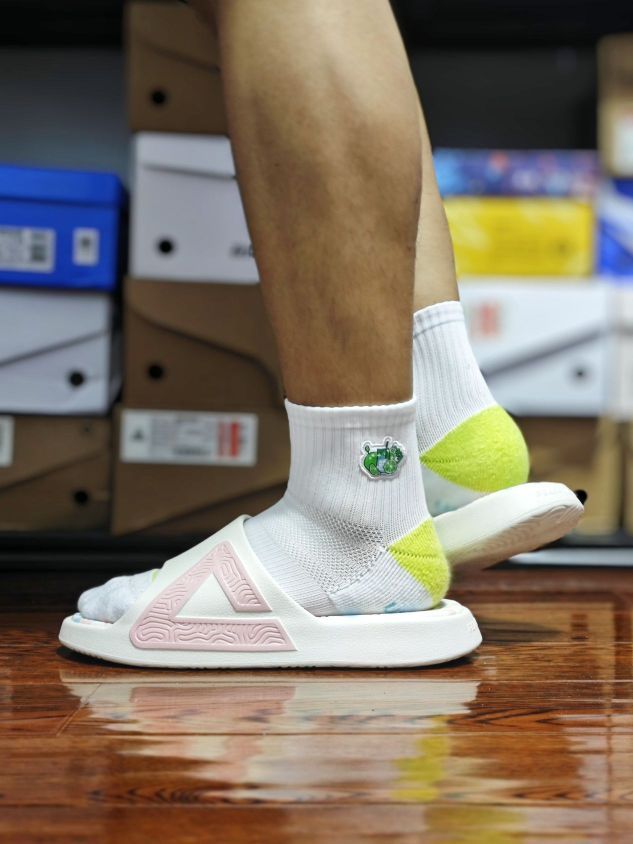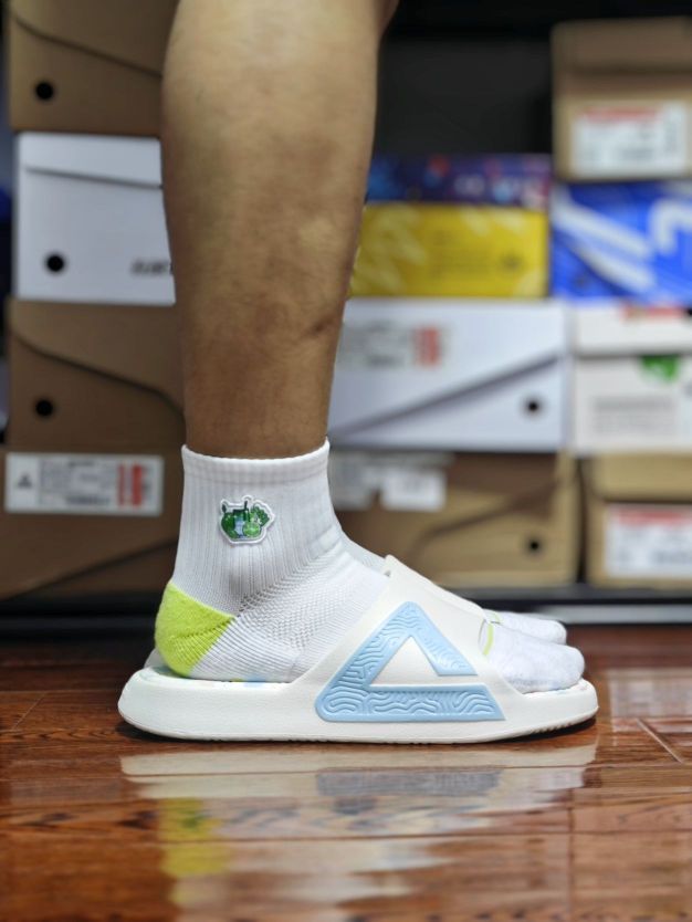 双十一入手什么运动拖鞋? 当然是匹克态极拖鞋呀,不妨看看我上脚的这双双色冰淇淋 冰淇淋主体配色,还是红蓝鸳鸯组合,颜值也很好看 拖鞋最主要还是舒服,对吧,匹克家这个自适应态极科技,脚感软弹,久穿不累, 唯一需有个要注意的点,我觉得尺码建议选大一码会更好些