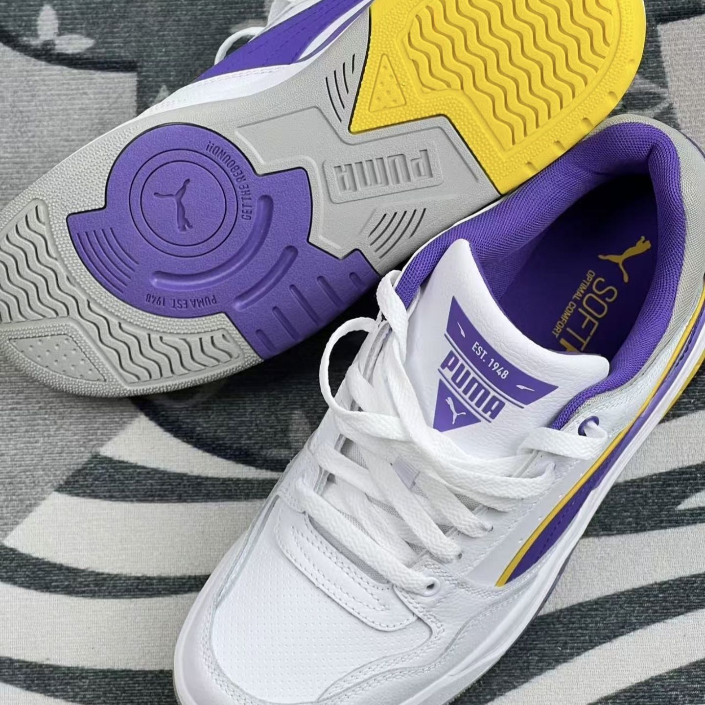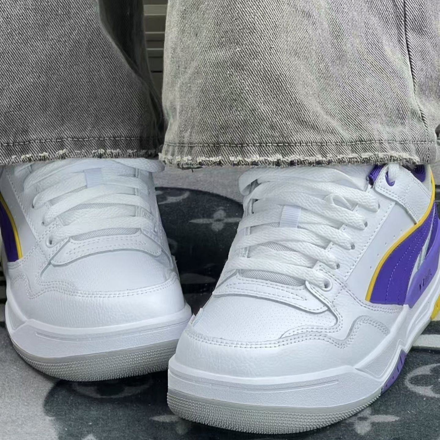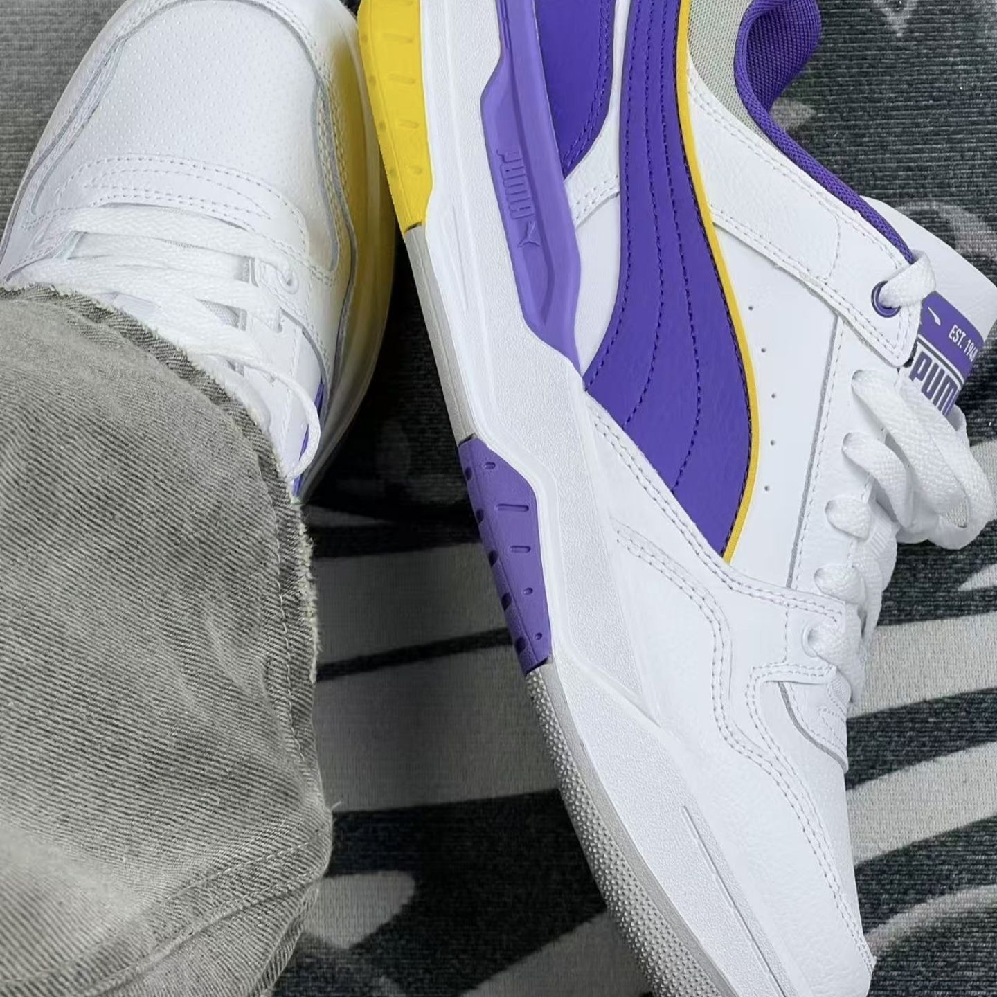 之前买鞋要么丑要么磨脚,直到入了这双彪马——白紫撞色+鞋侧大线条,直接戳中我对“亮眼不浮夸”的执念!😉😉 刚上脚软乎乎的鞋垫是真舒服,皮质鞋面摸着质感挺足,紫+黄的点缀刚好踩在“潮但不跳”的点上😘😘尺码正常且十分百搭,配浅灰牛仔裤是休闲挂,搭黑色束脚裤直接变运动风,甚至配简单的白T+短裤都不违和👏👏👏日常上学、周末约饭、短途出游都能穿。