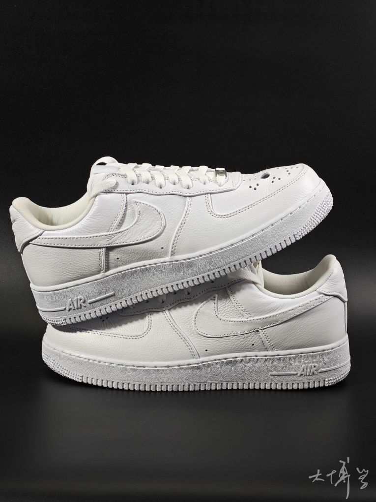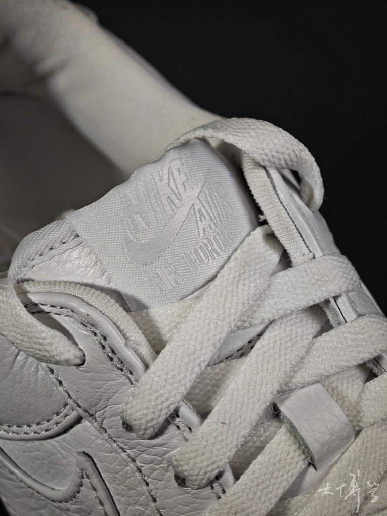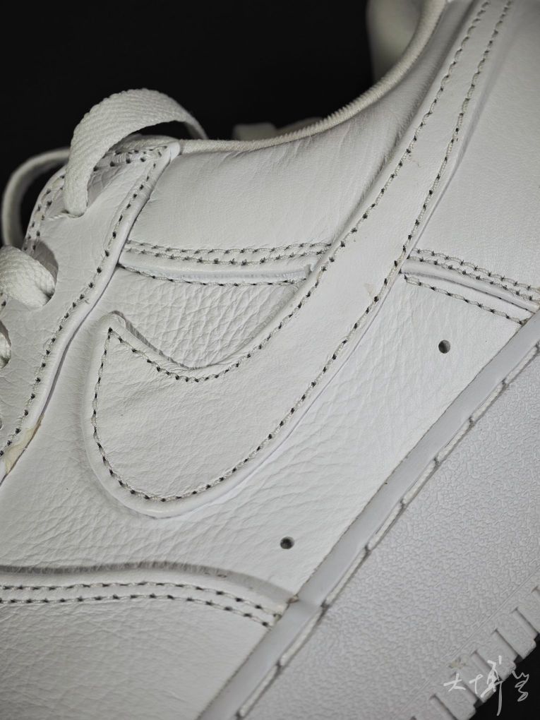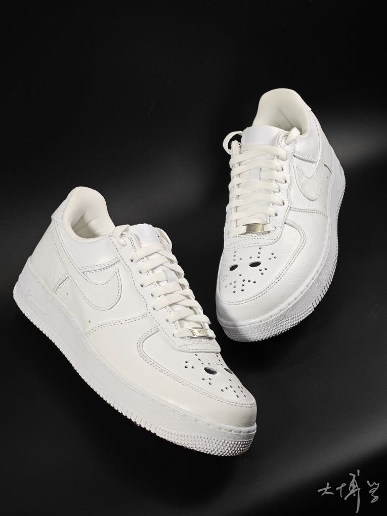 一双去年的万圣节款AF 1 low 鞋头以恐怖电影《十三号星期五》中的反派杰森的经典曲棍球面具为元素 用透气孔排列成面具造型 其实看起来并不是那么惊悚 全白荔枝纹皮革鞋面 我觉得日常穿,其实也不觉得突兀
