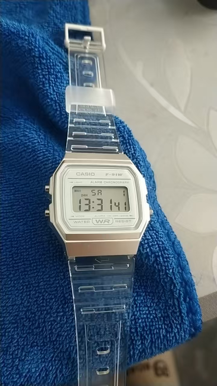 本篇笔记关联了Casio/卡西欧 YOUTH 透明果冻树脂表带小方块运动防水石英男女同款手表 果冻白 F-91WS-7等商品,为用户提供真实的使用体验和购买参考。