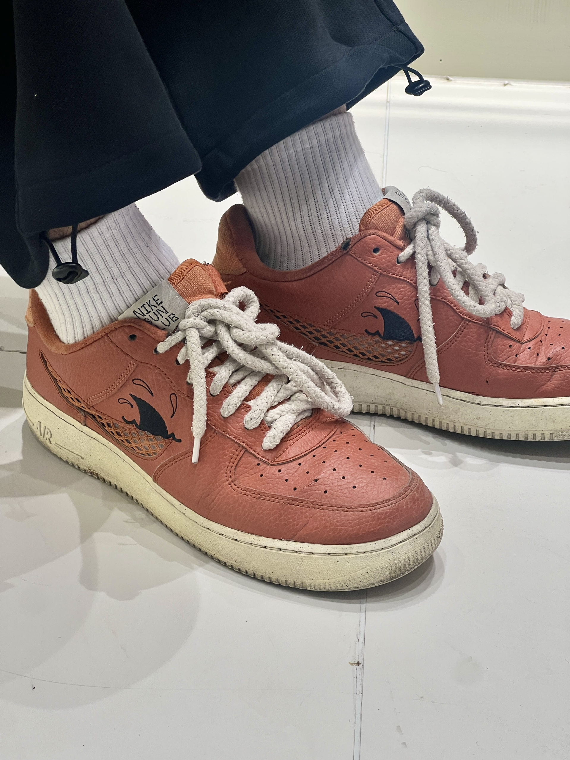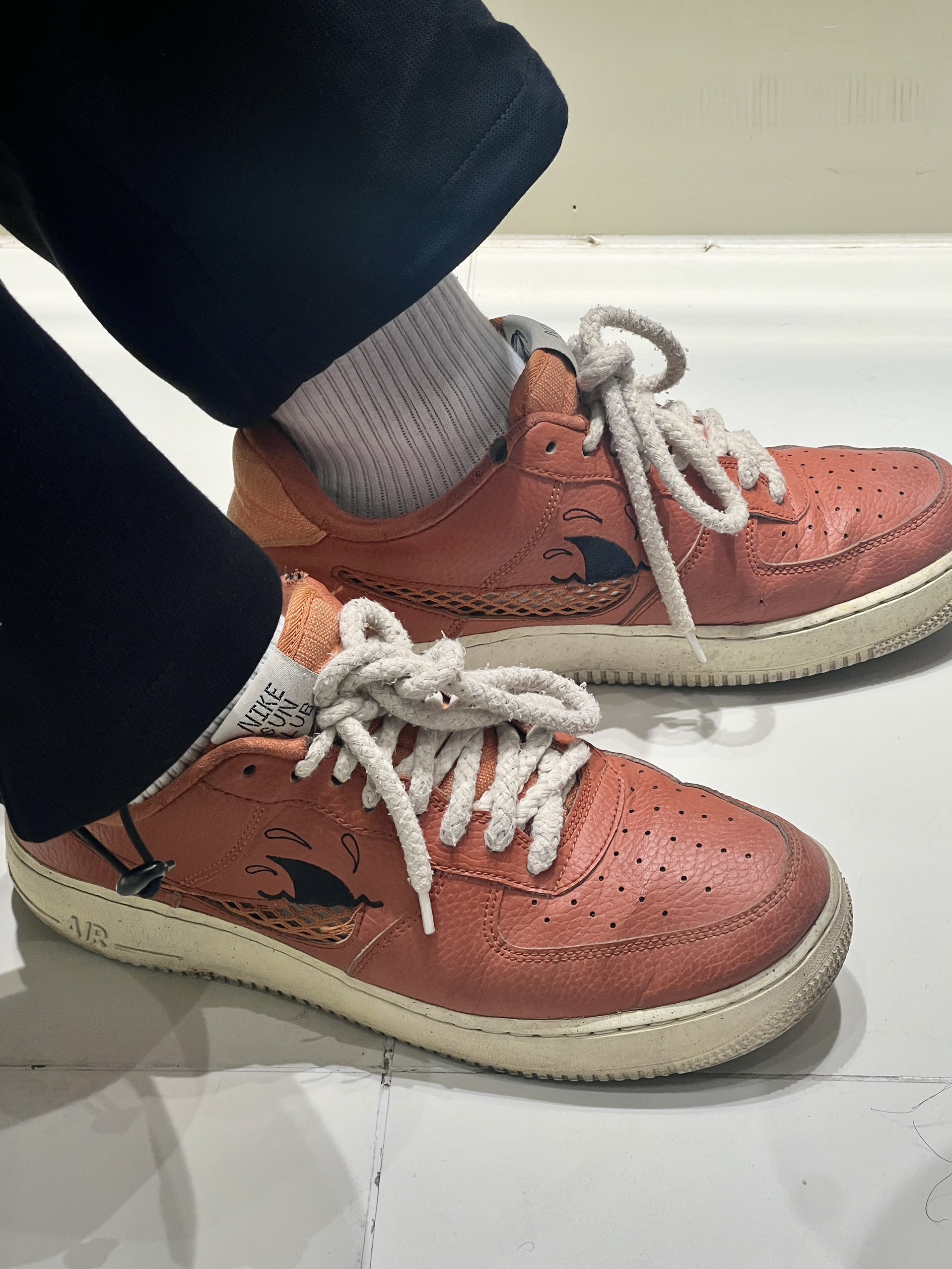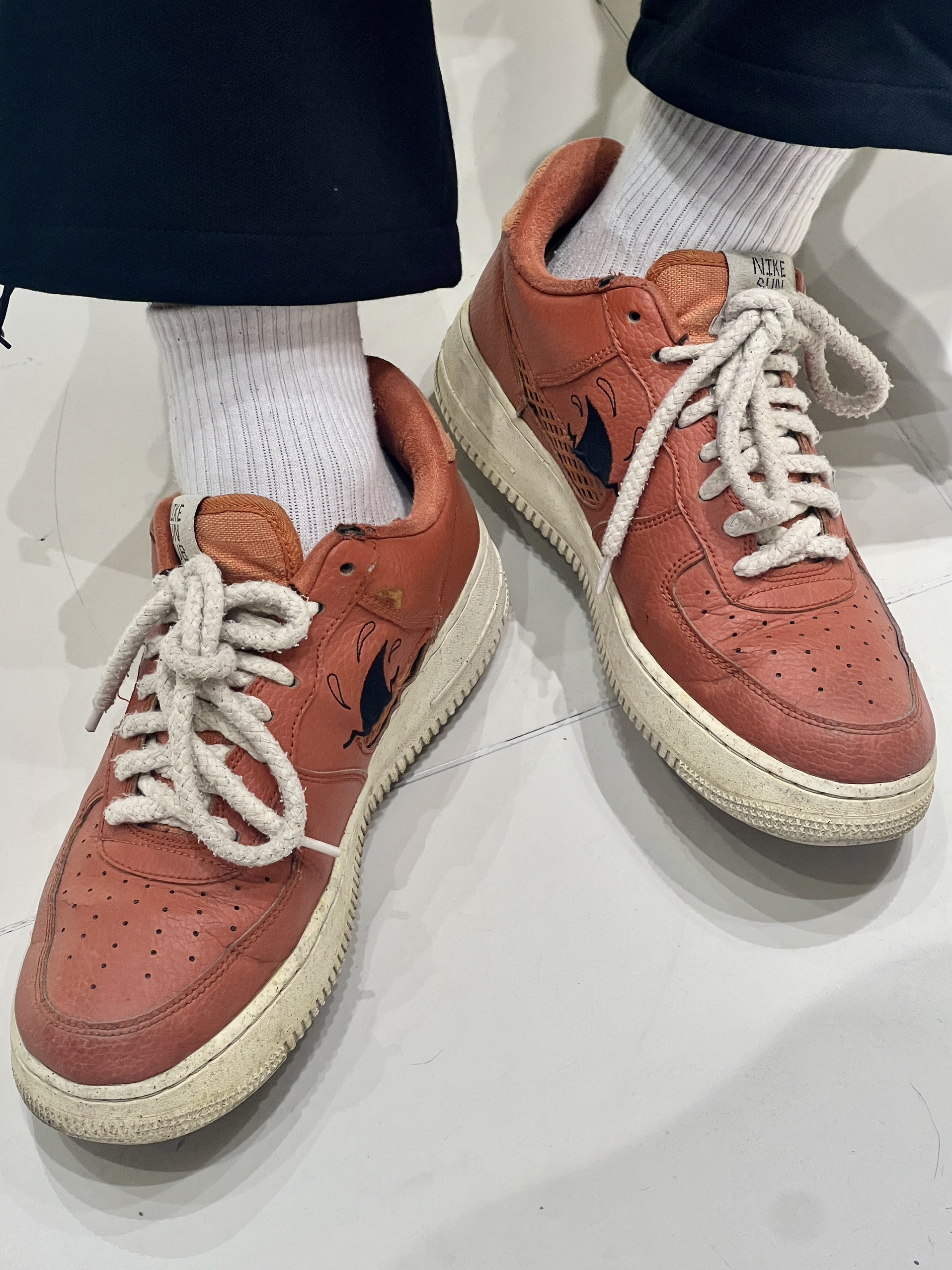 这双鞋是Nike Air Force 1系列的一款,经典的低帮设计和耐磨的橡胶外底,图是穿了三年的磨损情况,搭配自己DIY的白色鞋带🤩跟秋天🍃绝配!