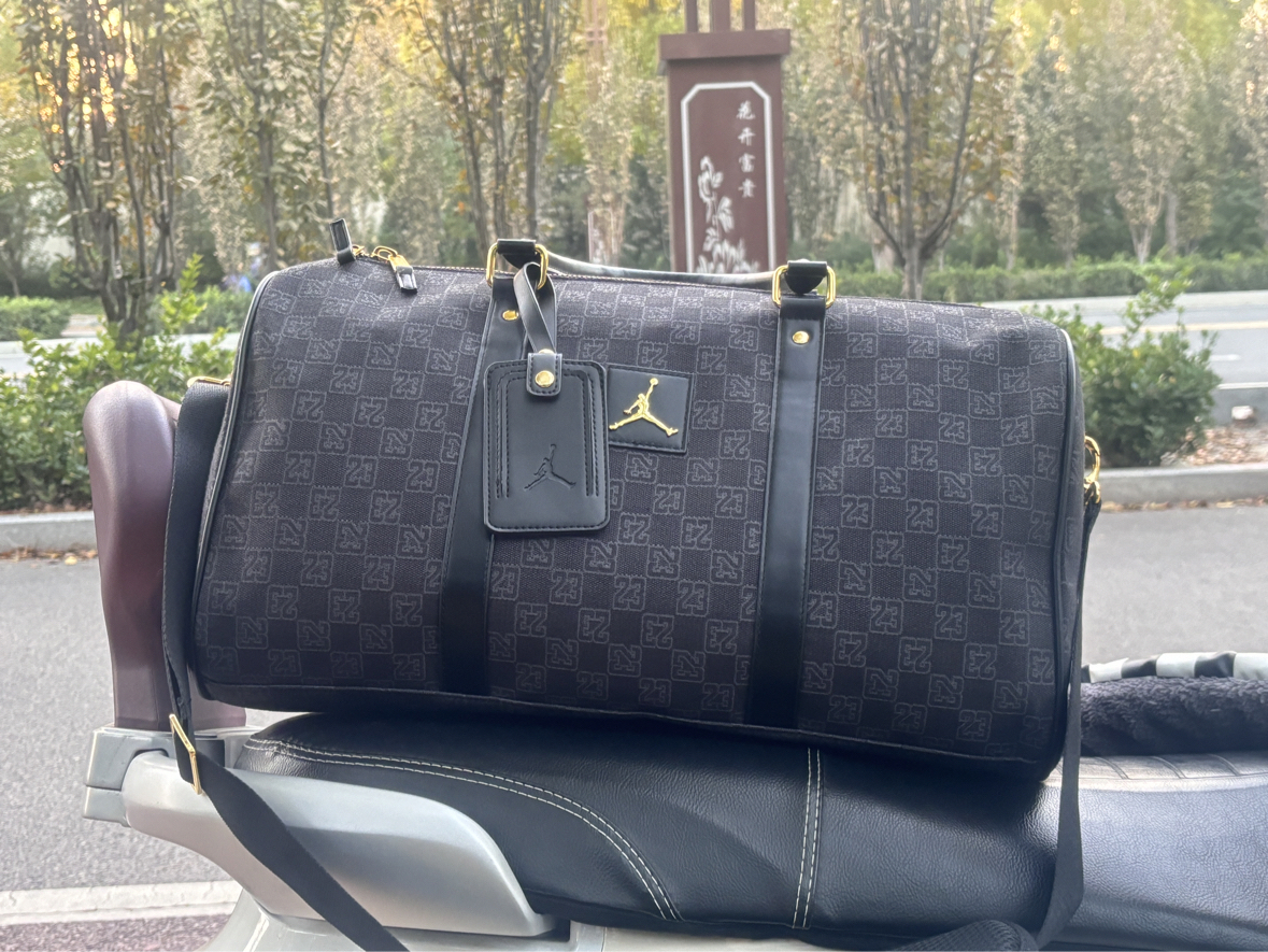谁懂啊!背这只包出街,今天被好几个人问我啦,感觉直接把乔丹的传奇气场背在身上! 满印“23”老花铺满包身,金色飞人Logo点睛,皮质细节+金属配件质感拉满,篮球迷看到直接DNA动了! 既是能装下全套运动装备的硬核旅行包,也是炸街吸睛的潮流单品,提上它去球场、健身、出街,你就是全场风格天花板✨ 别问是不是你的菜,问就是篮球潮人的本命包,错过这只,后悔一整个赛季!
