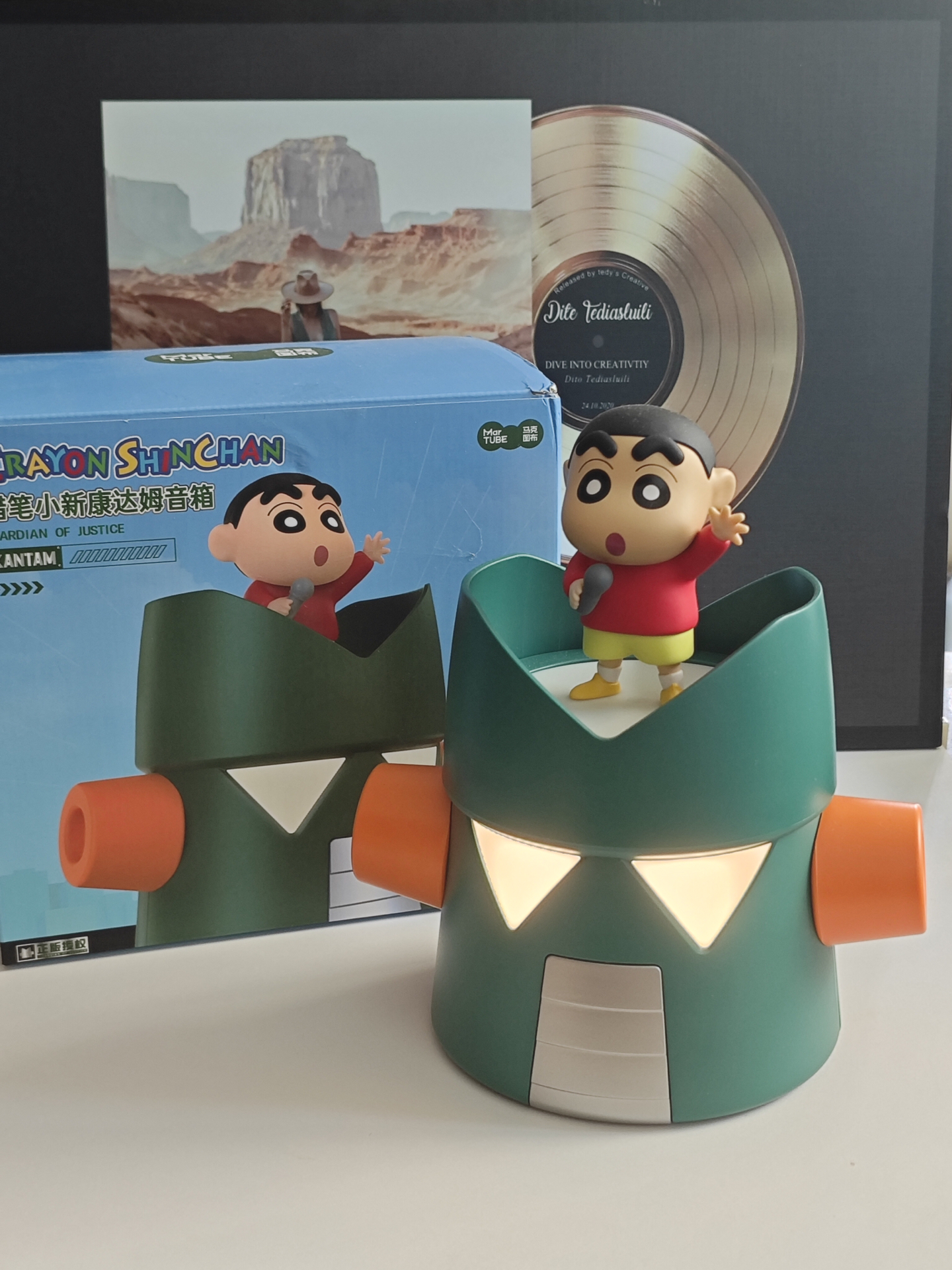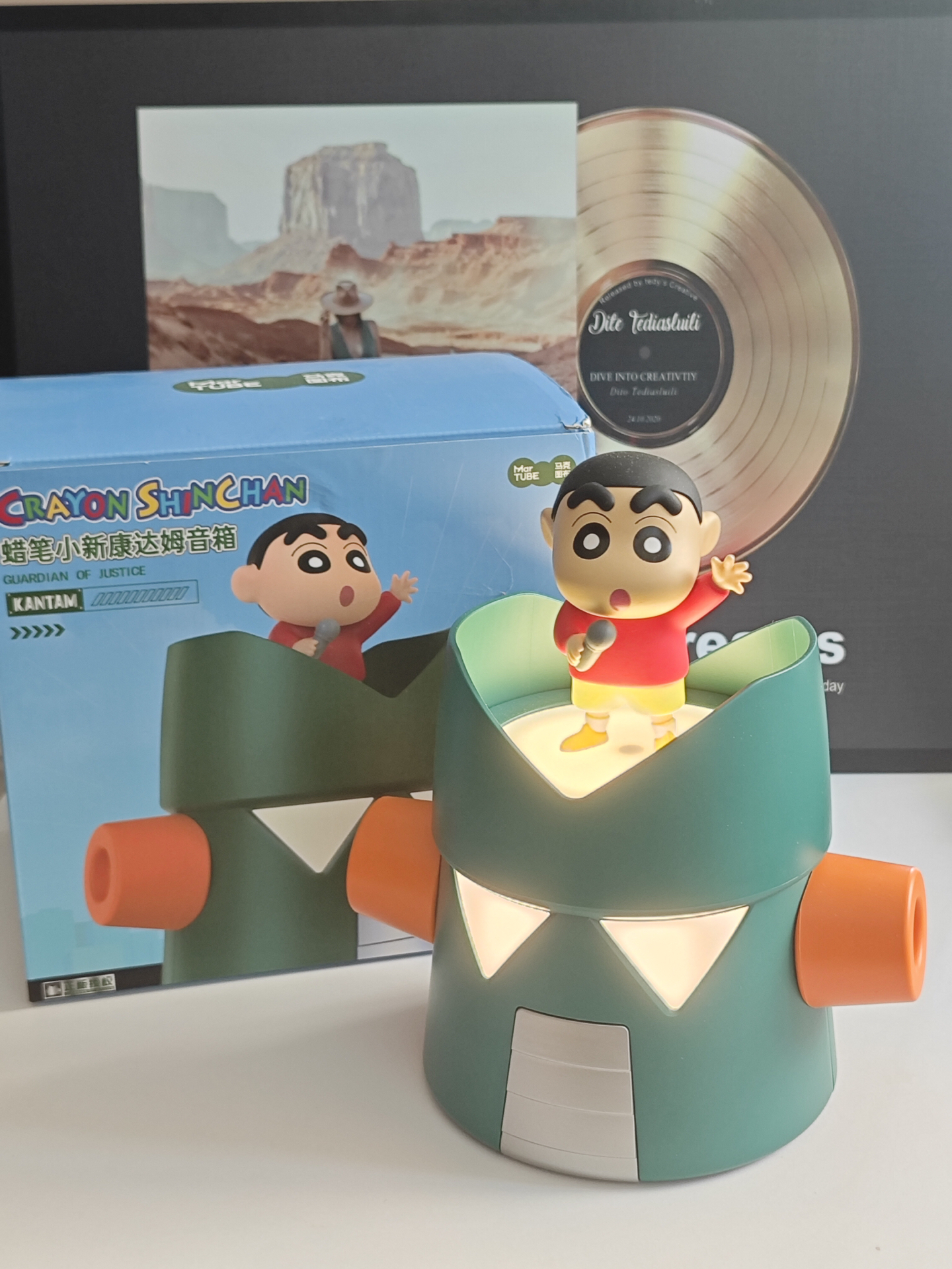 谁能拒绝蜡笔小新!我入了这款联名音箱,康达姆造型好酷,灯光还有好几种模式切换~小新公仔能拆卸,我经常拿着它摆各种pose拍照📸 音质也很在线,续航也扛打!唯一小遗憾是它没防水防尘功能,得小心爱护着用~但架不住它好玩又好看,放在桌面当潮玩摆件也超有氛围感,朋友来我家都要薅走链接那种!