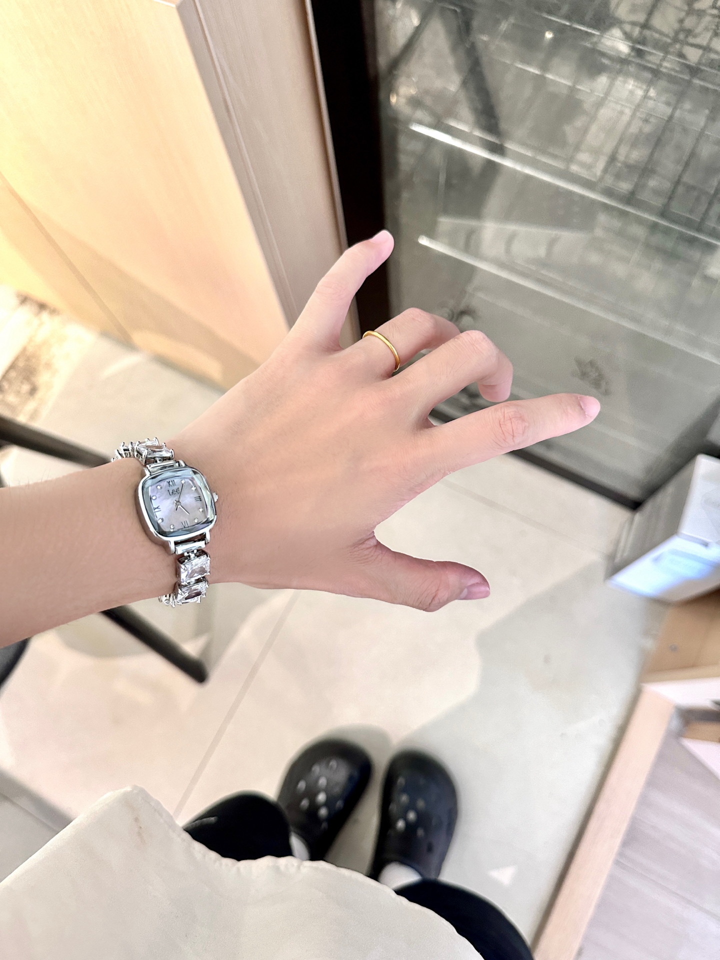分享一块最近日常搭配率很高的小方表 贝母表盘+镶钻表圈在灯光下一闪一闪 显贵又温柔~ 贝母会随着角度不同而变换色彩 小表盘也泰显精致了! 表带是方块造型得钻链~尊嘟好闪~ 感觉日常通勤每个场合都hin适配 七夕送礼是个不错的选择呢~ 图源网络,侵删!