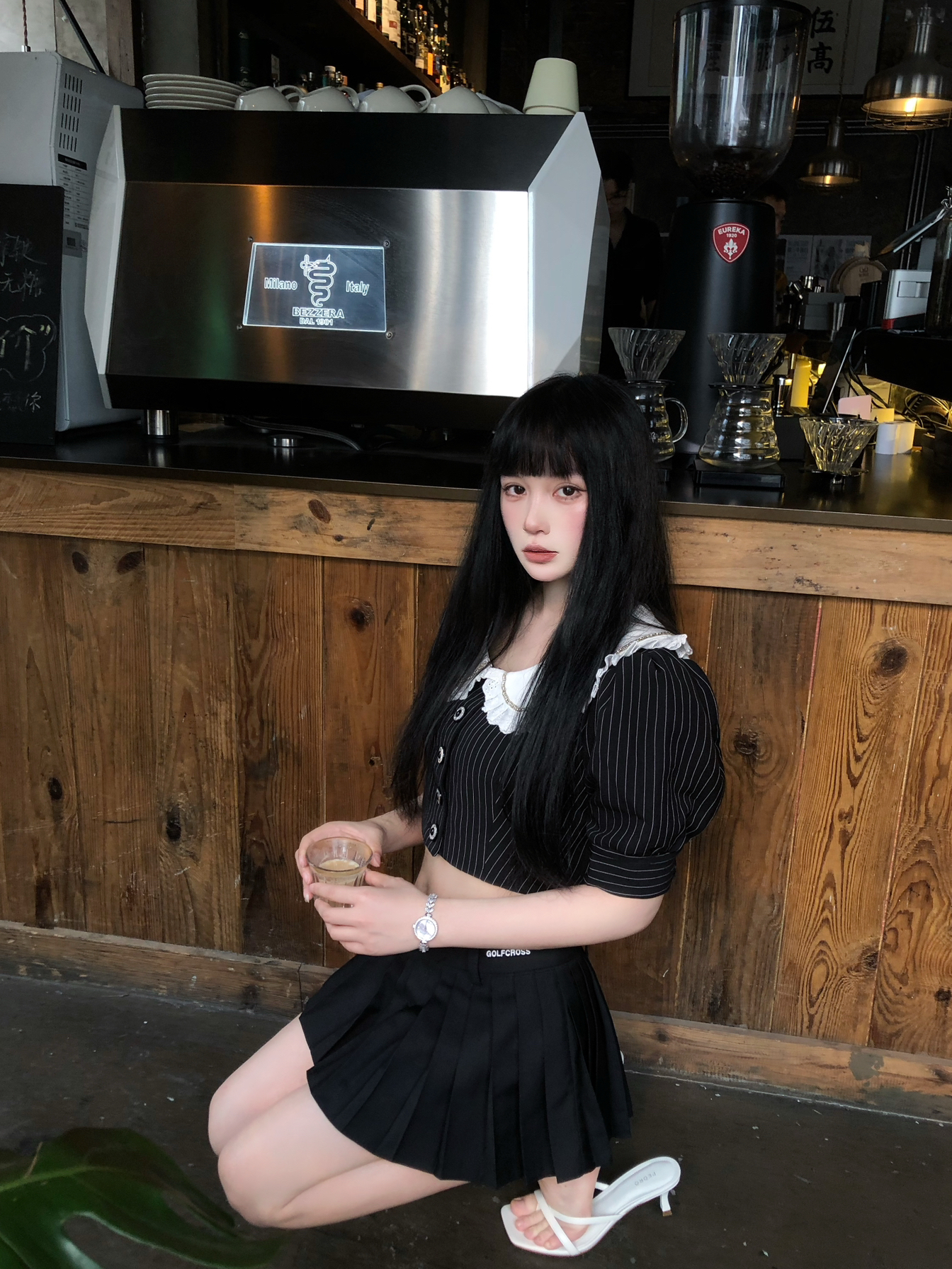 今日下午茶穿搭甜酷感满满😌 条纹短上衣➕黑色百褶裙时髦感up 戴上蒂玮娜的手链表很加分⌚️ 精致闪耀的满钻表提升了精致度 日常佩戴着也很百搭~