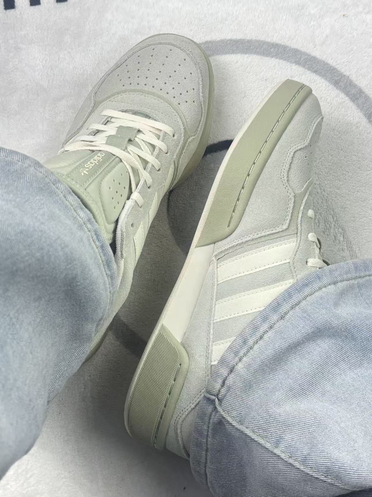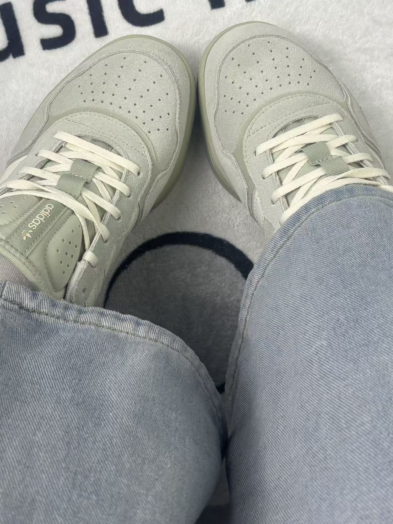 这双Adidas的鞋,颜色是那种很淡的灰绿色,看起来挺清爽,但穿久了会发现容易沾灰,尤其是后跟和鞋带区域。鞋面是麂皮材质,摸起来有质感,但不耐脏,一蹭就留印子。脚感中规中矩,前掌偏硬,走久了脚底有点累,适合短时间穿着,长时间走路不太舒服。鞋垫偏薄,支撑一般,脚背高的可能会觉得有点顶。鞋型偏窄,我平时穿38码,这双略紧,需要多穿几次才能适应。不过它的设计确实挺简洁,搭配日常穿搭没问题,尤其适合喜欢低...