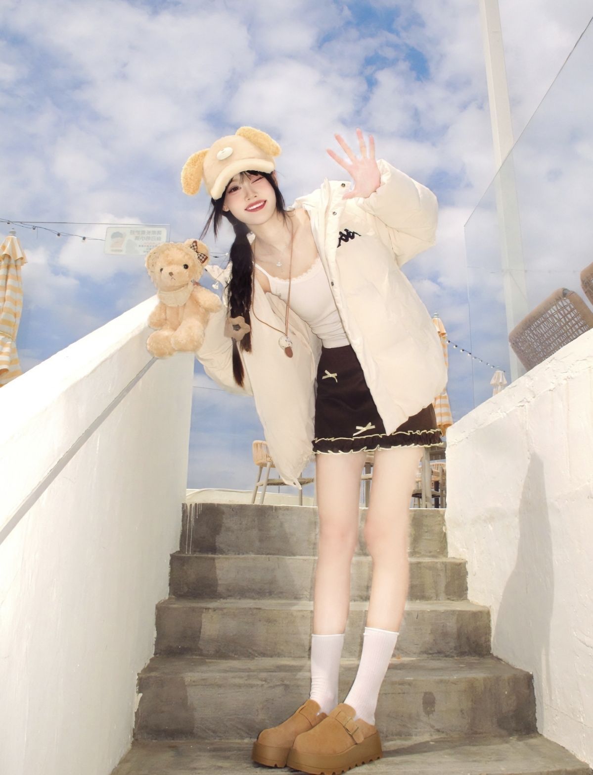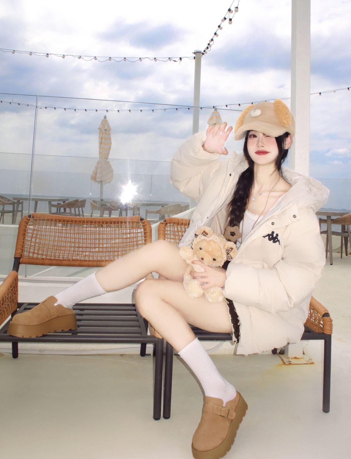 不管旅行还是宅家也是一如既往当着甜妹的一天~ 寒风来袭 搭着奶fufu滴好有氛围 白色打底叠穿上 #Kappa 白色羽绒外套🧥 不单单只是保暖穿着还百搭好看 参考我170/96选择m就合适 搭配棕色毛呢半裙配上ZHR则则家滴加绒勃肯拖鞋👟 考虑到早八正符合我这种懒人选择 日常宅家出街慵懒感轻松get到啦!