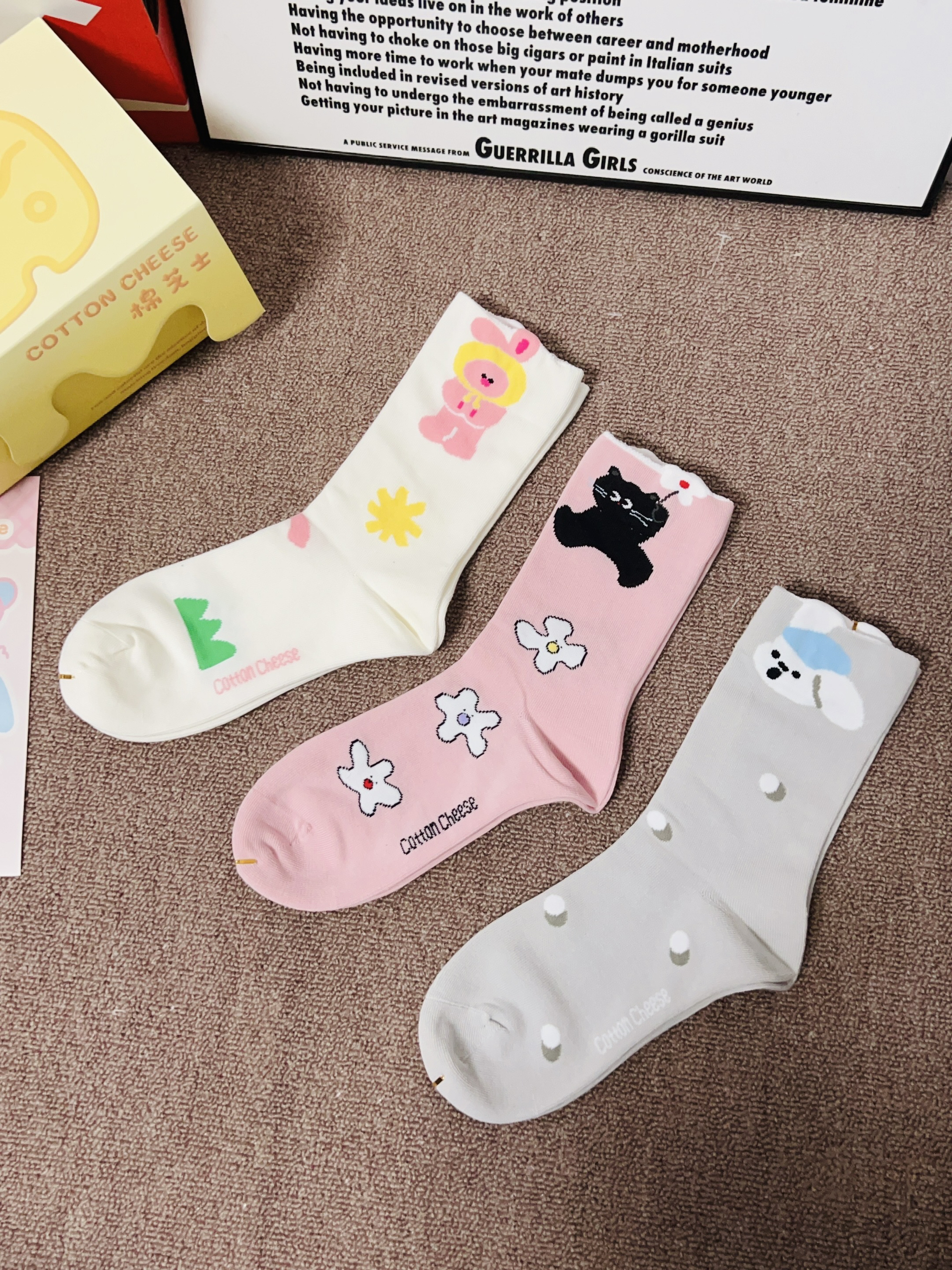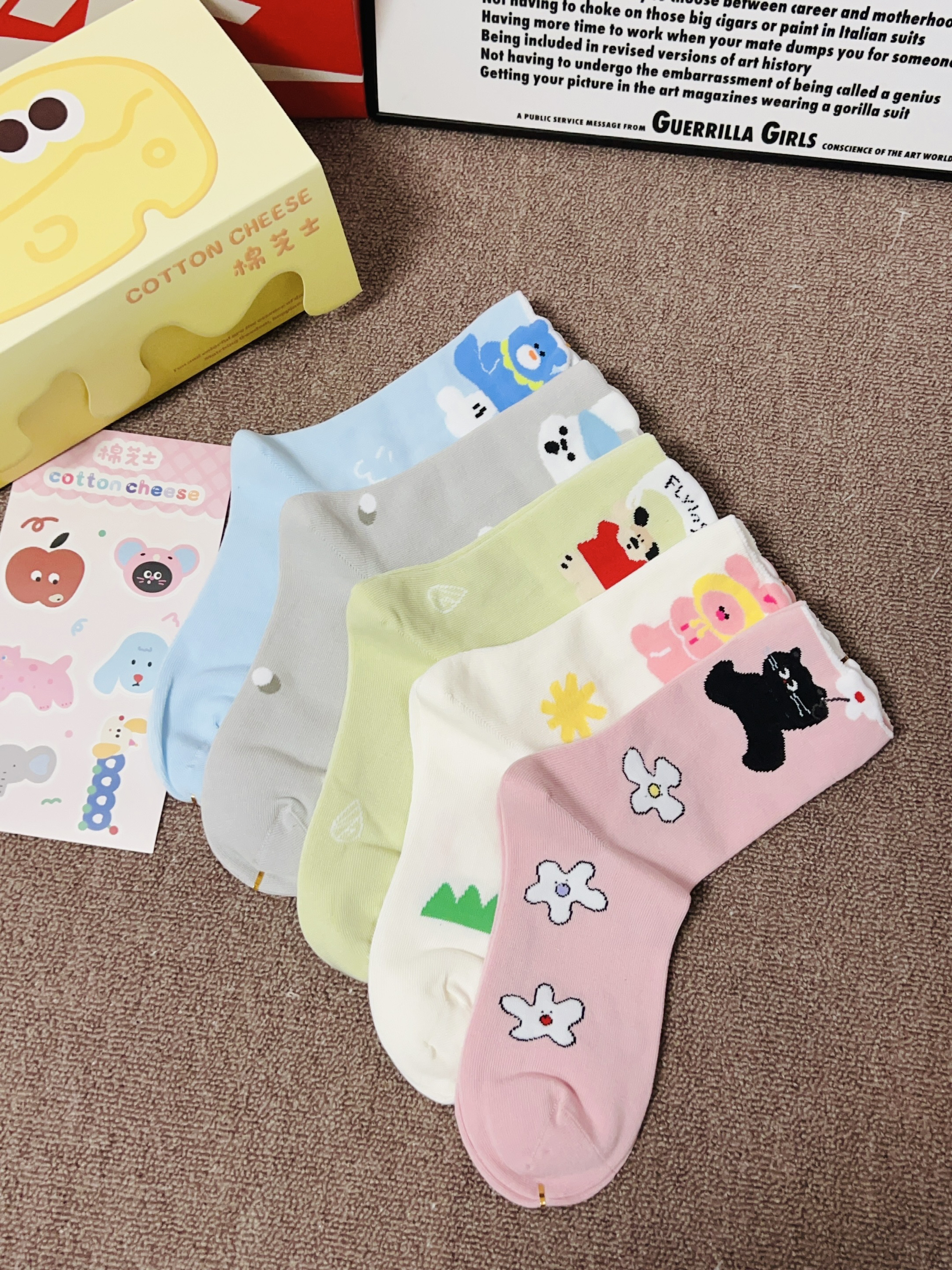 十一月啦下周就是立冬啦 刚好是一年一度的双11 我又给自己新添置了袜子 棉芝士这款袜子配色蛮好看的 打开有五双可可爱爱的袜子 我摸着面料柔软舒适好厚实 上脚穿我感觉舒服又不会勒jio 细节做的可以 没有多余线头之类的 我觉得日常通勤百搭不挑鞋子